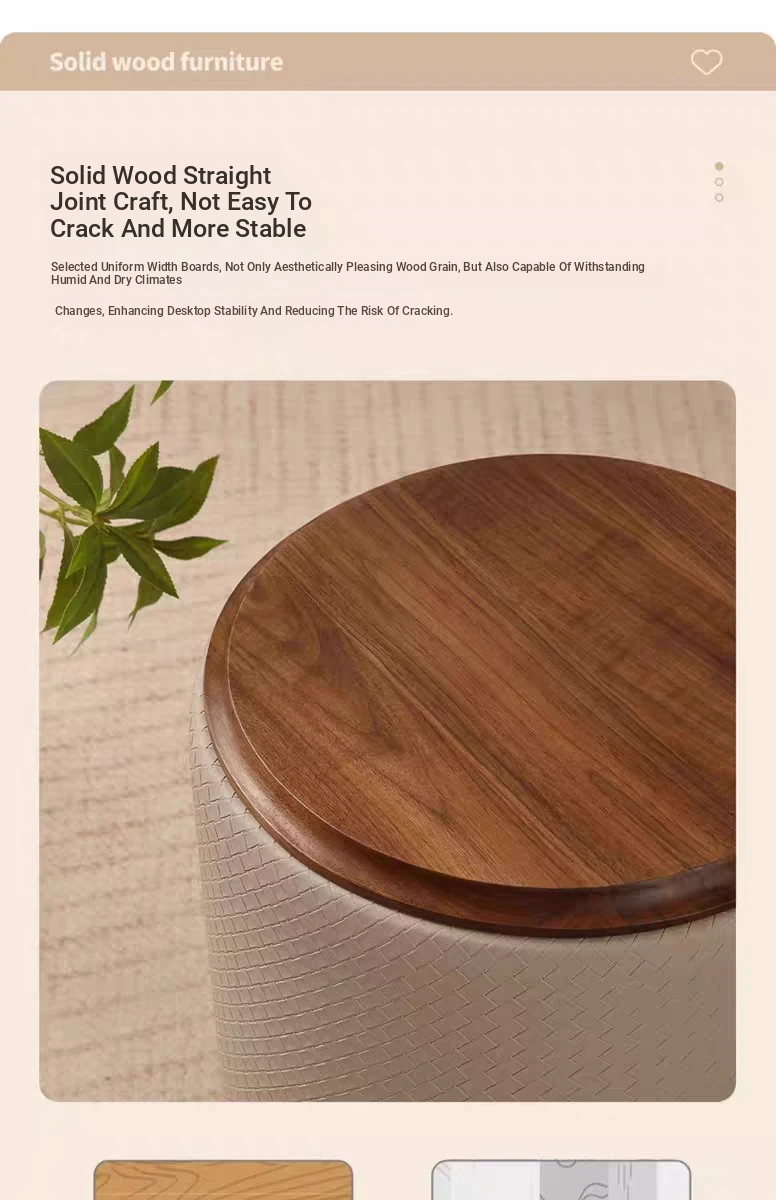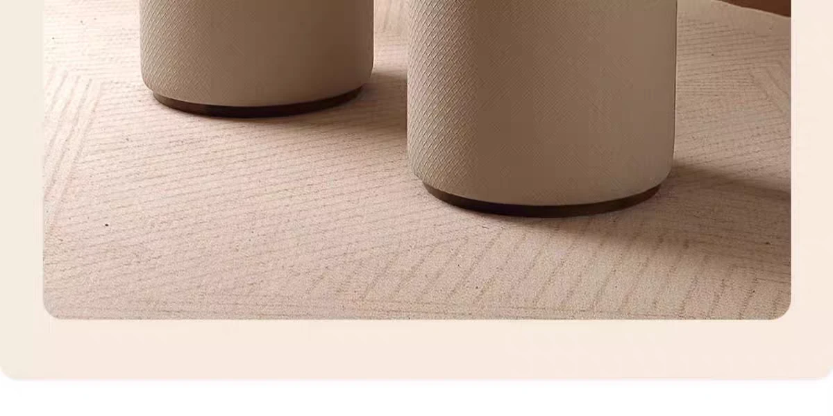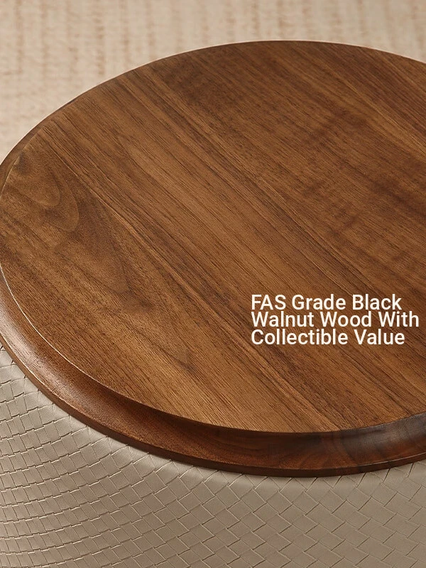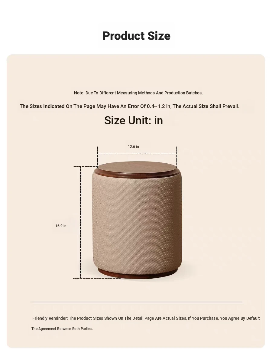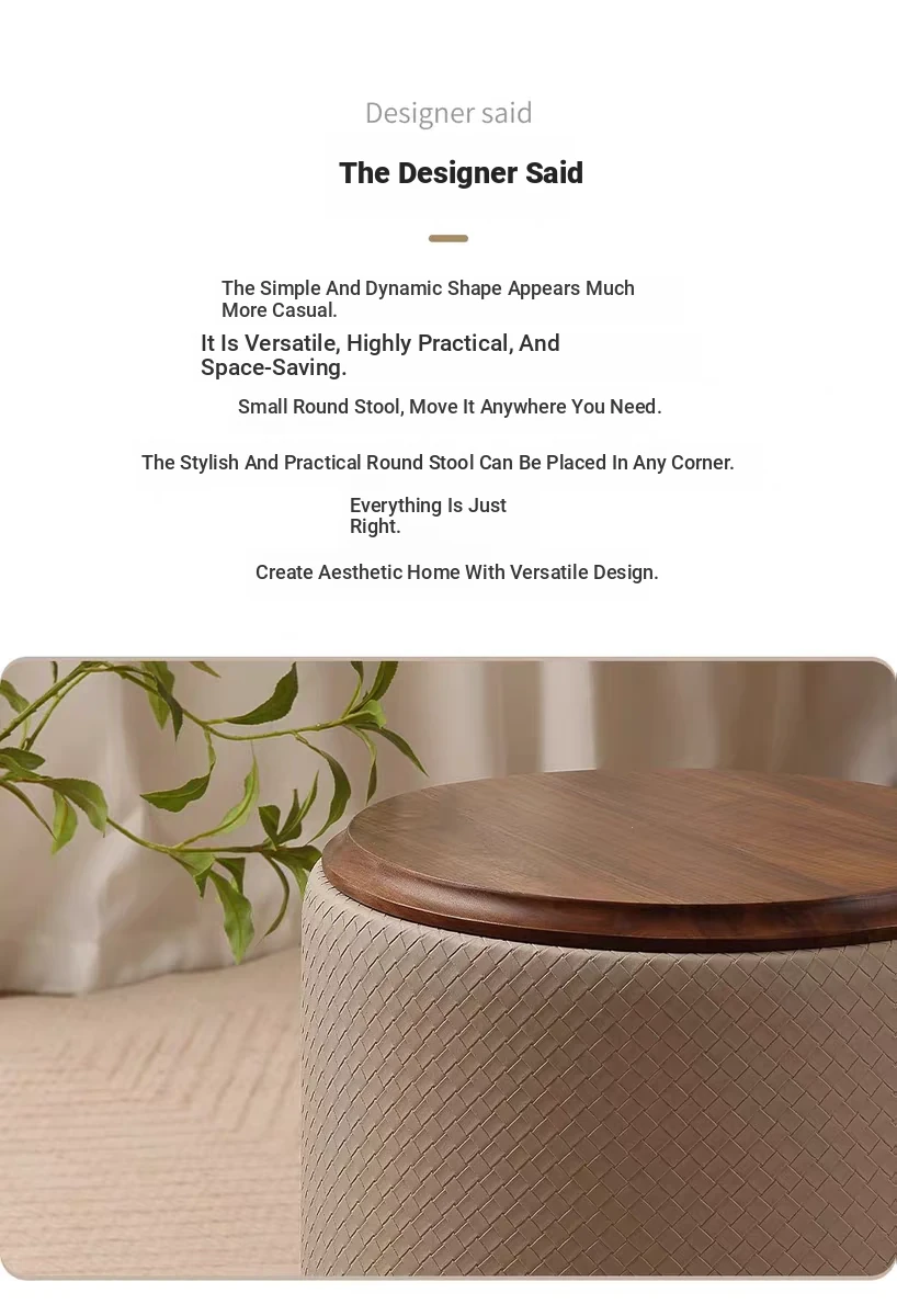North American Black Walnut Round Stool - Chic Leather Vanity Seat, Soft Cushion Footstool for Home Use, Perfect for Bedroom Makeup and Dressing.