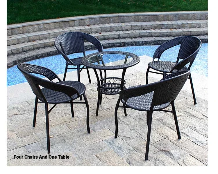 Outdoor Wicker Patio Chair Set - 5-Piece Iron Art Minimalist Lounge Furniture for Balcony - No Assembly Required - Comfortable Single Recliner for Your Garden or Courtyard
