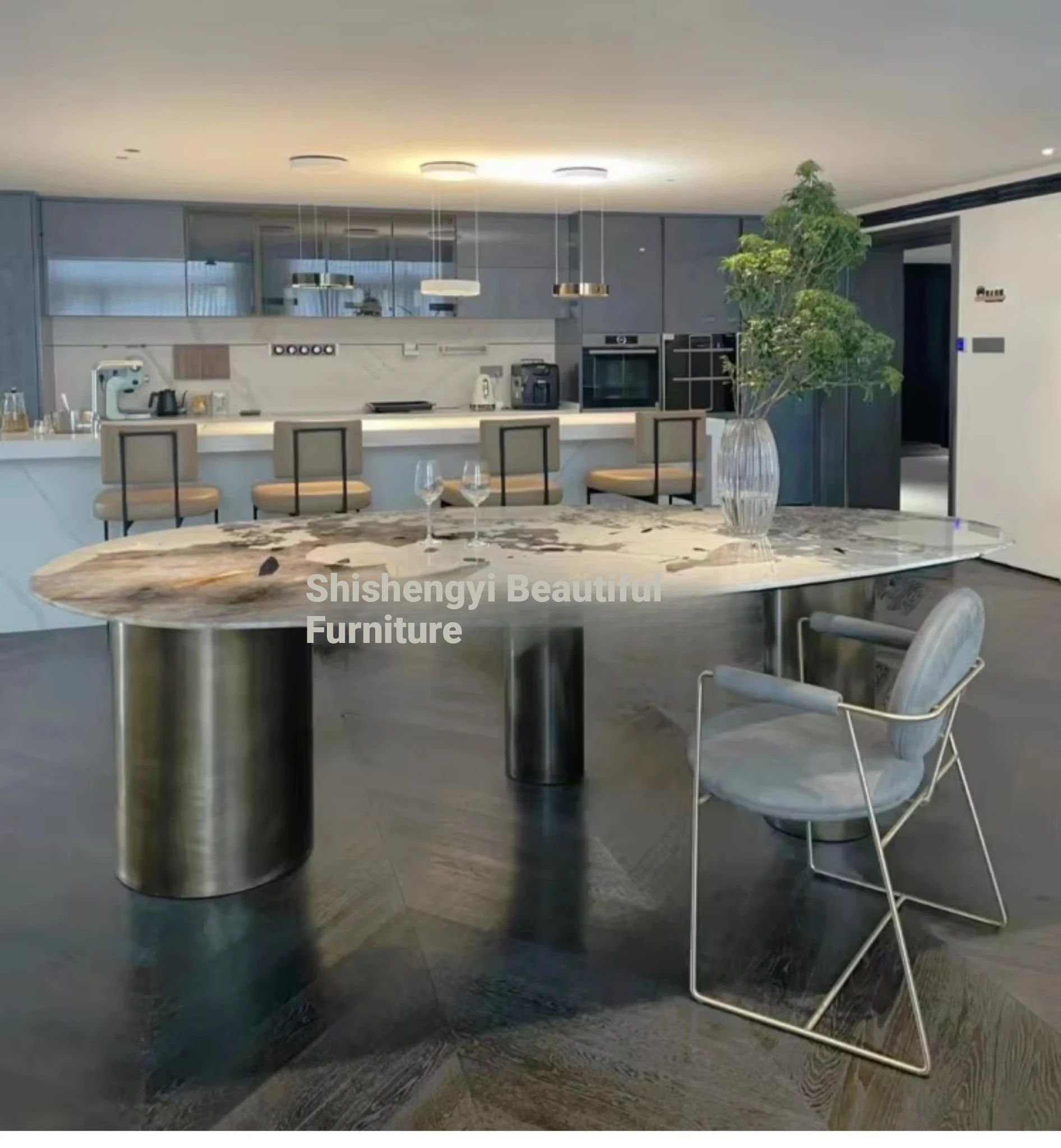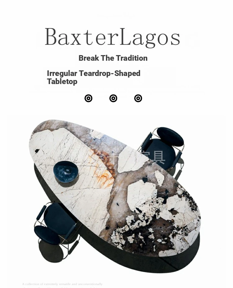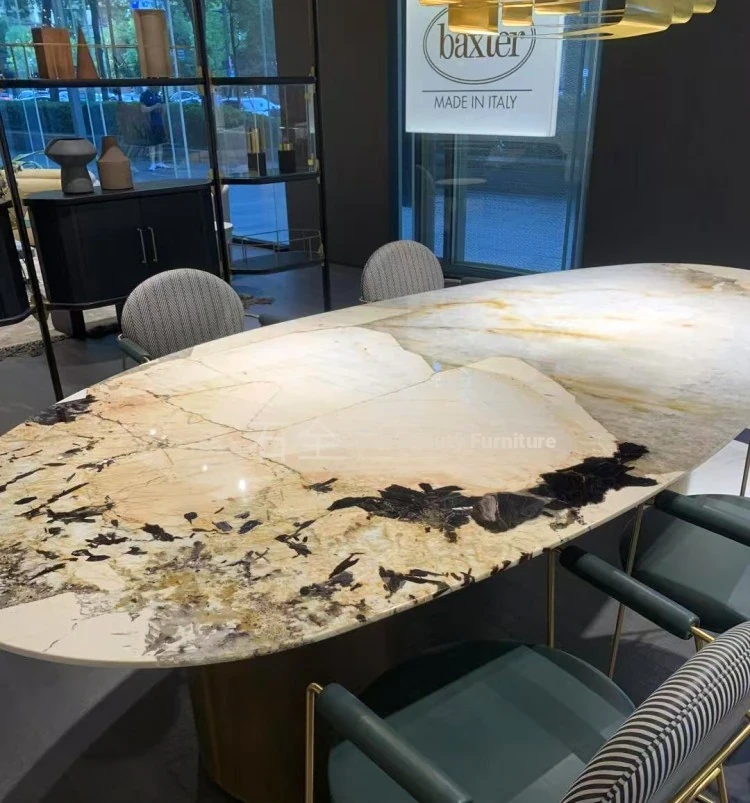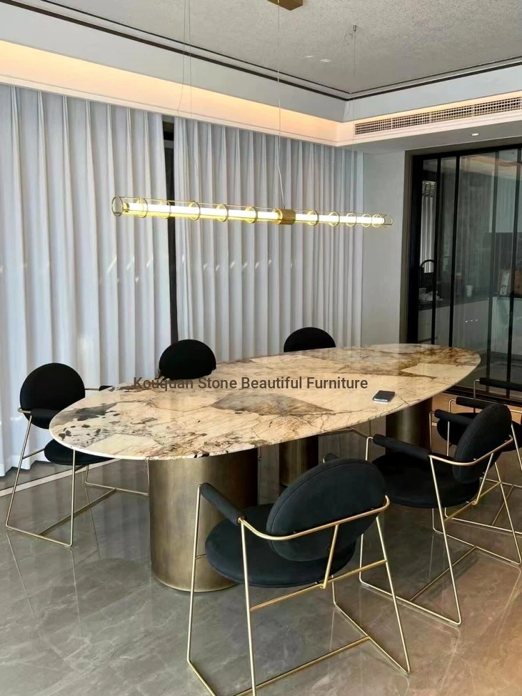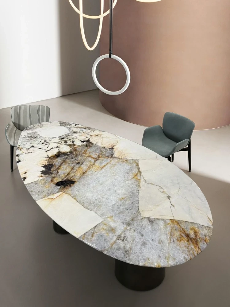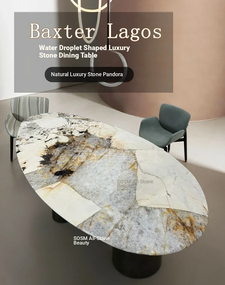 Pandora Elegant Oval Dining Table - Luxury Natural Marble Drop Shape Design for Upscale Villas, Perfect for Sophisticated Dining Experiences