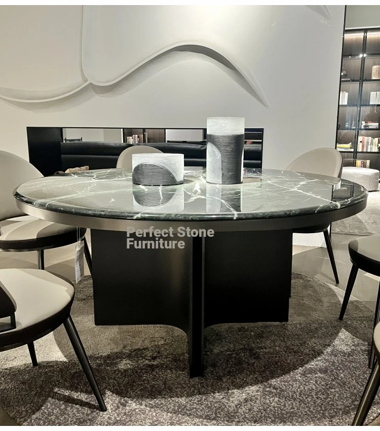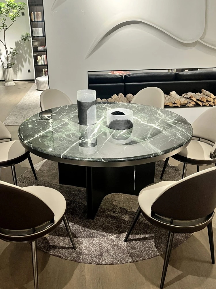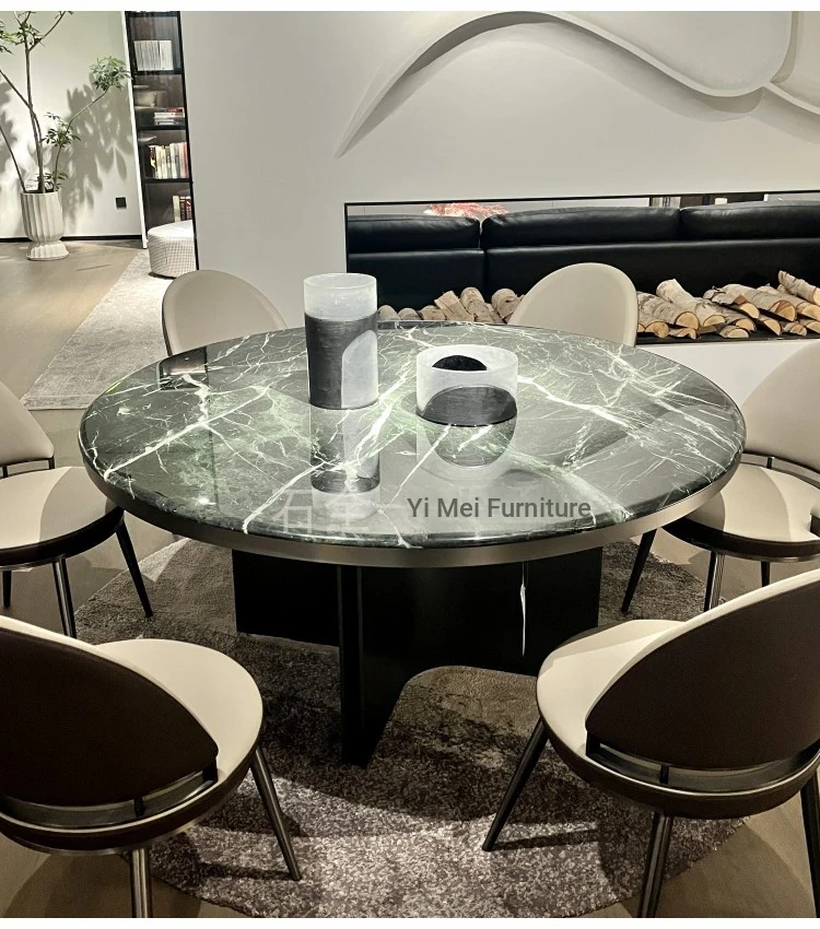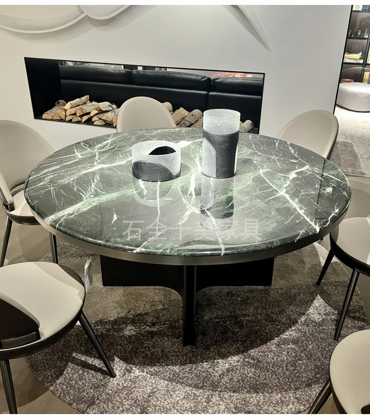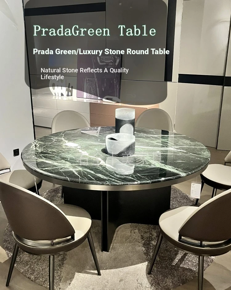 Prada Green Luxury Stone Round Dining Table - Italian Elegant Natural Marble, Spacious High-End Round Table for Villas and Home Use
