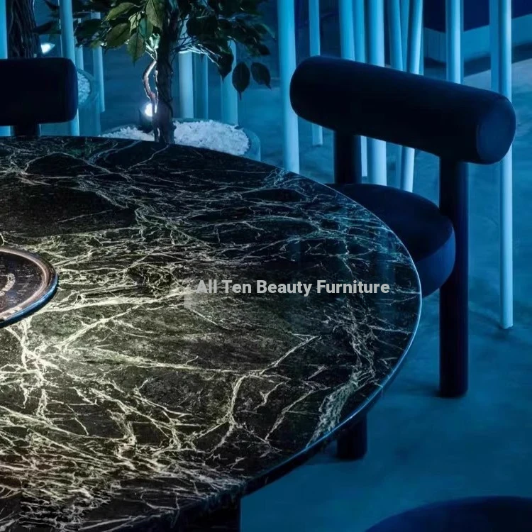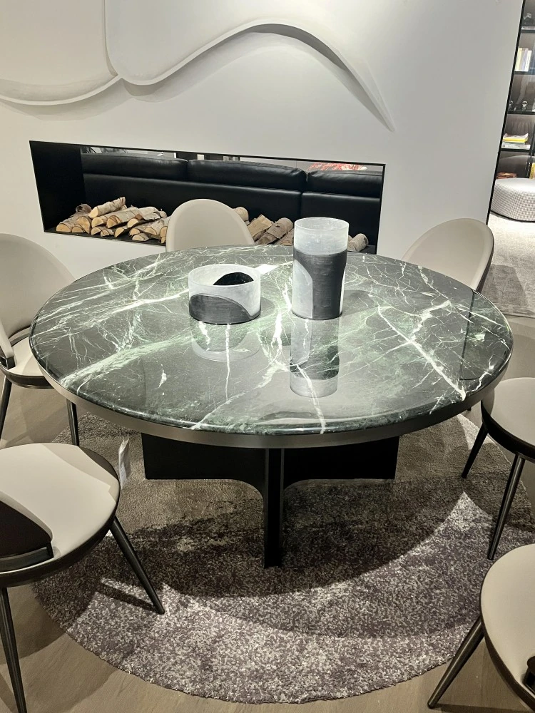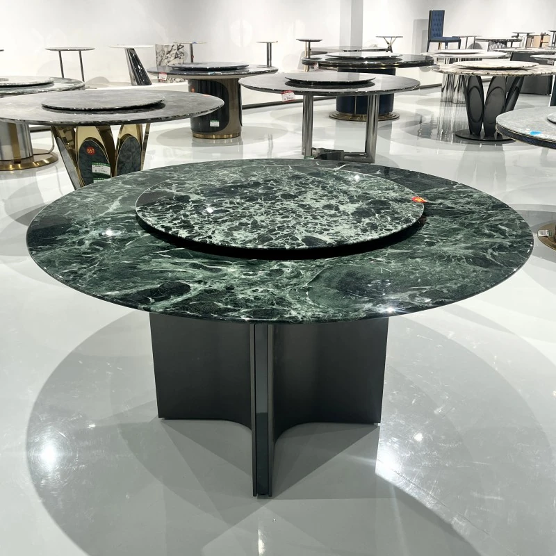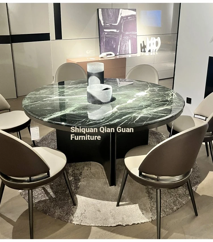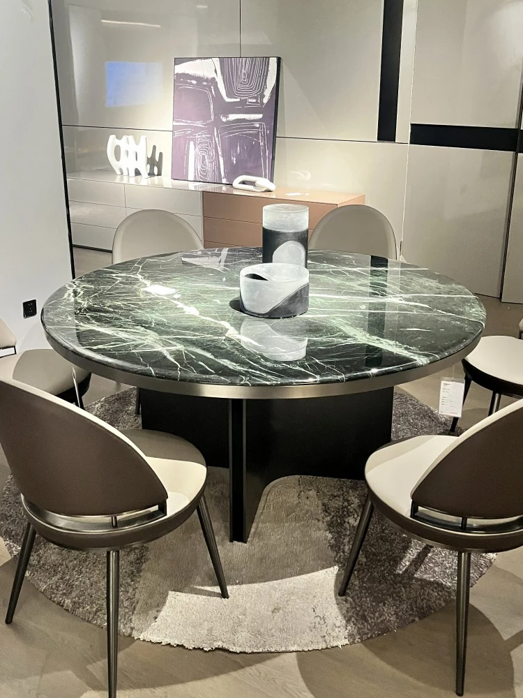 Prada Green Luxury Stone Round Dining Table - Italian Elegant Natural Marble, Spacious High-End Round Table for Villas and Home Use