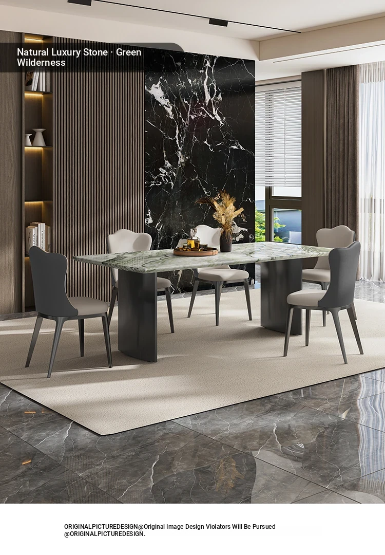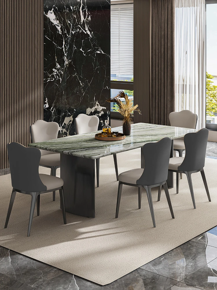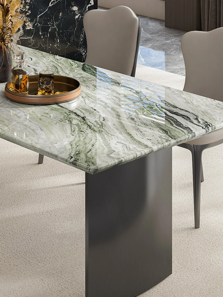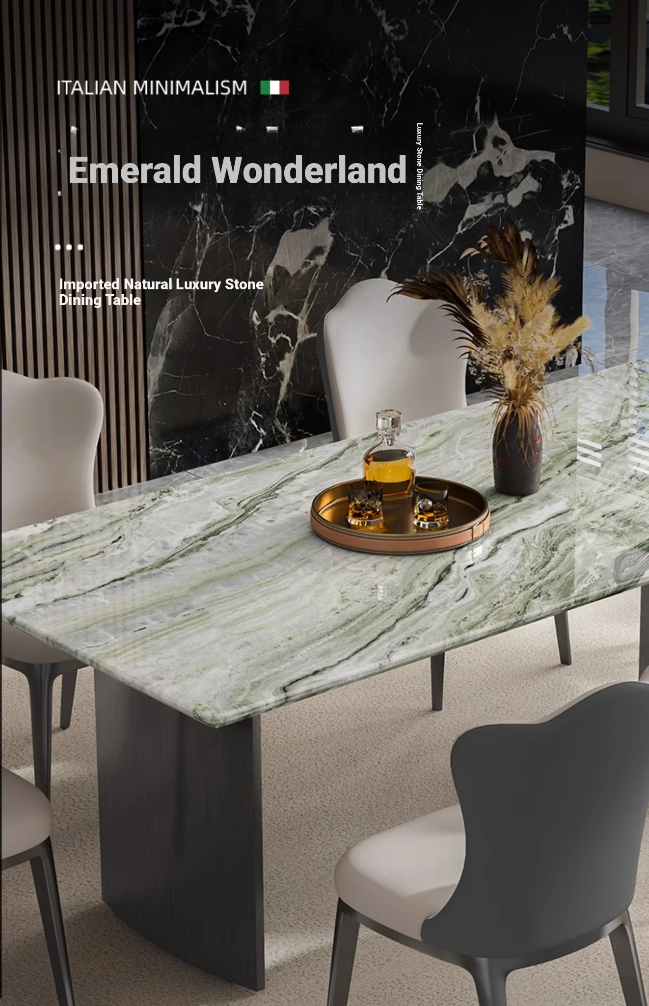 Premium Imported Natural Green Marble Dining Table - Designer Edition for Villas and Homes, Exquisite Emerald Fantasy Luxury Stone Dining Furniture