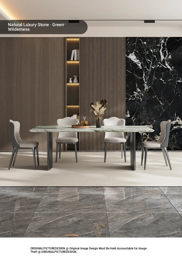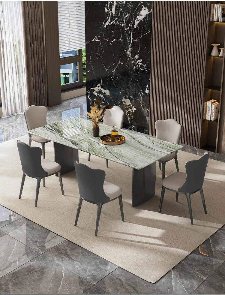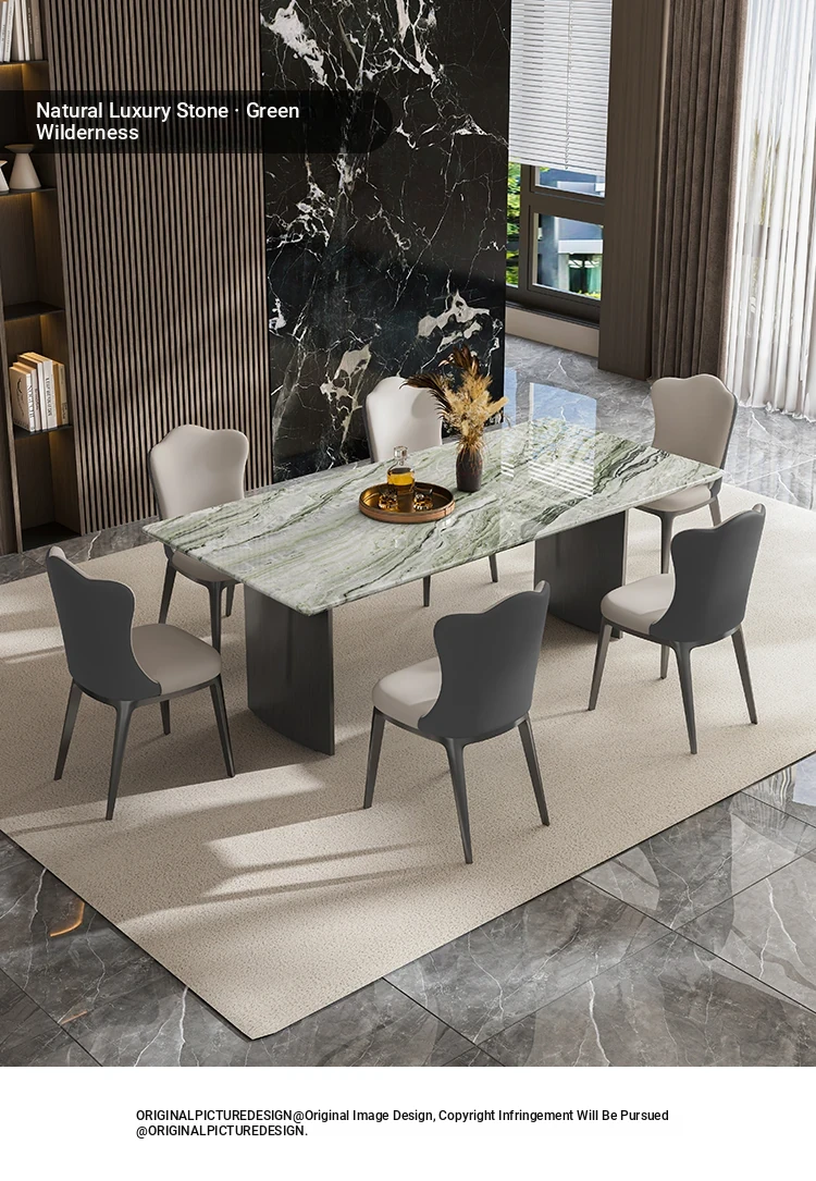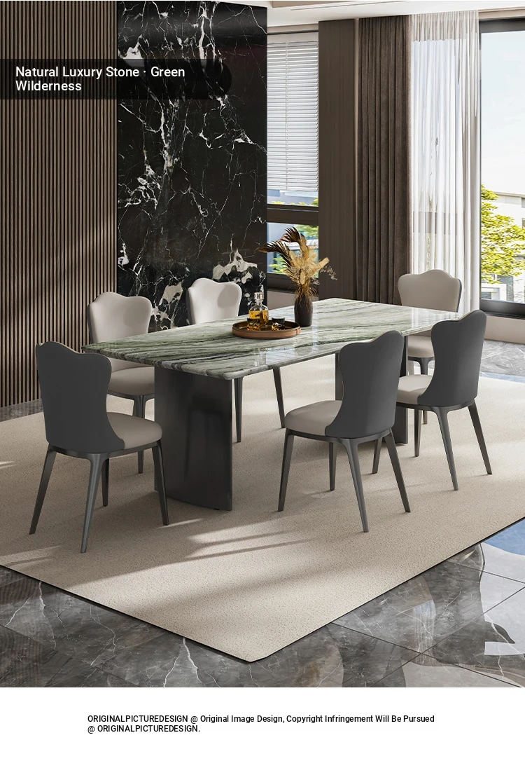 Premium Imported Natural Green Marble Dining Table - Designer Edition for Villas and Homes, Exquisite Emerald Fantasy Luxury Stone Dining Furniture