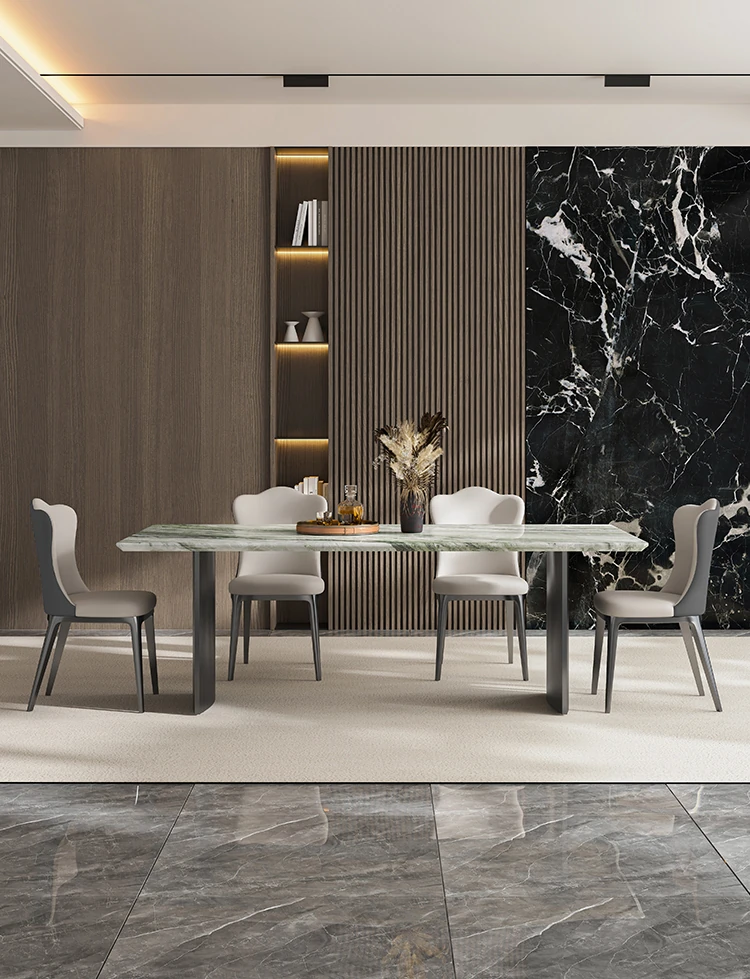 [Wizard of Oz] natural luxury stone dining table + leather cloud dining chair * 8