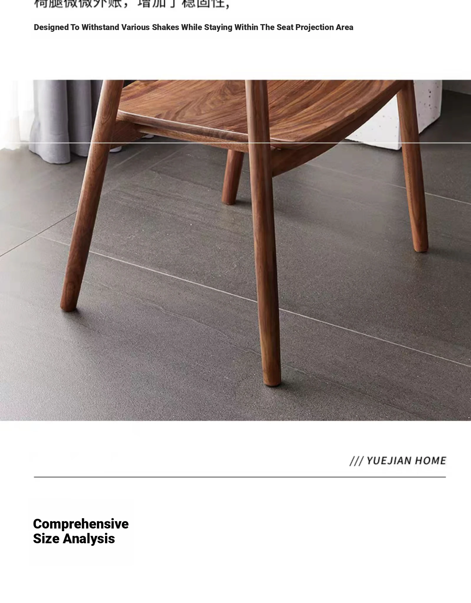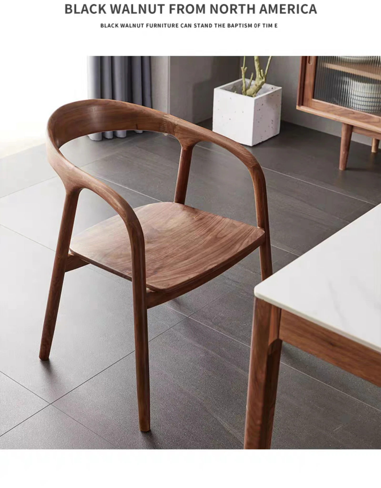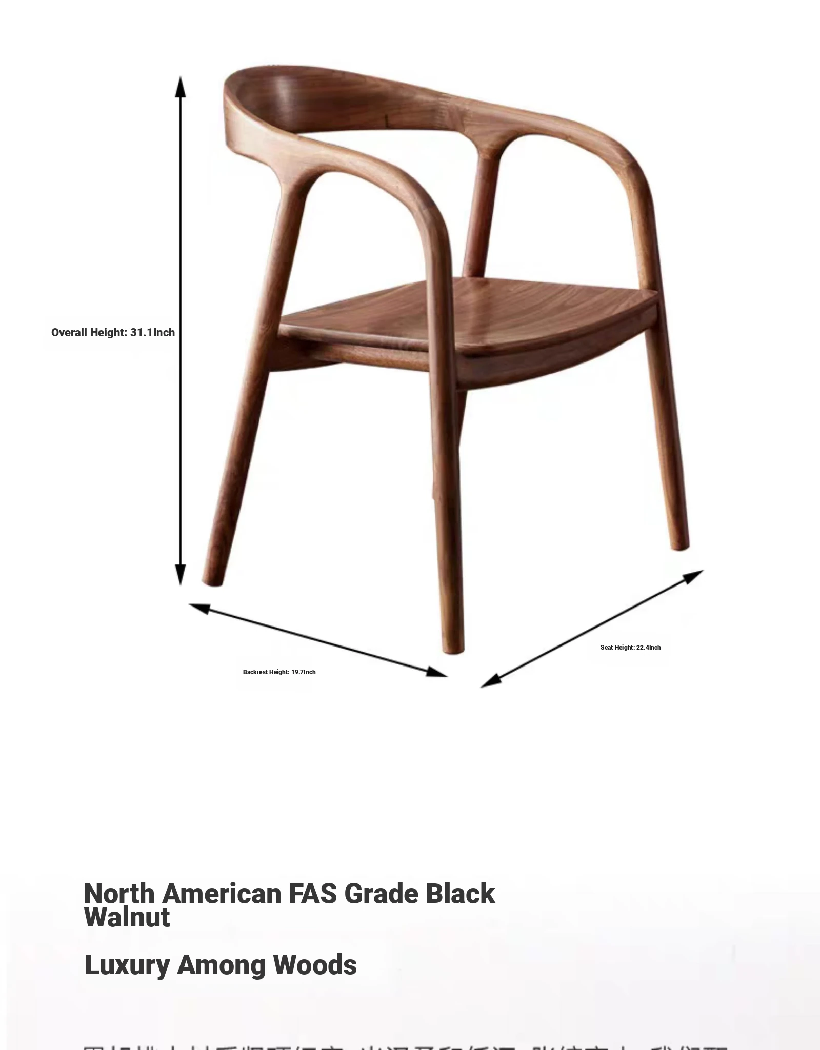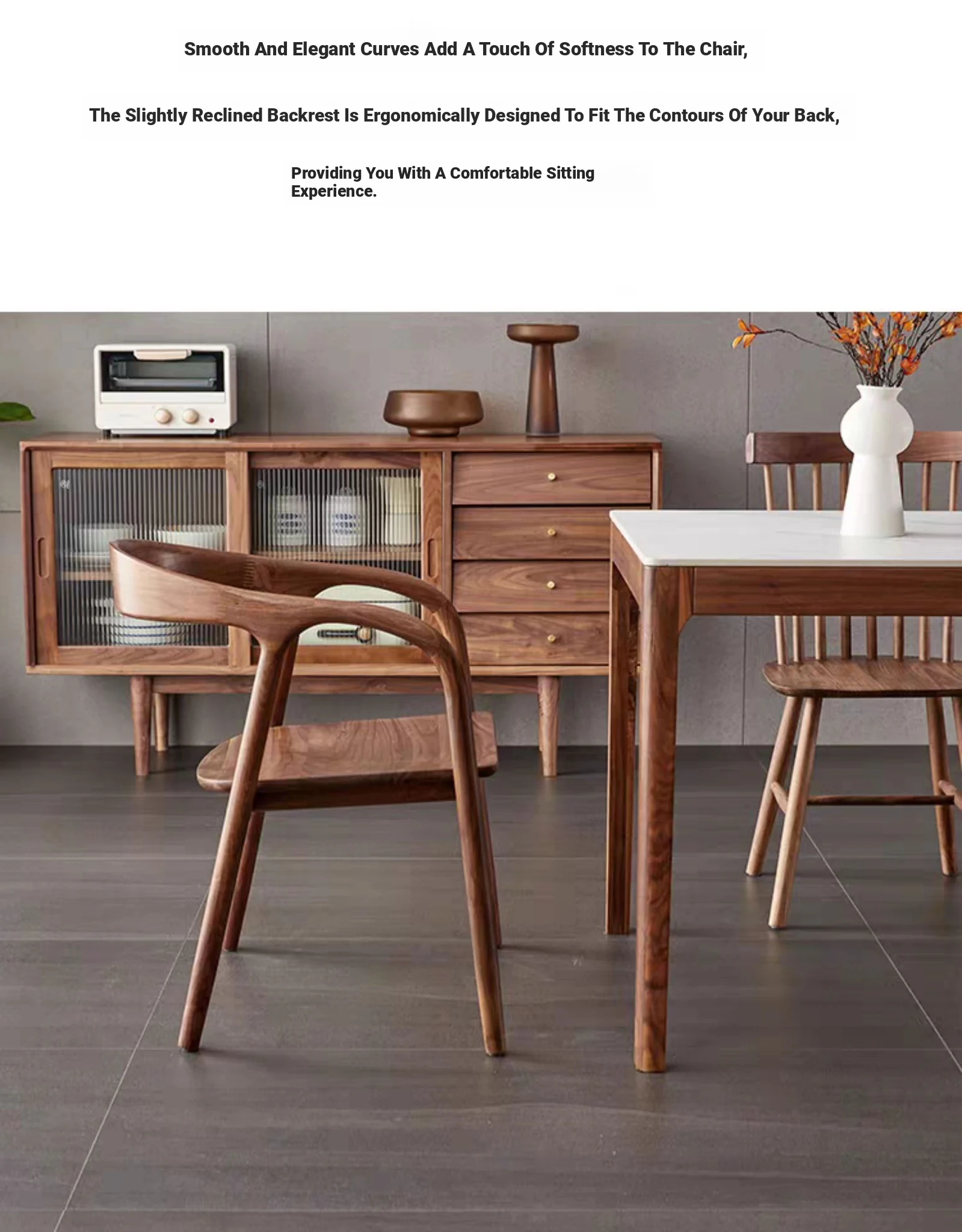 Solid Black Walnut Dining Chair for Small Spaces - Stylish and Comfortable Wooden Backrest Chair for Home Dining Room and Studyroom
