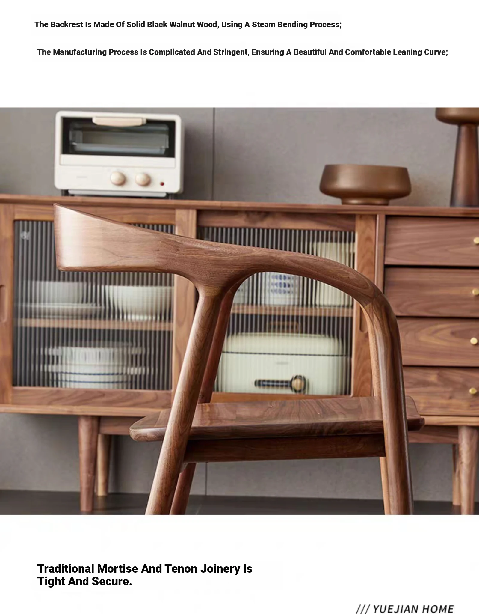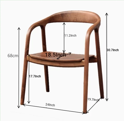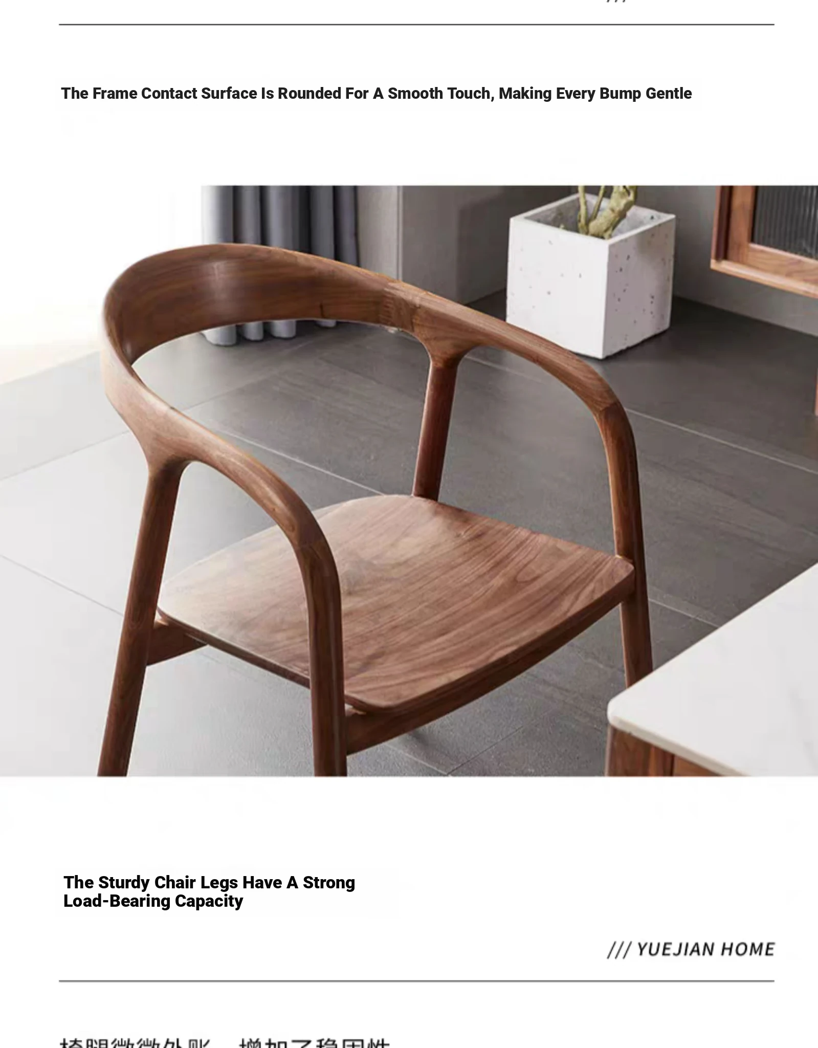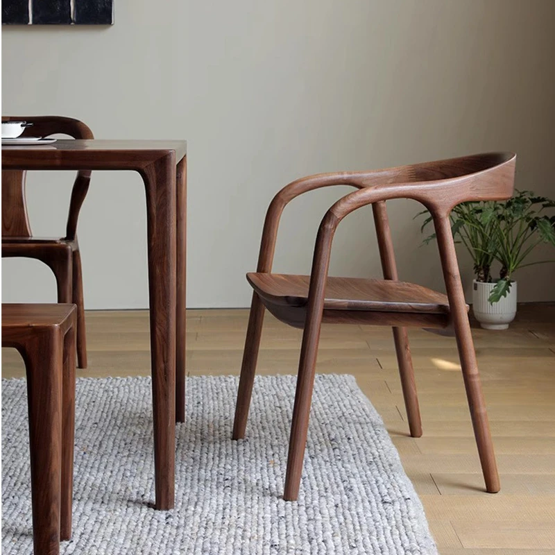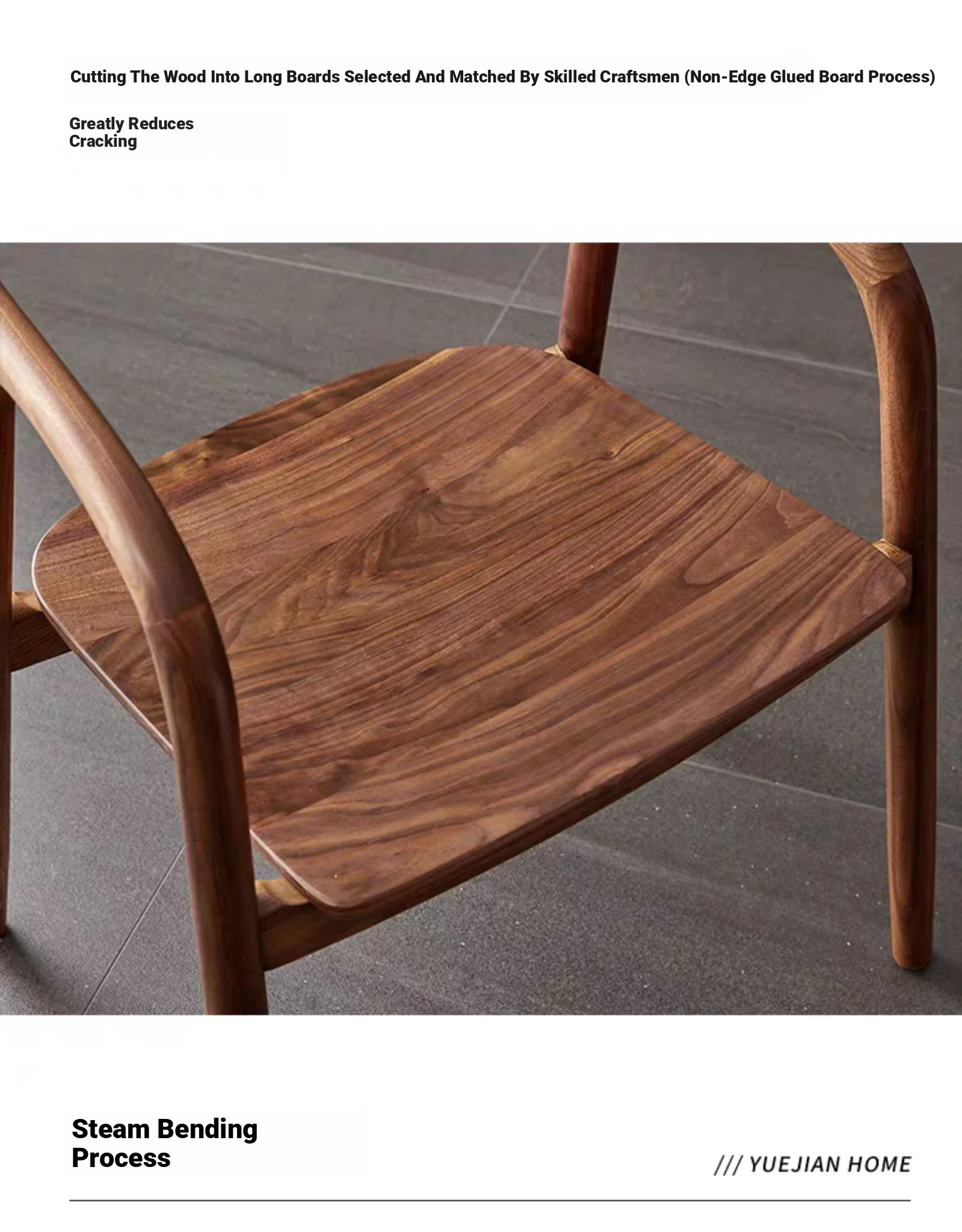 Solid Black Walnut Dining Chair for Small Spaces - Stylish and Comfortable Wooden Backrest Chair for Home Dining Room and Studyroom