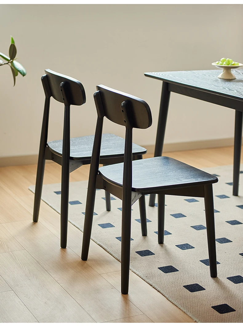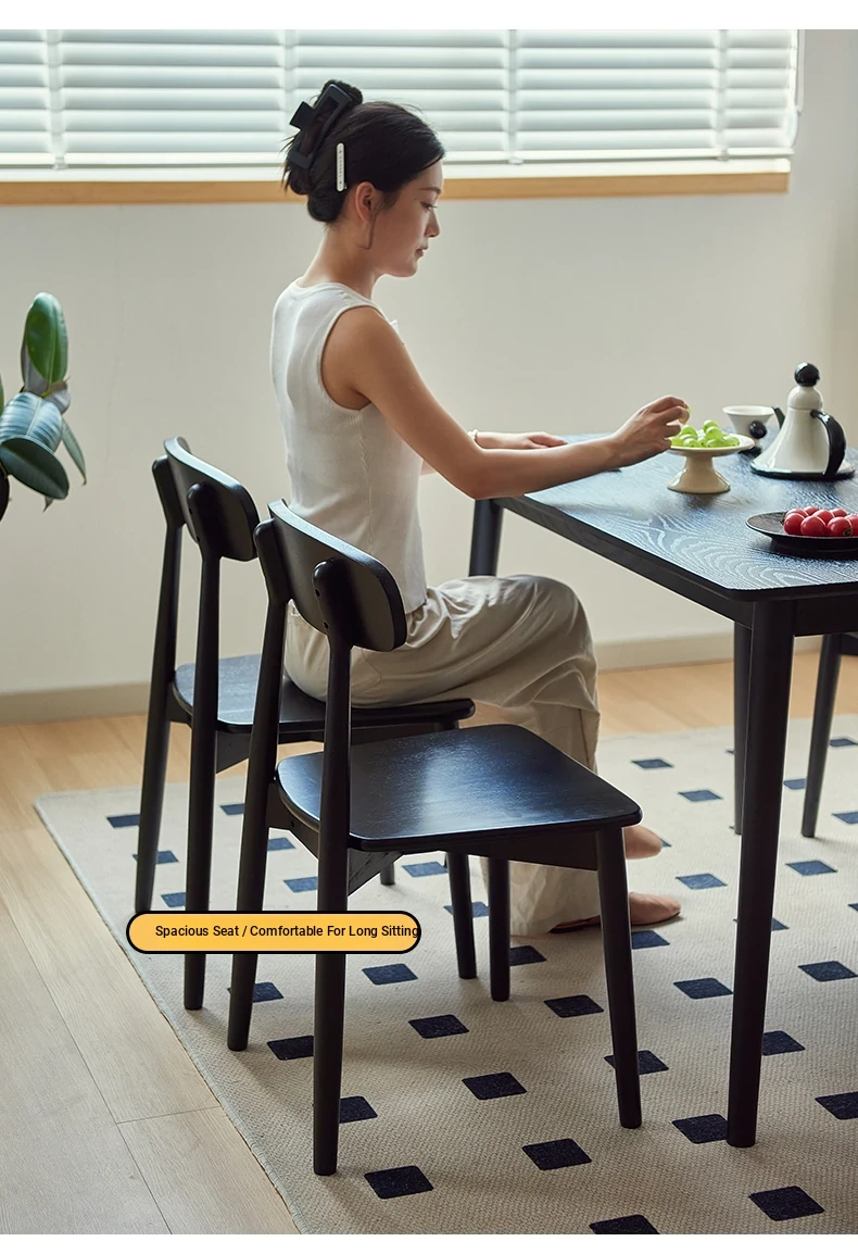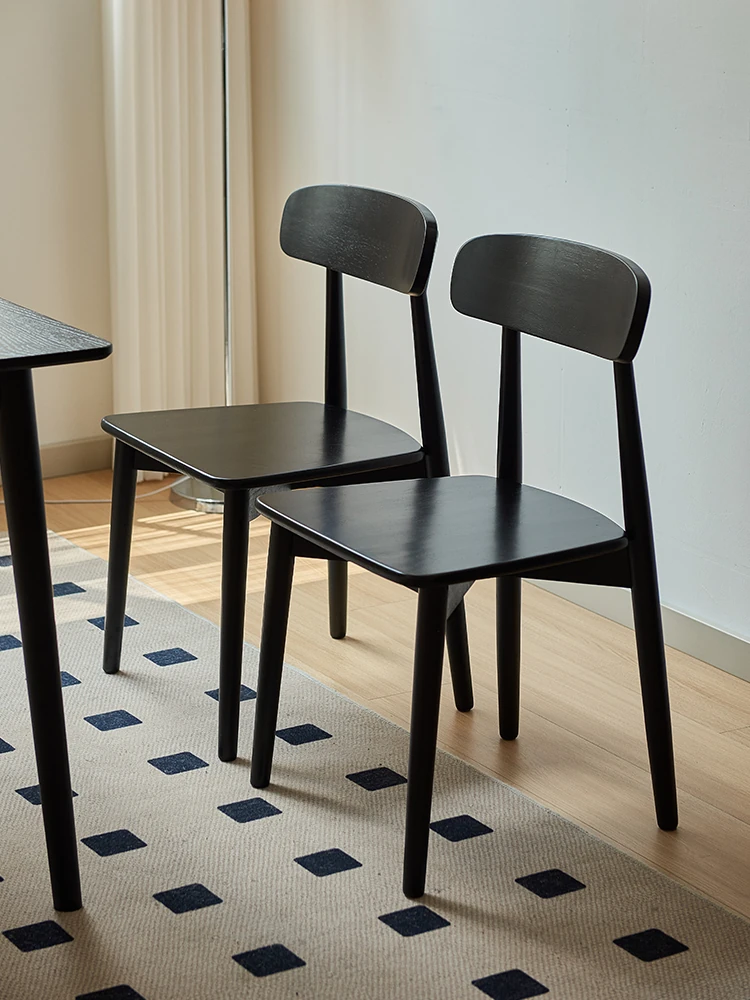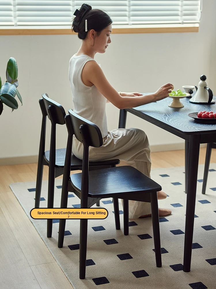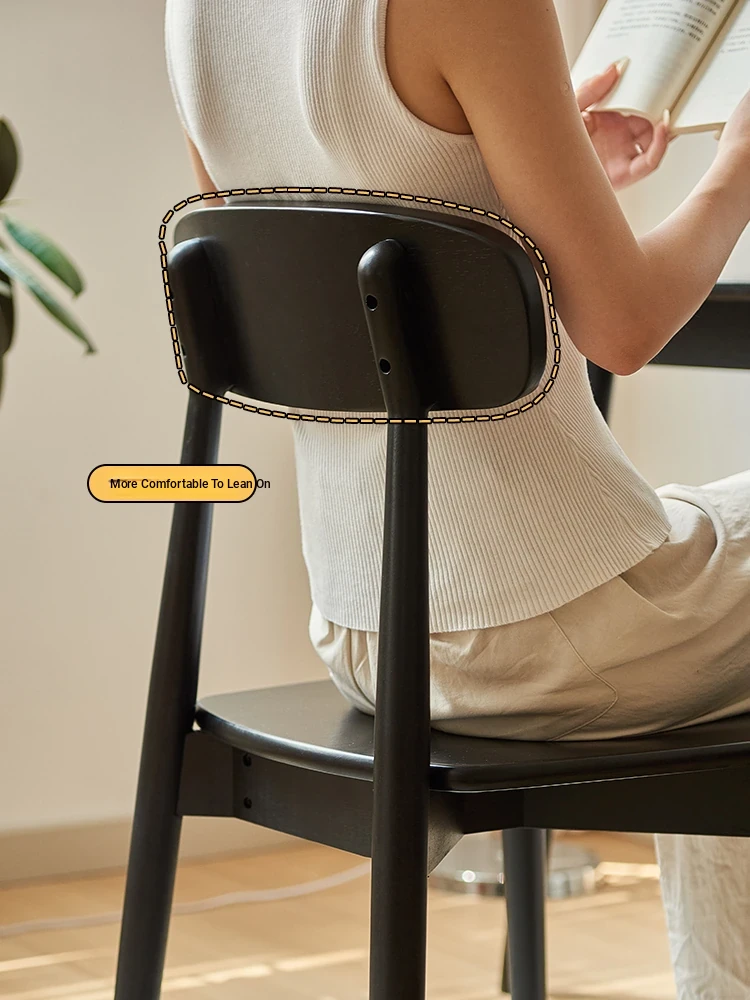 Solid Wood Dining Chair for Home - Nordic Style Minimalist Dining Chair, Perfect for Small Spaces, Black Backrest Chair Ideal for Dining Rooms and Desks