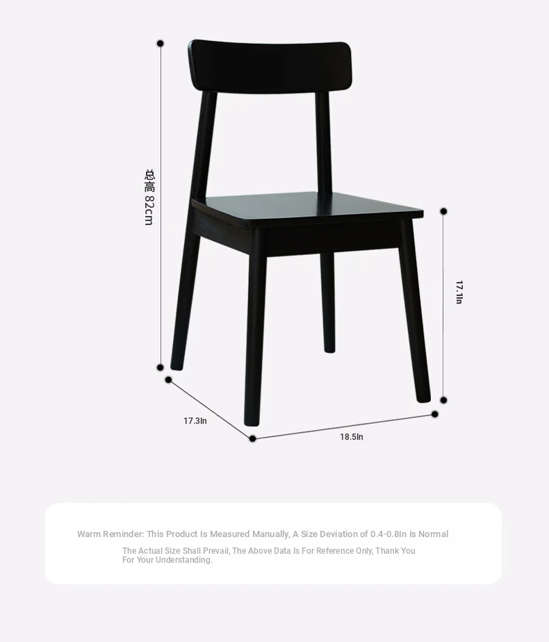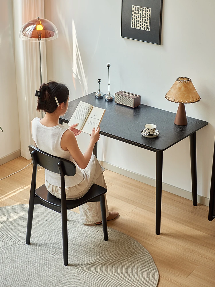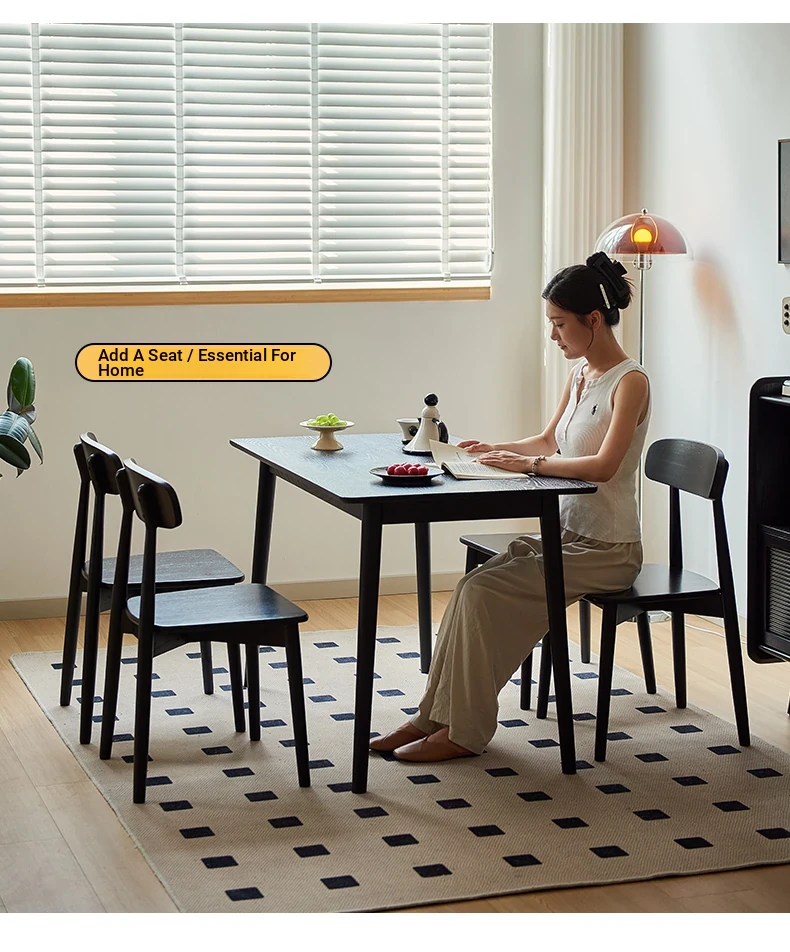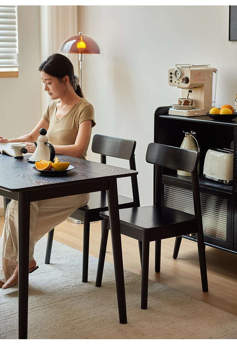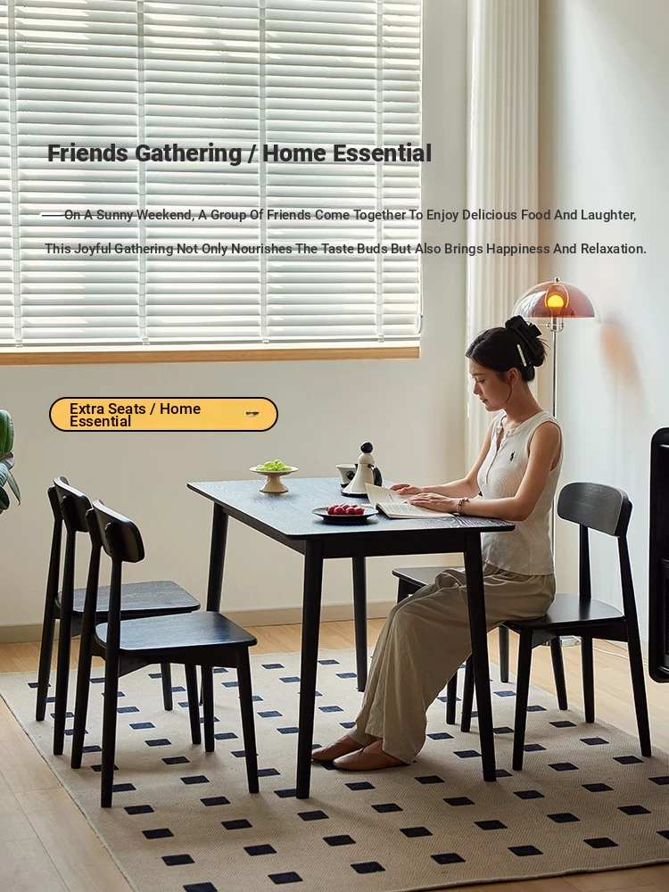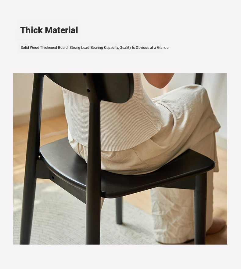 Solid Wood Dining Chair for Home - Nordic Style Minimalist Dining Chair, Perfect for Small Spaces, Black Backrest Chair Ideal for Dining Rooms and Desks