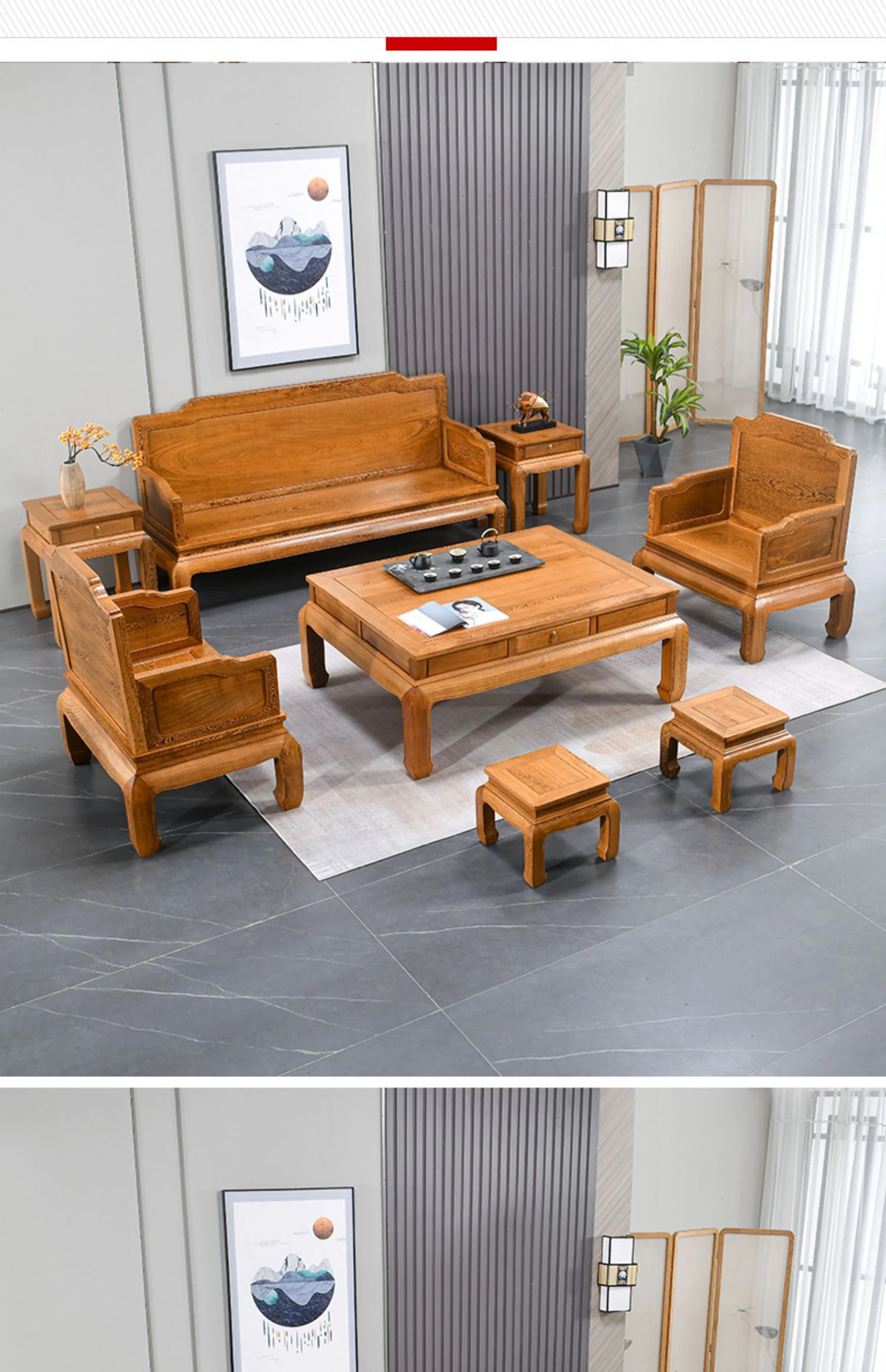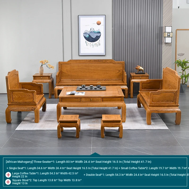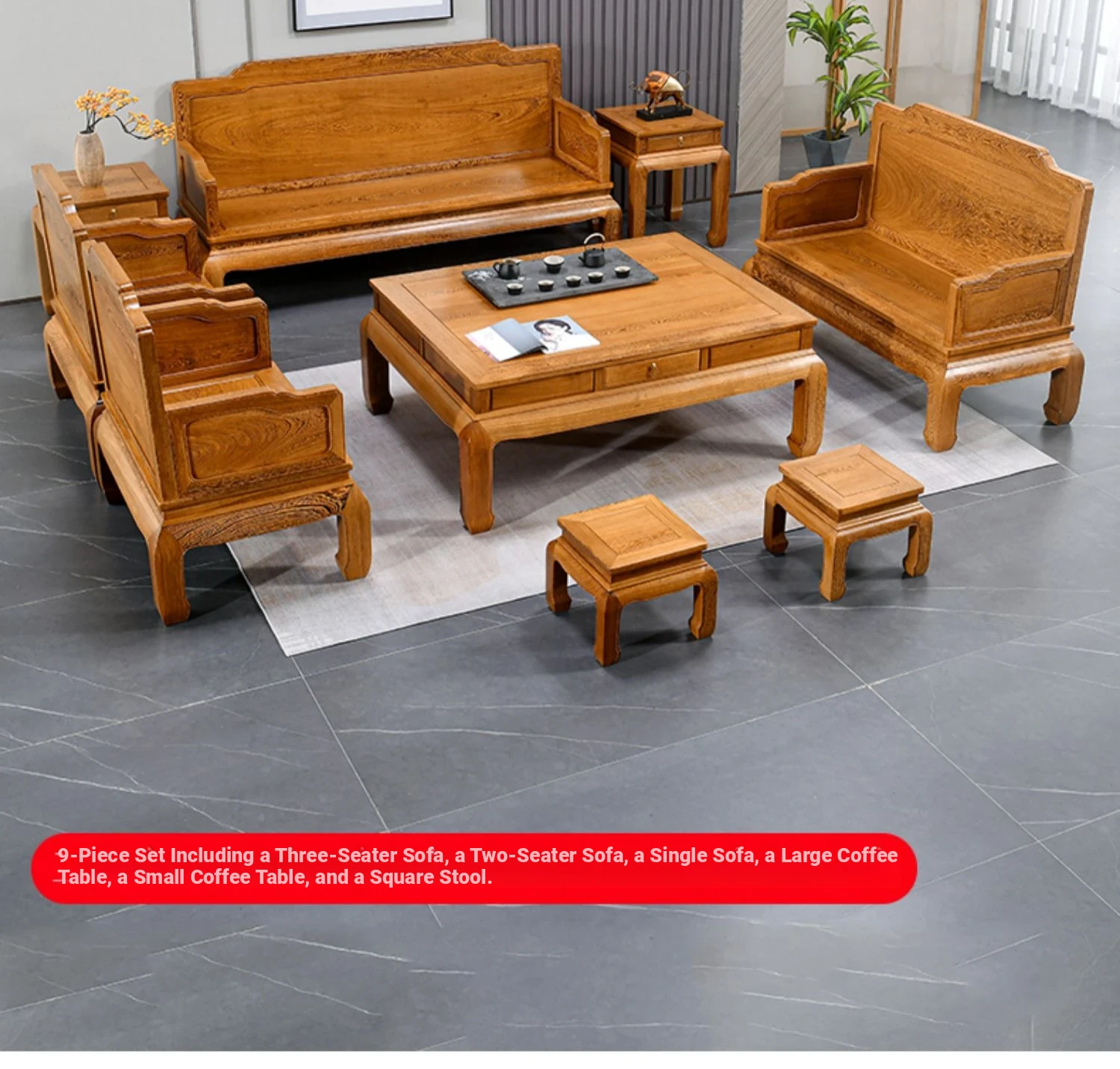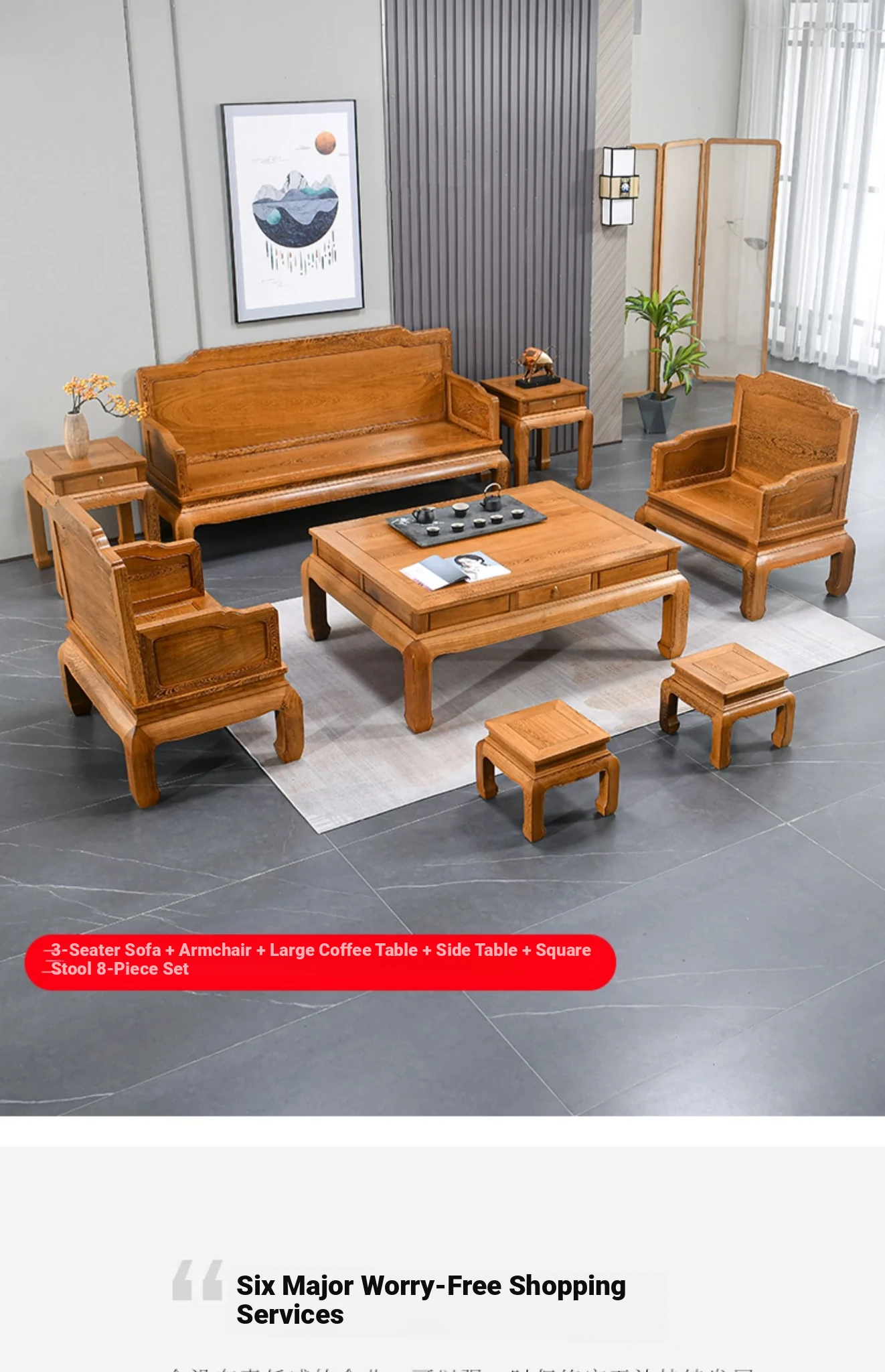 Three-seat + single-seat + large tea table + small tea table + square stool 8-piece set(Three-seat + single-seat + large tea table + small tea table + square stool 8-piece set)