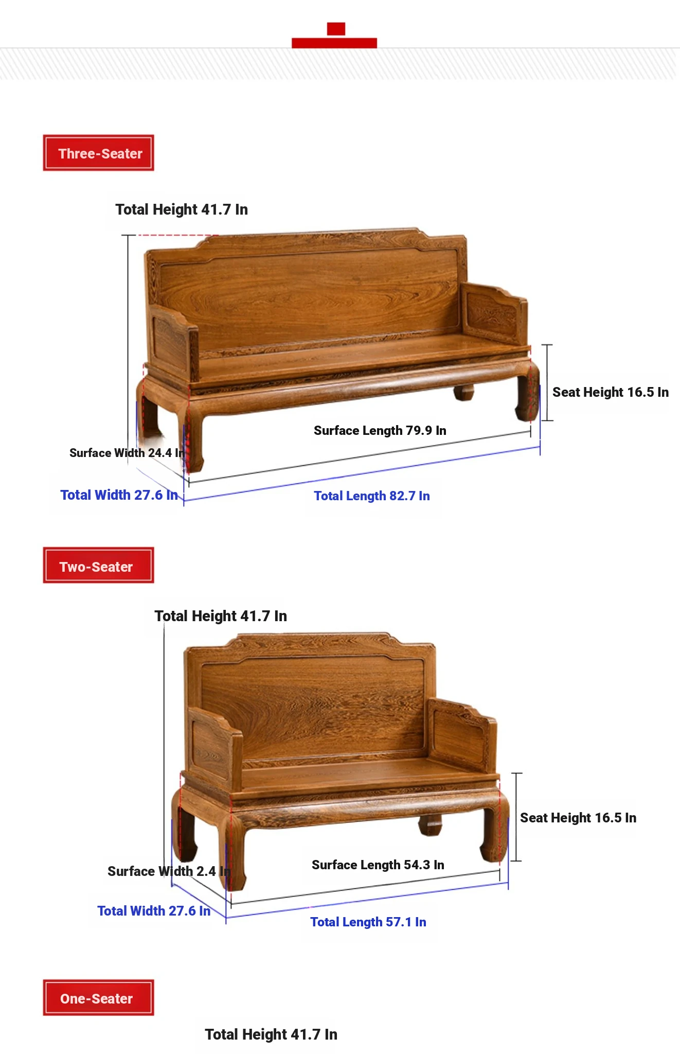 Solid Wood Rosewood Wing Chair Sofa Set - Traditional Chinese Antique Style Living Room Seating for All Room Sizes - Complete Assembly