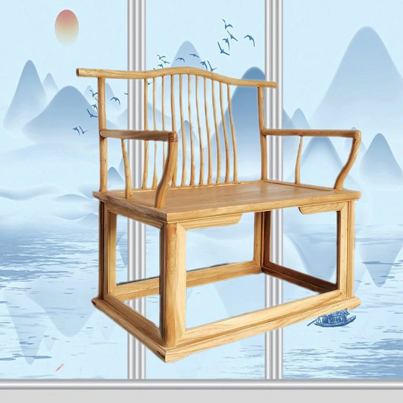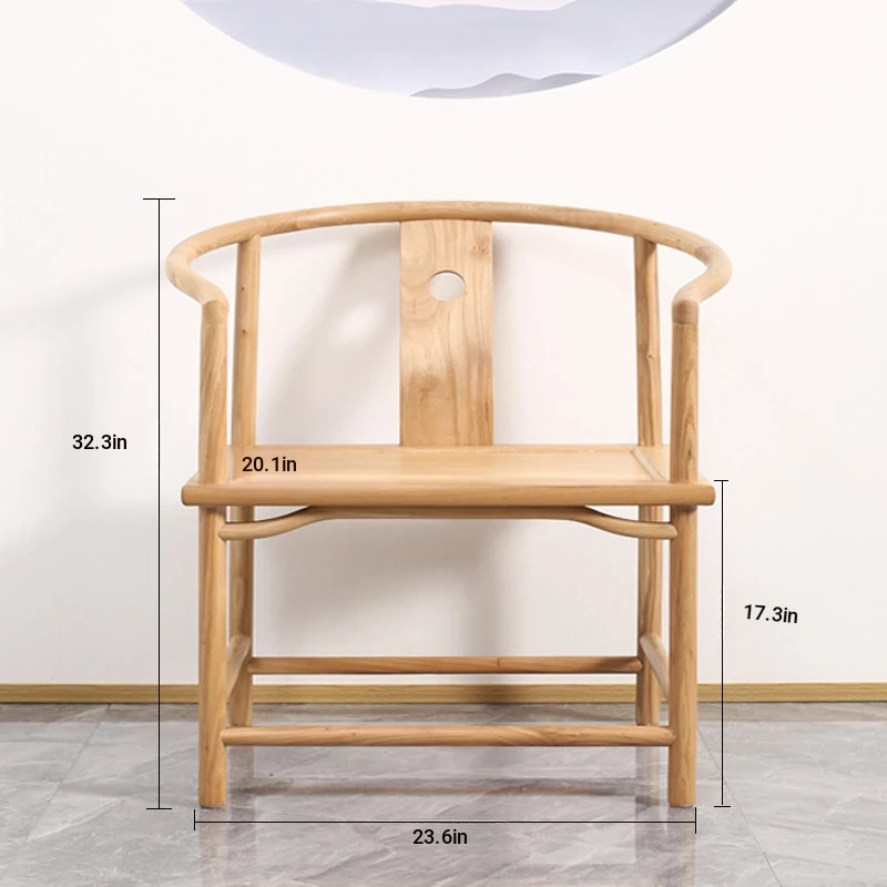 Solid Wood Tea Chair - Chinese Style Armchair with Backrest, Elm Wood Circle Chair, Grandmaster Chair, Official Hat Chair, Zen-Inspired Armchair - Special Price Offer!