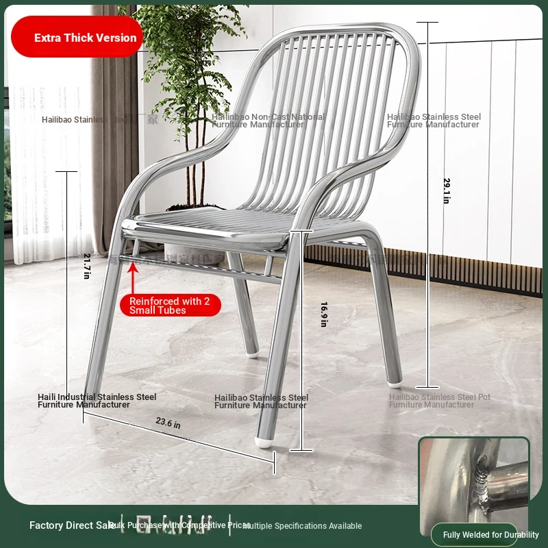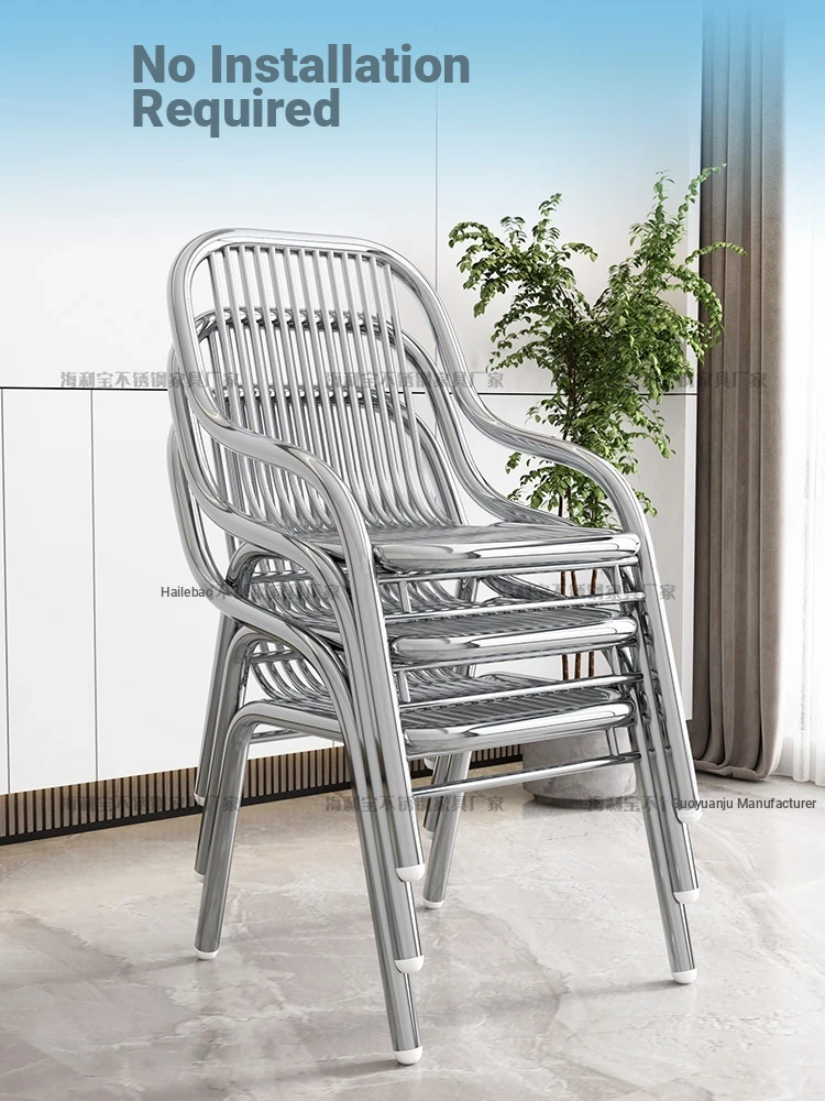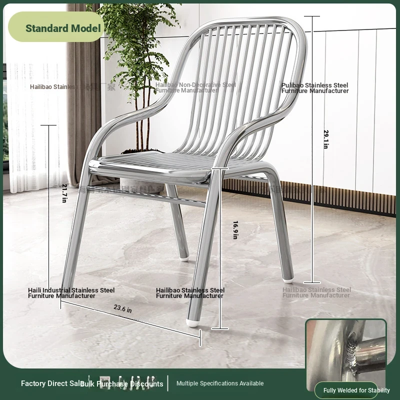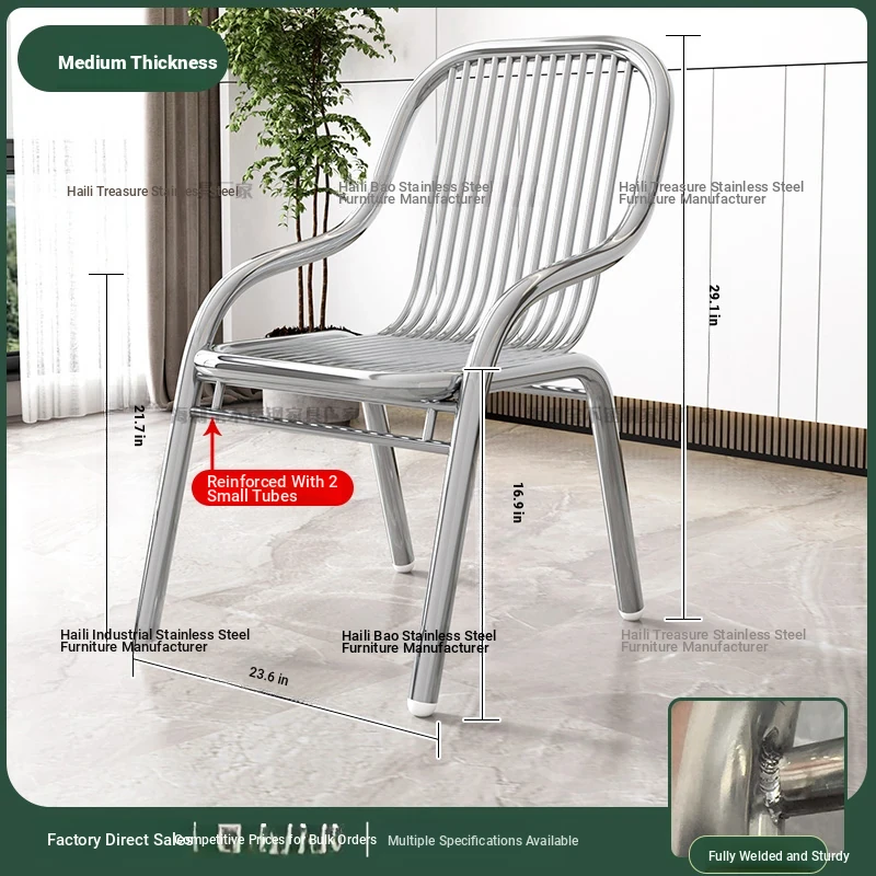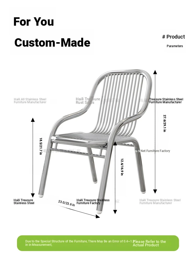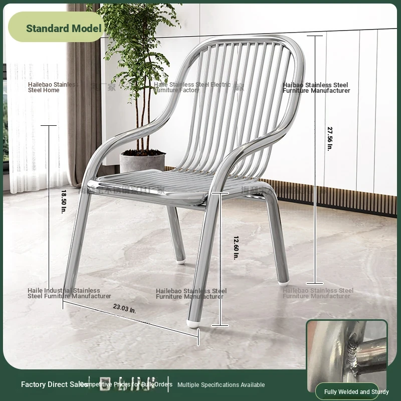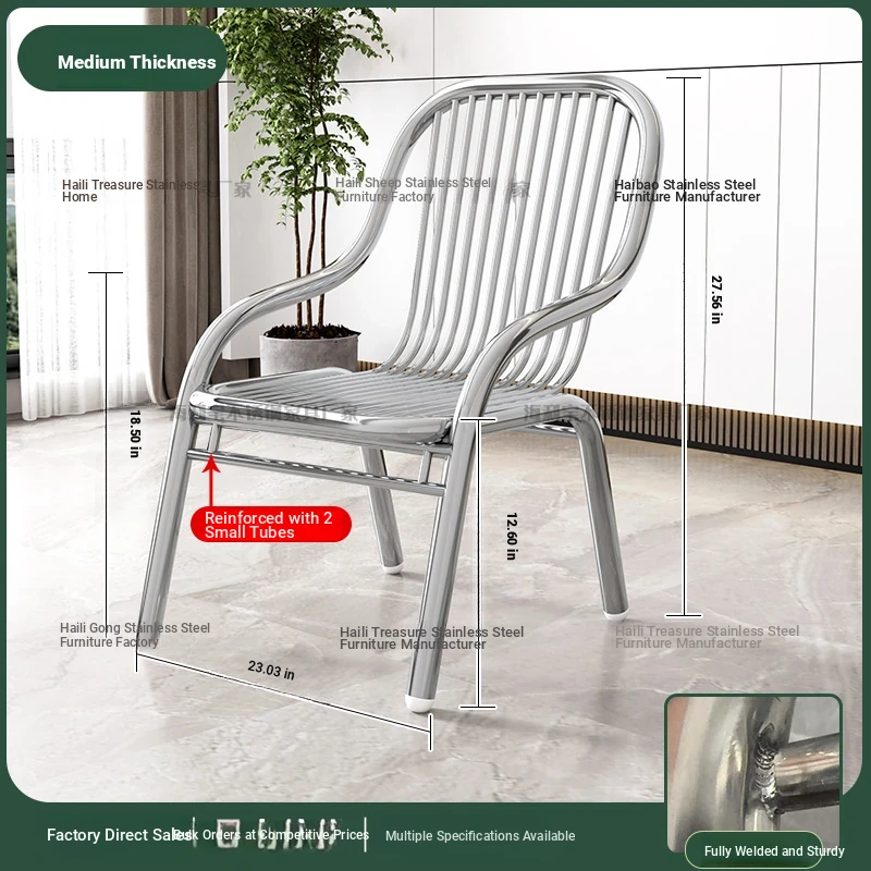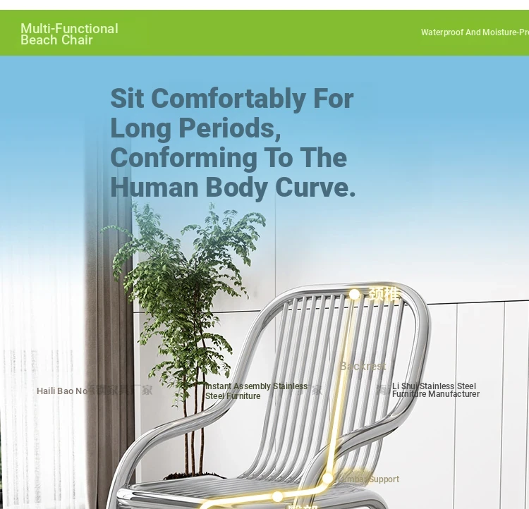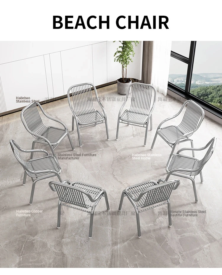 Stainless Steel Beach Chair with Backrest - Stylish Outdoor Metal Lounge Chair for Home Use, Perfect for Relaxing in the Garden or Patio, Comfortable Single Armchair