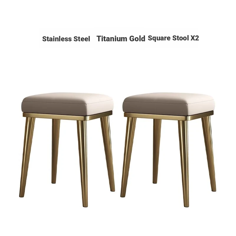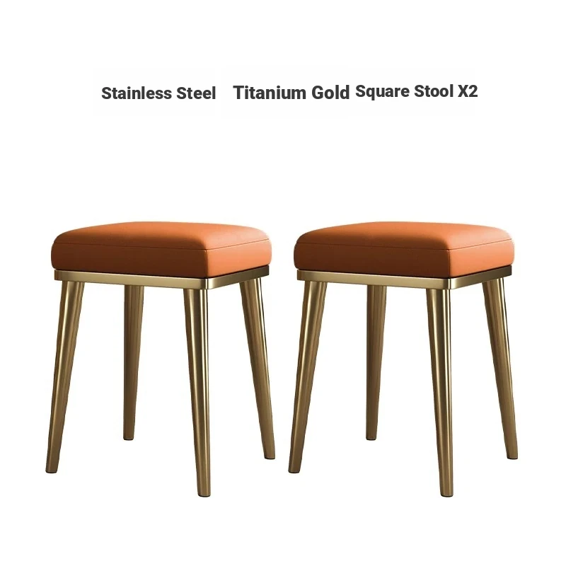 Apricot Abrasion Resistant leather + stainless steel (titanium) square stool * 2