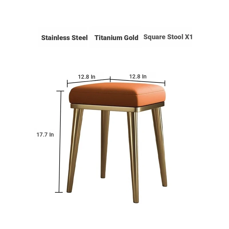 Orange Abrasion Resistant leather + stainless steel (titanium) square stool * 4