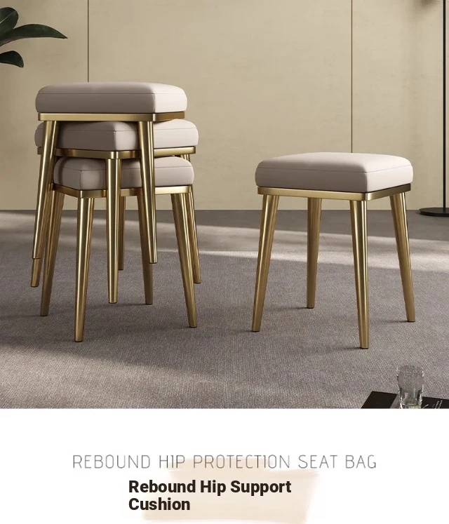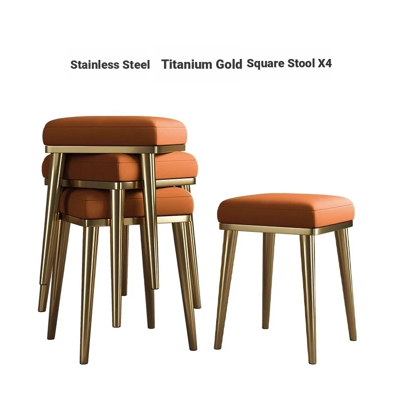 Apricot Abrasion Resistant leather + stainless steel (titanium) square stool * 4