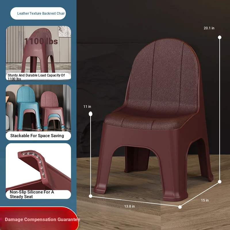 Thickened Plastic Stool with Backrest for Kids and Adults - Stylish Nordic Dining Chair, Perfect for Living Room, Tea Table, and Shoe Changing Bench