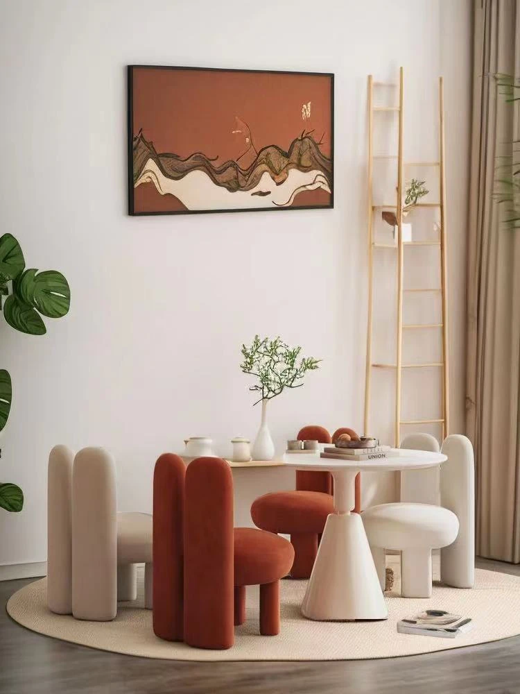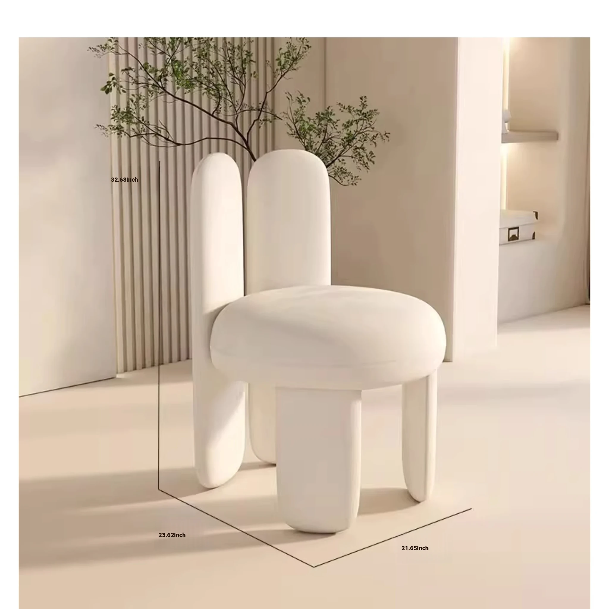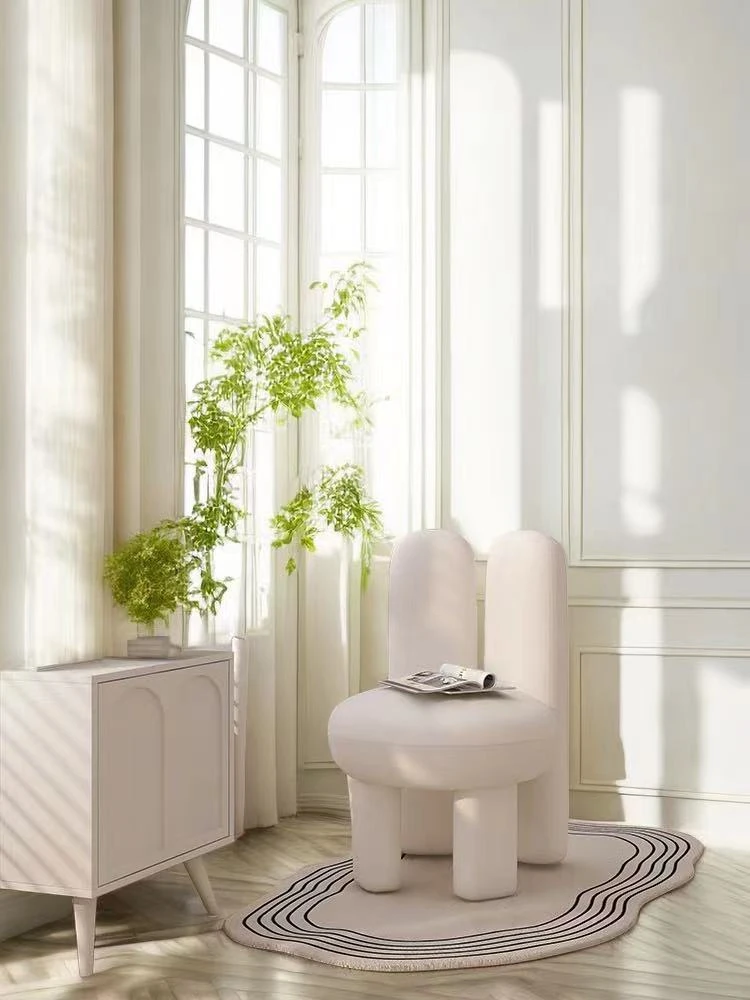 Trendy Creamy Faux Lambskin Makeup Chair - Modern Minimalist Vanity Stool for Bedroom, Perfect for Home Luxury Decor