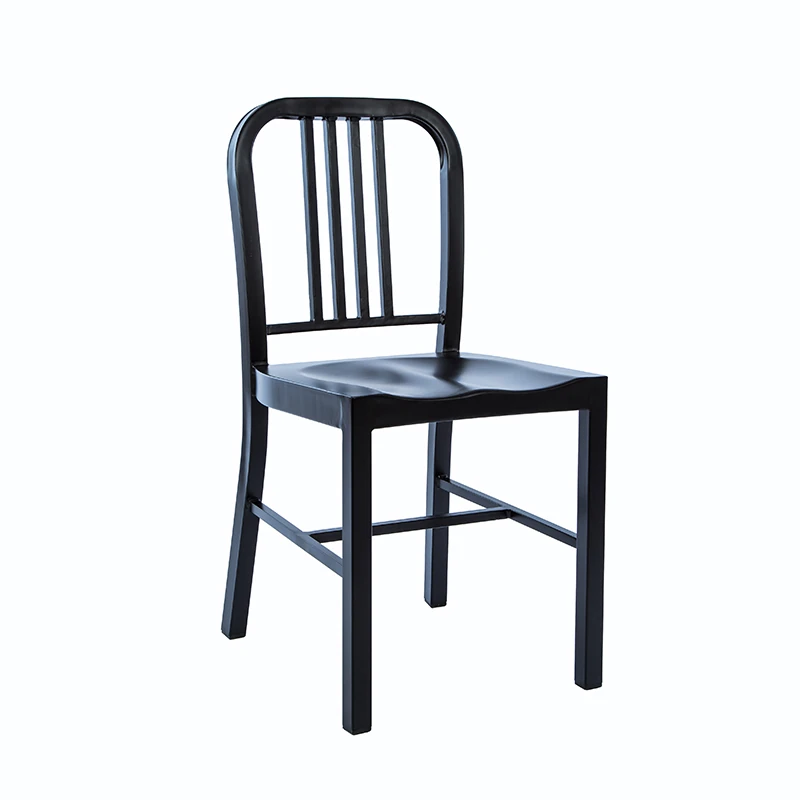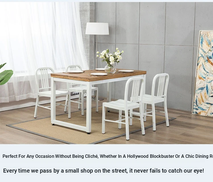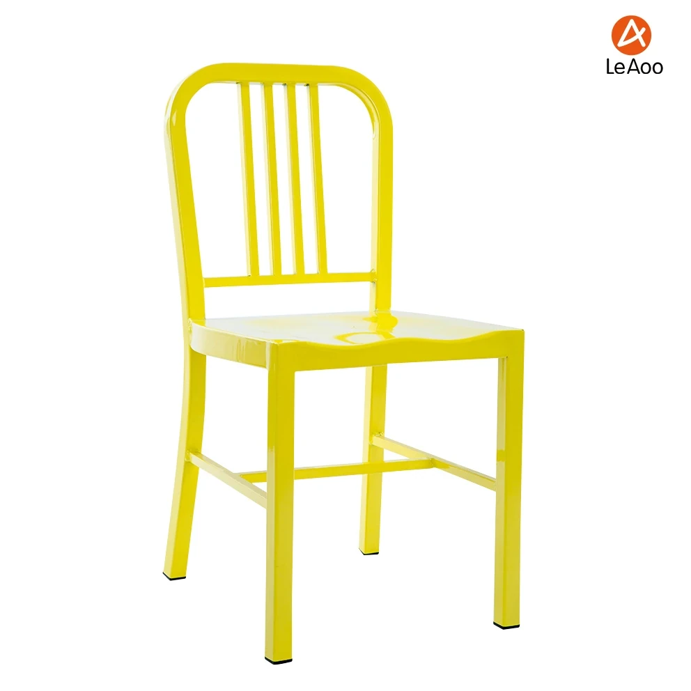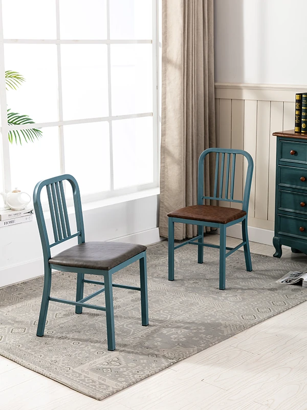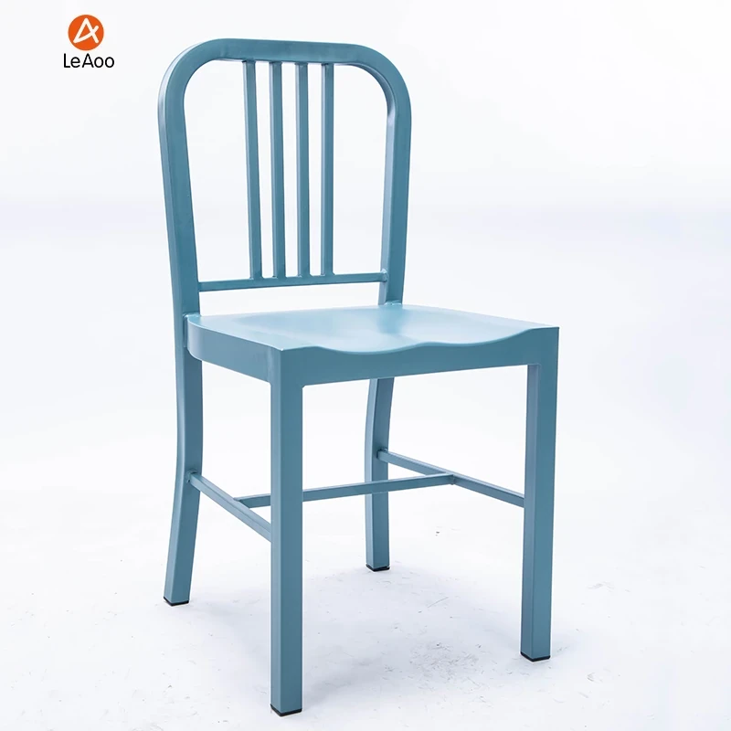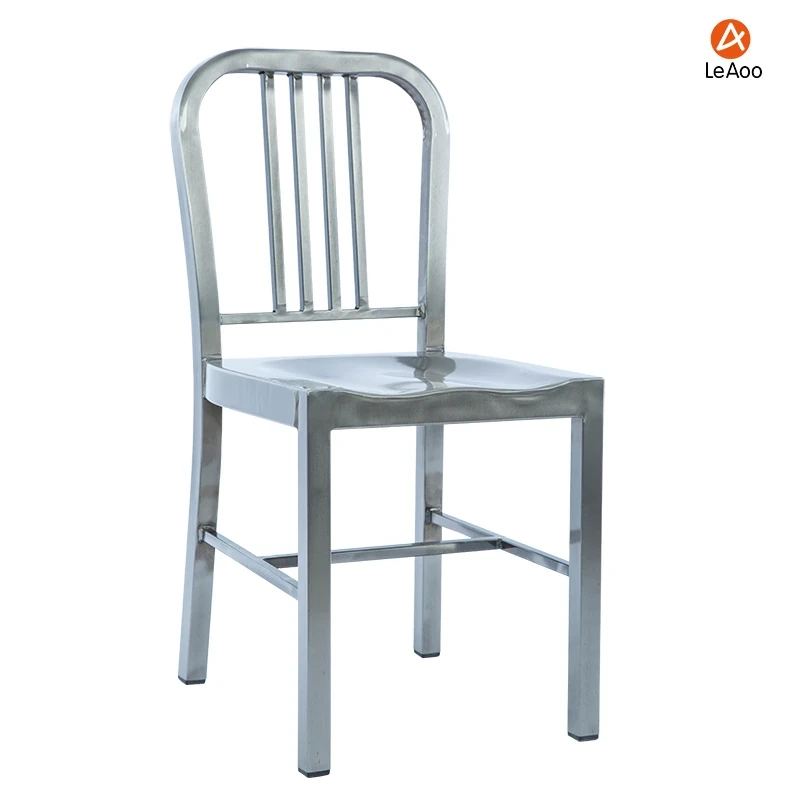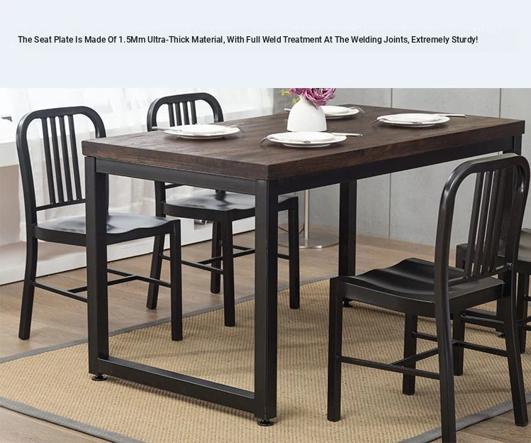 Vintage Navy Chair - Industrial-Style Iron Dining Chair with Straight Backrest, Perfect for Hot Pot Restaurants - Durable Faux Stainless Steel Metal Square Tube Design