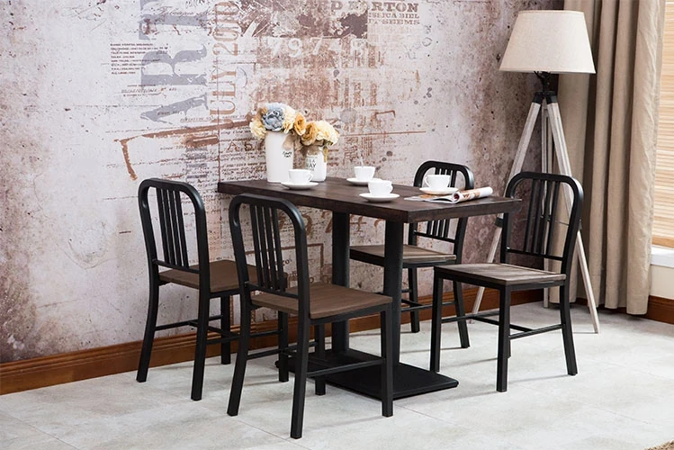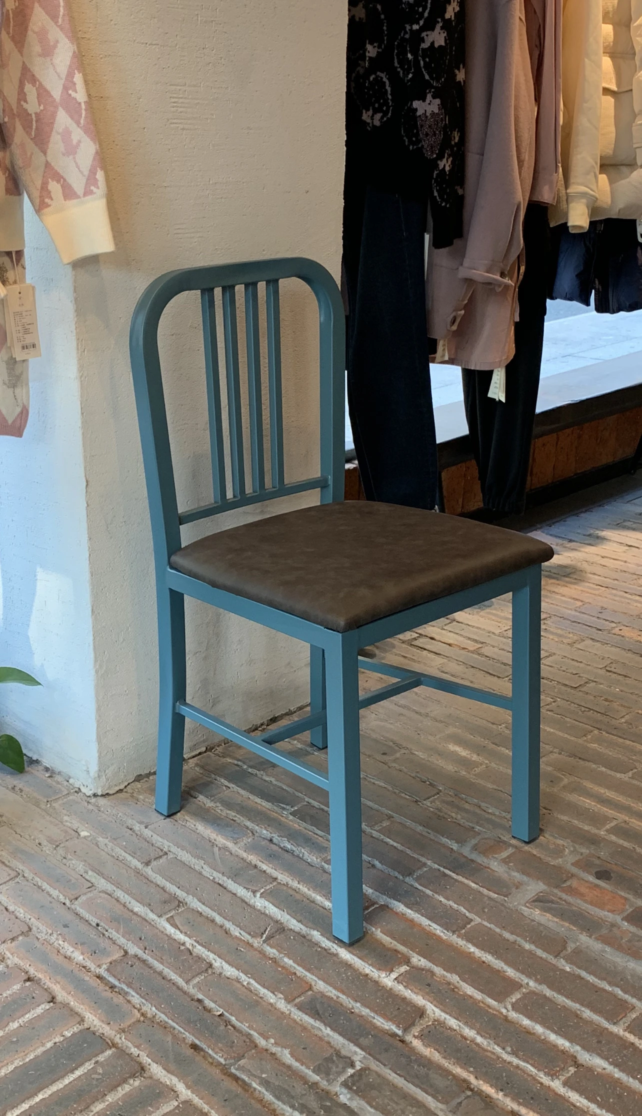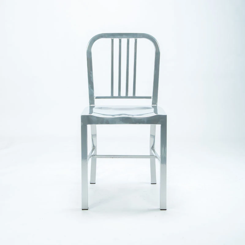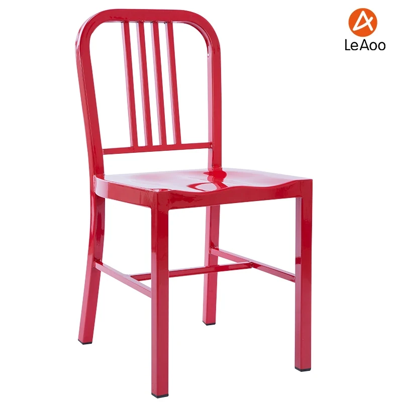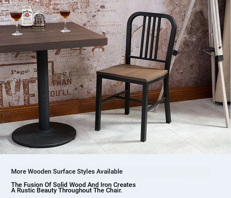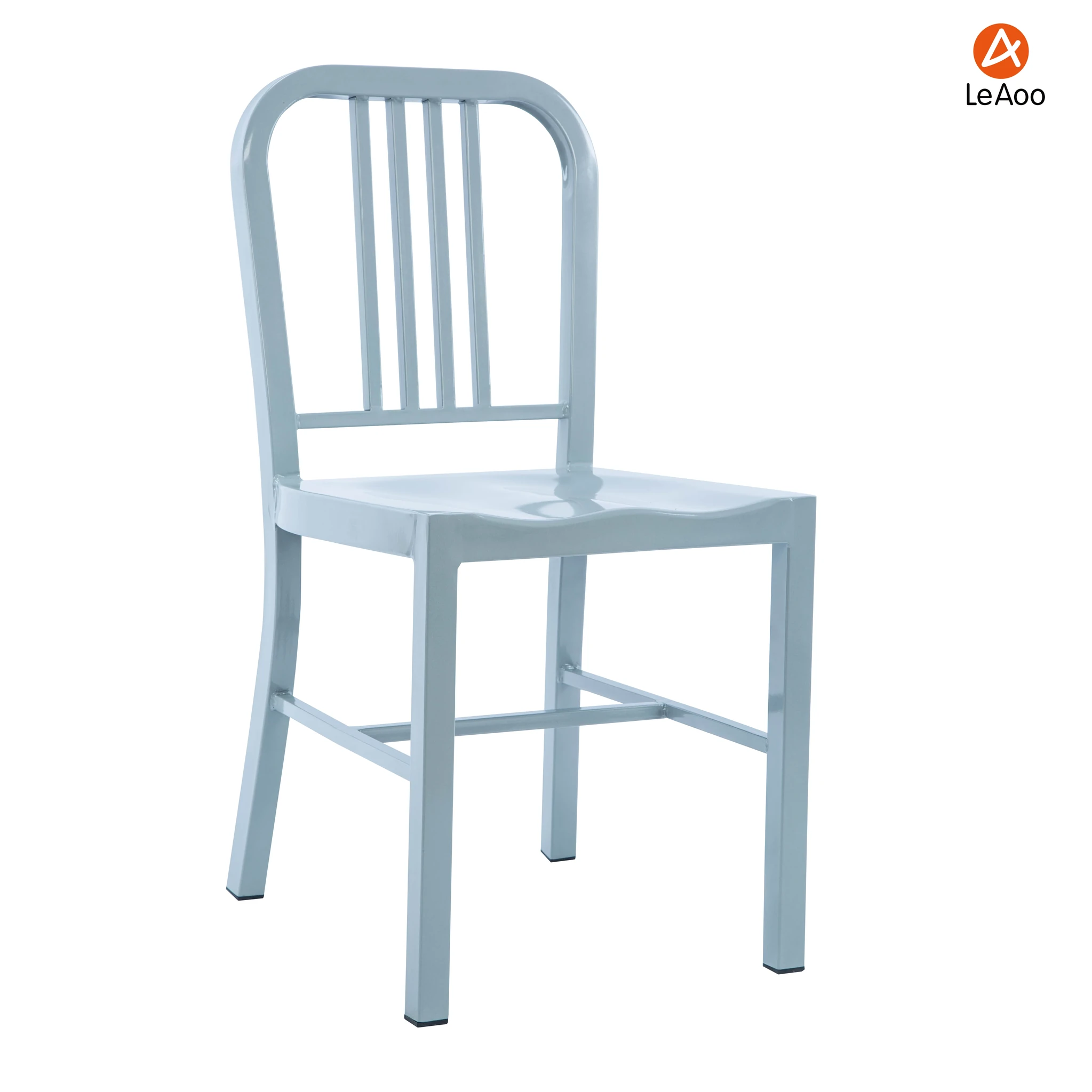 Vintage Navy Chair - Industrial-Style Iron Dining Chair with Straight Backrest, Perfect for Hot Pot Restaurants - Durable Faux Stainless Steel Metal Square Tube Design