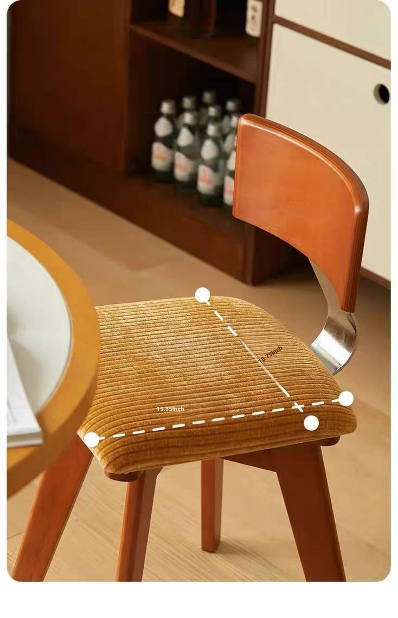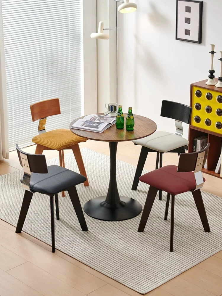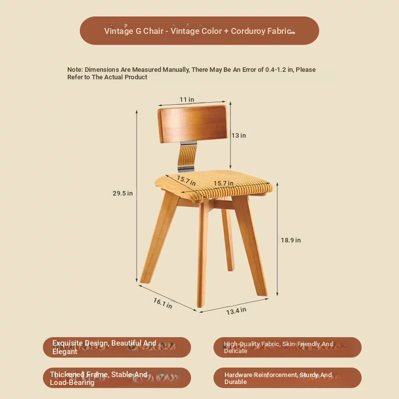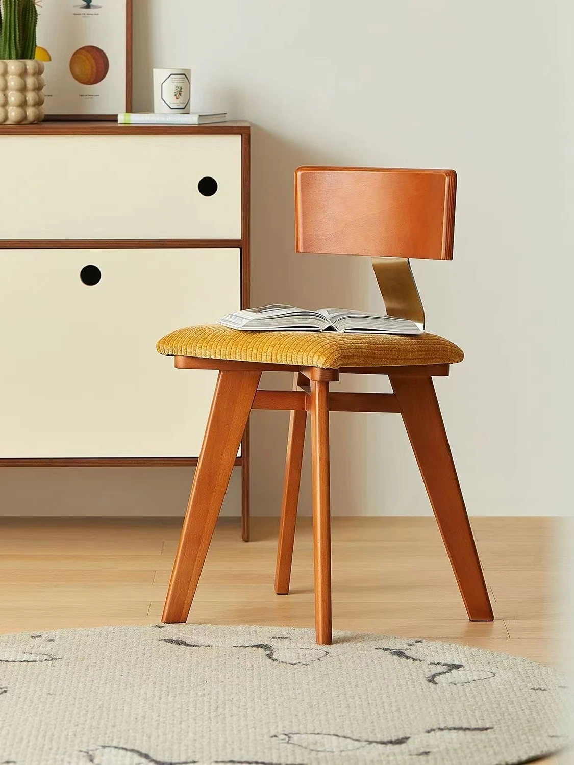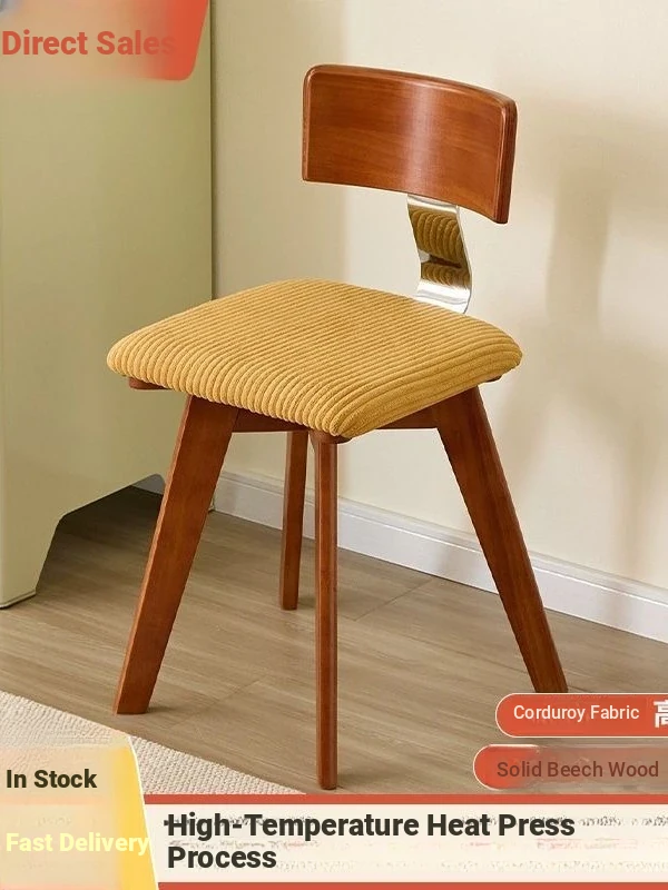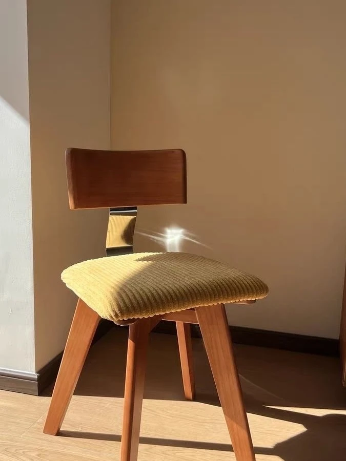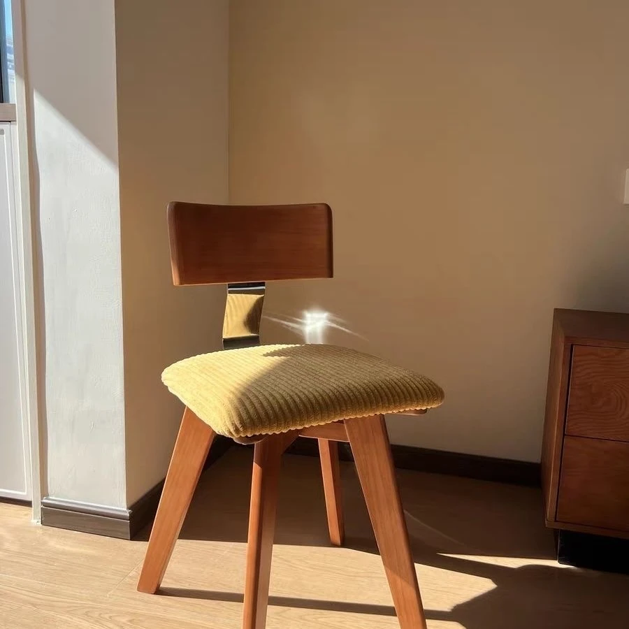 Vintage Scandinavian Solid Wood Dining Chair with Backrest – Wabi-Sabi Style Designer Makeup Stool – French Retro Accent Chair for a Chic Dining Experience
