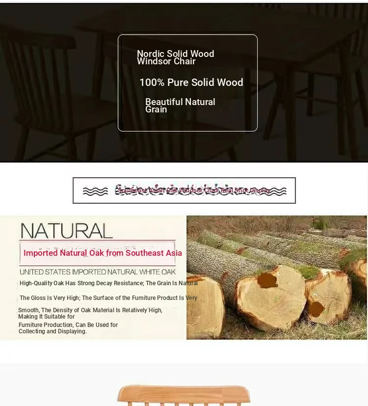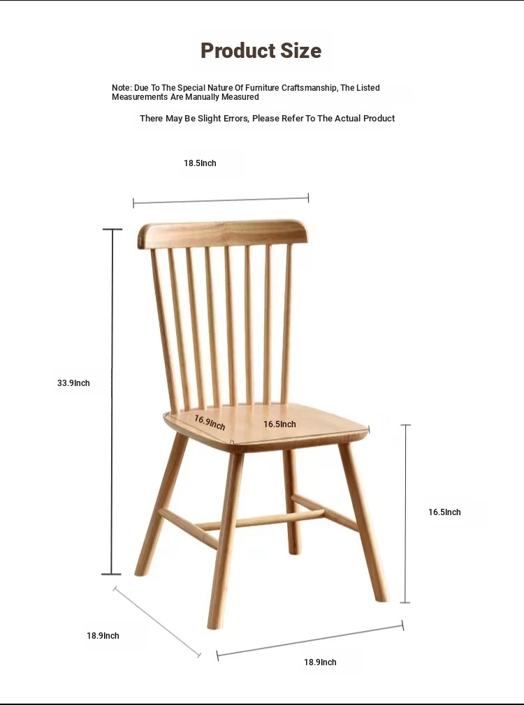 Windsor Chair - Minimalist Backrest Solid Wood Dining Chair for Restaurant and Study, Elegant Nordic Style Home Dining Chair, Perfect for Stylish Interiors