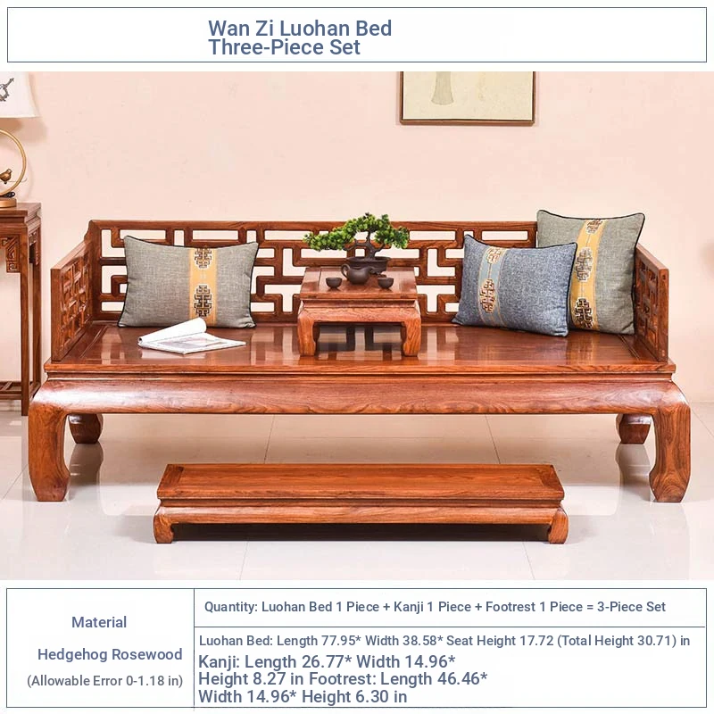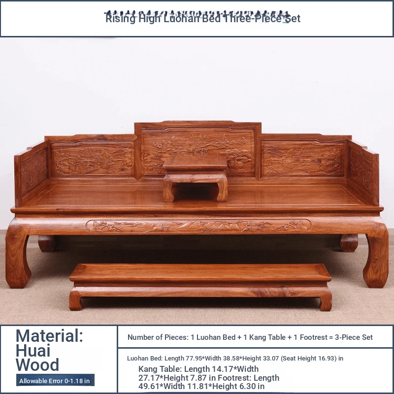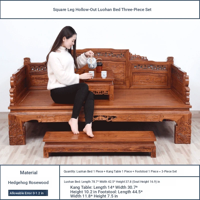 Huali Square Leg Cut Out Luohan Bed Three-Piece Set
