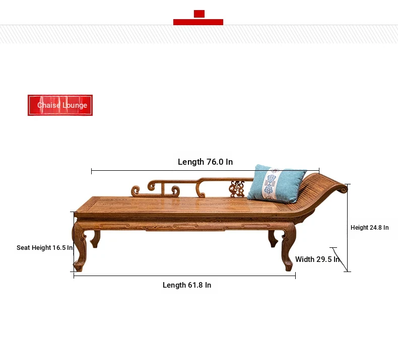 New Chinese style chaise longue bed (with cushion on the right side of the head)