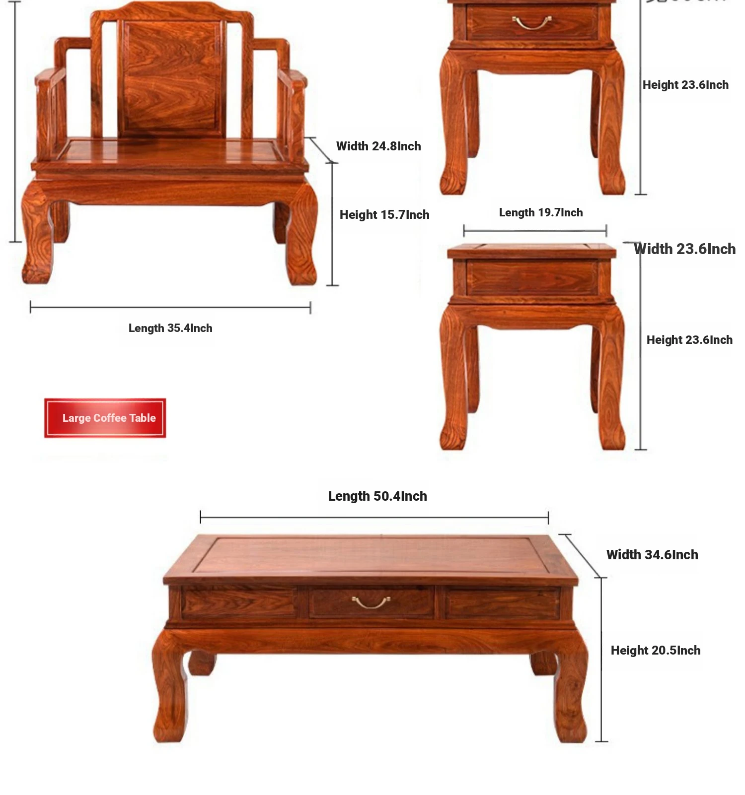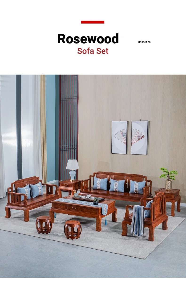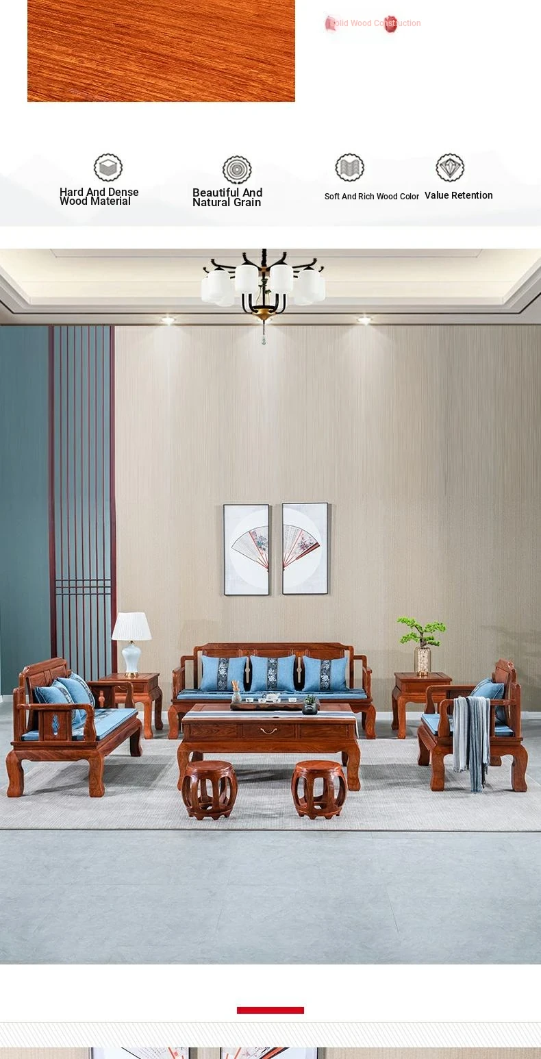 Xianmingyuan Rosewood Furniture: Premium African Padauk Large Chinese Style Sofa for Living Room - Solid Wood, Spacious Three-Seater for Big Homes