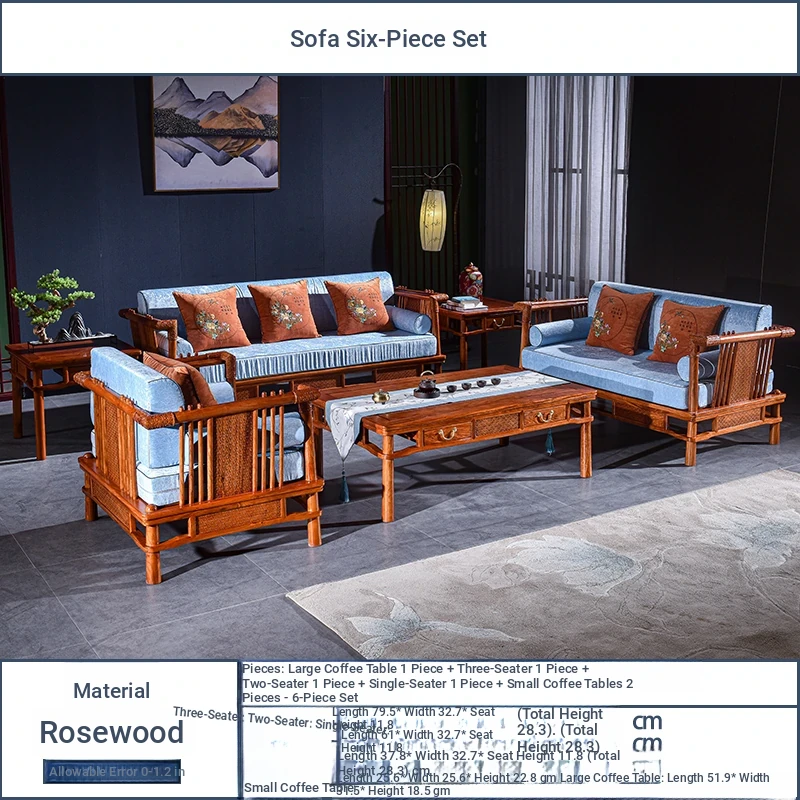 Six-piece rosewood sofa set (with cushion)(Six-piece rosewood sofa set (with cushion))