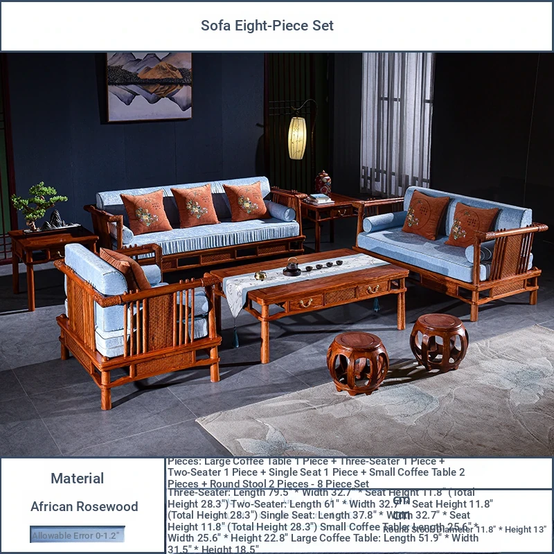 Rosewood sofa eight-piece set (with cushion)(Rosewood sofa eight-piece set (with cushion))