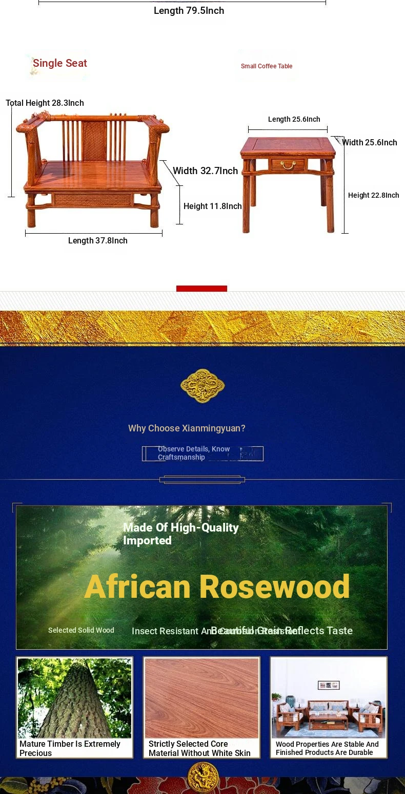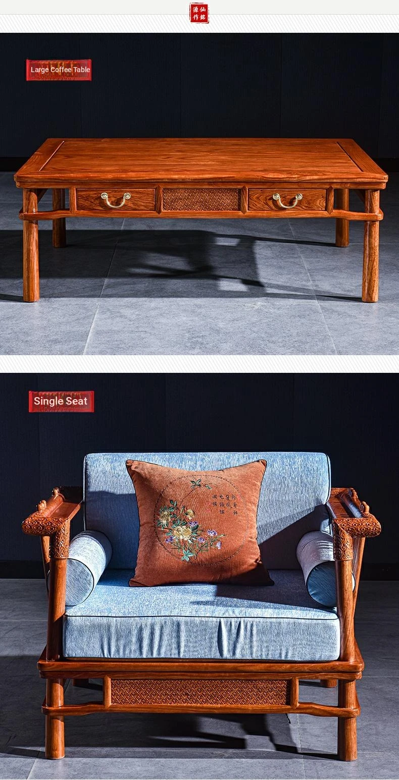 Xianmingyuan Solid Wood Sofa Cushion - New Chinese Style Rosewood Sofa Set for Living Room, Elegant and Durable Furniture Combination