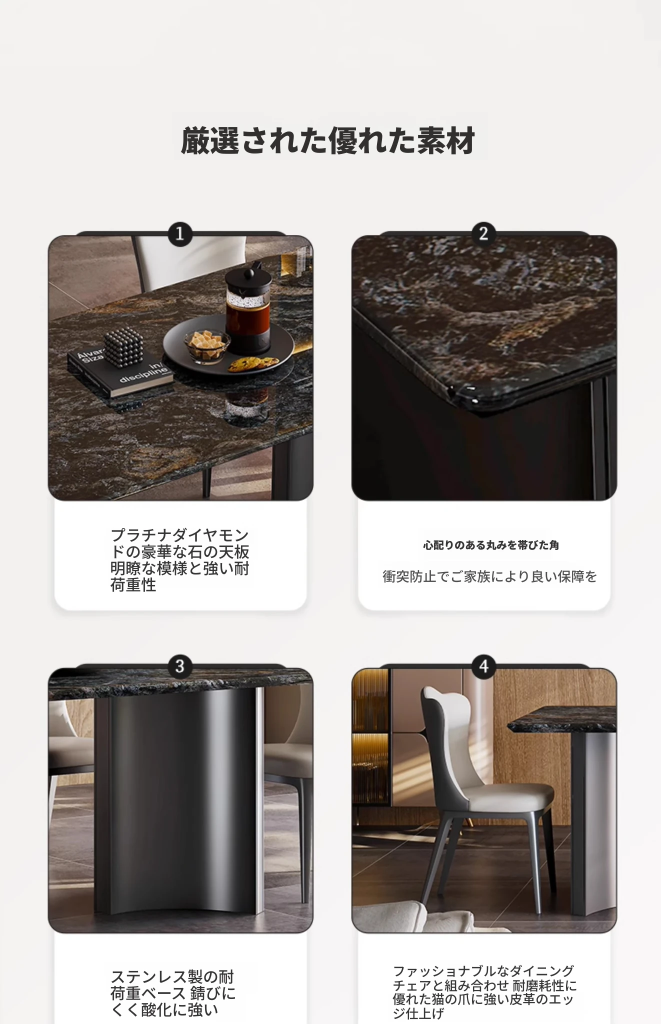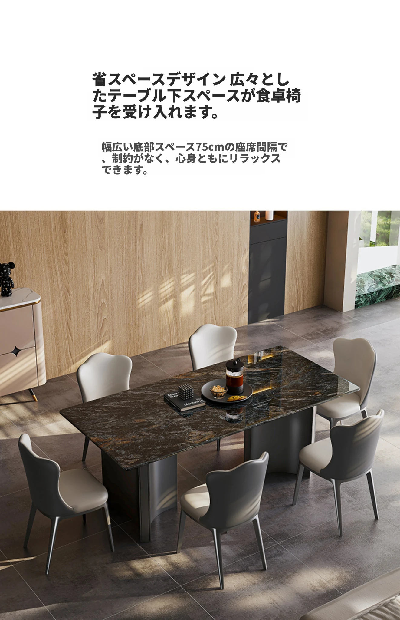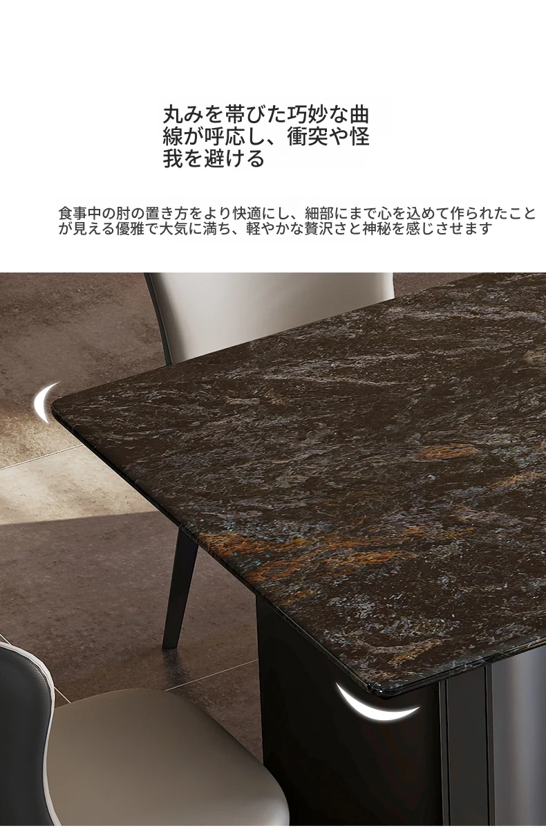 2025年新作!天然プラチナダイヤモンド仕上げの贅沢なイタリアンミニマリズムテーブル。高級感あふれる長方形大理石ダイニングテーブル&チェアセットで、洗練された空間を演出します!