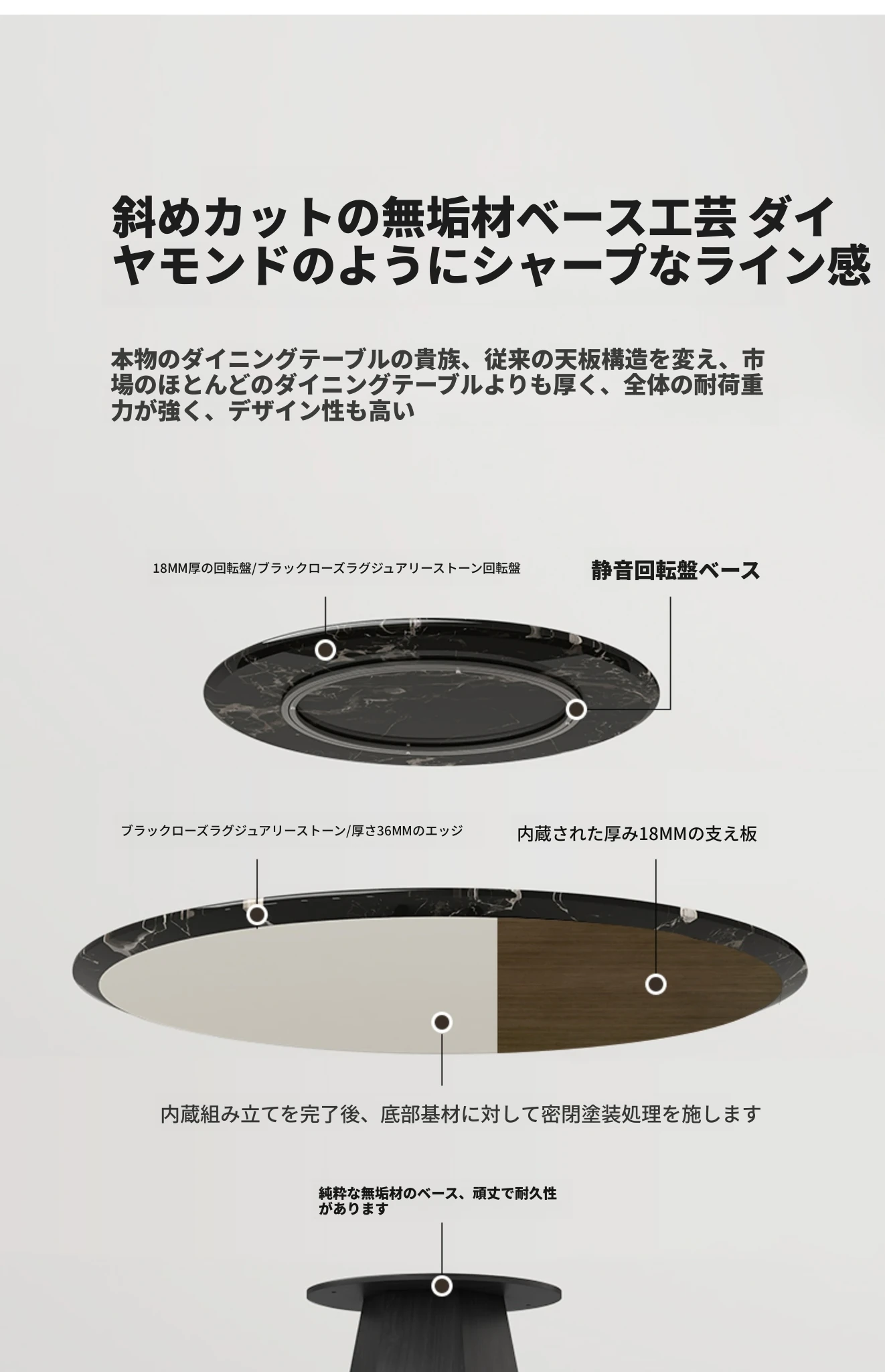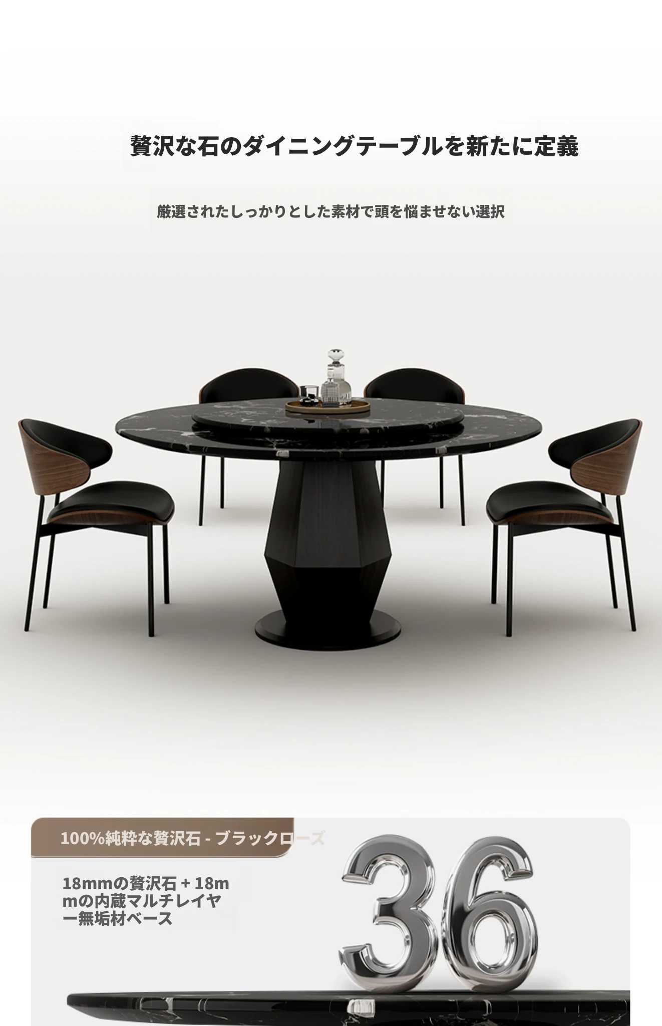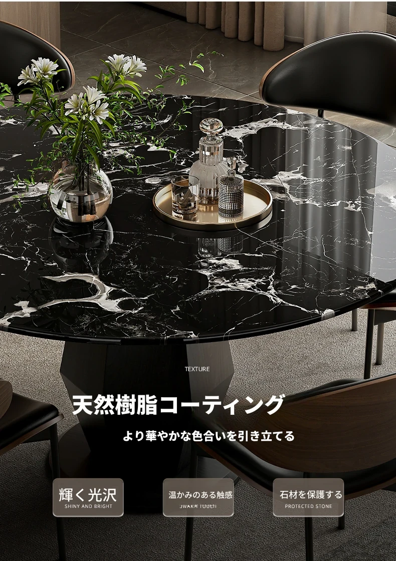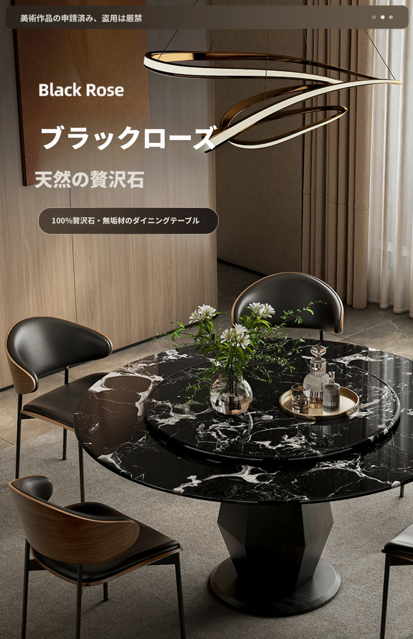 【S級】ブラックローズ・天然ラグジュアリーストーン円形ダイニングテーブル