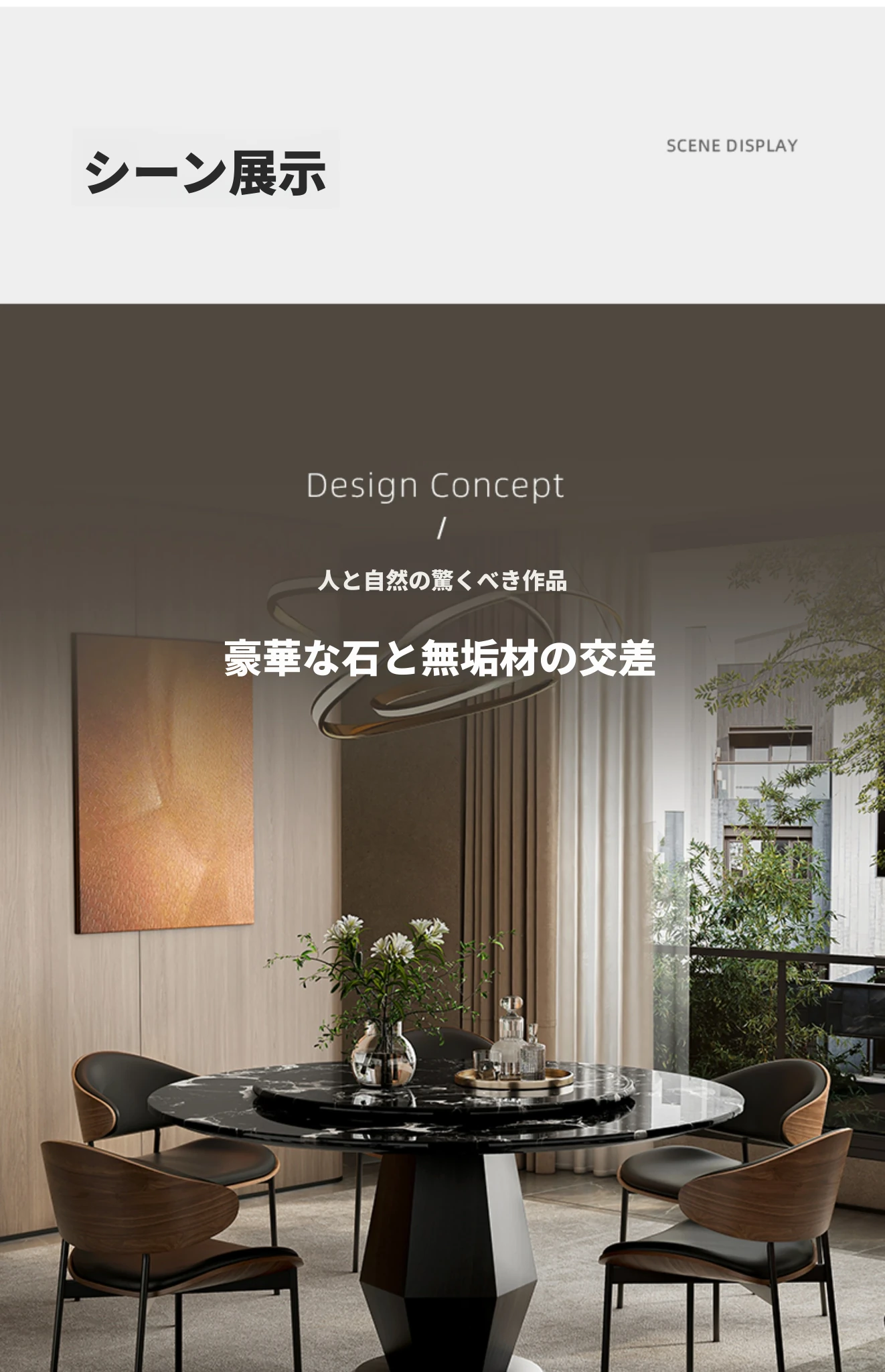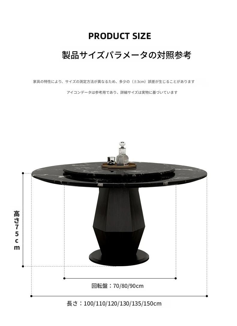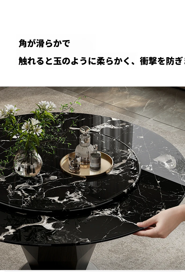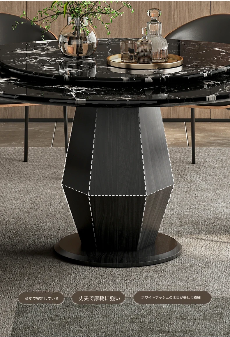 【S級】ブラックローズ・天然ラグジュアリーストーン円形ダイニングテーブル