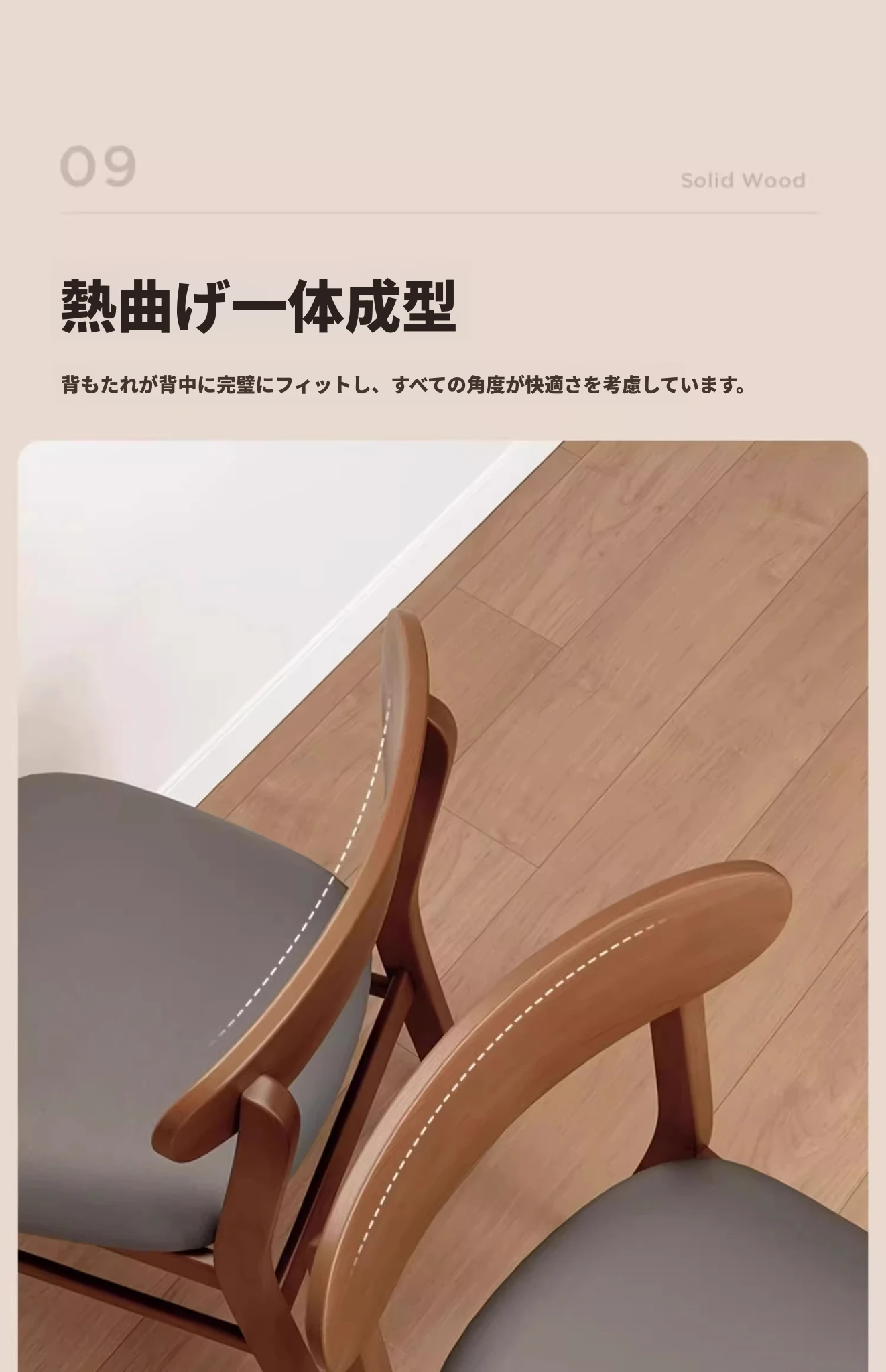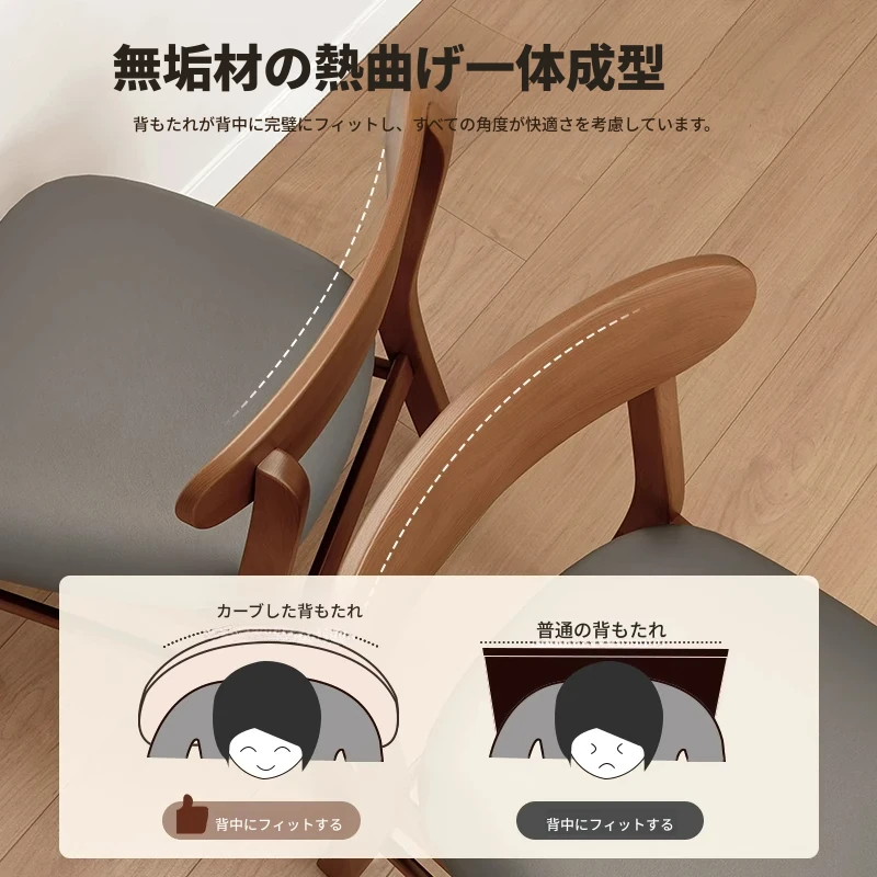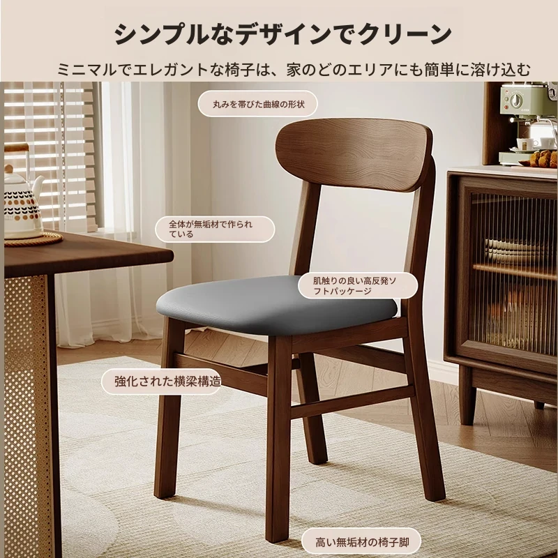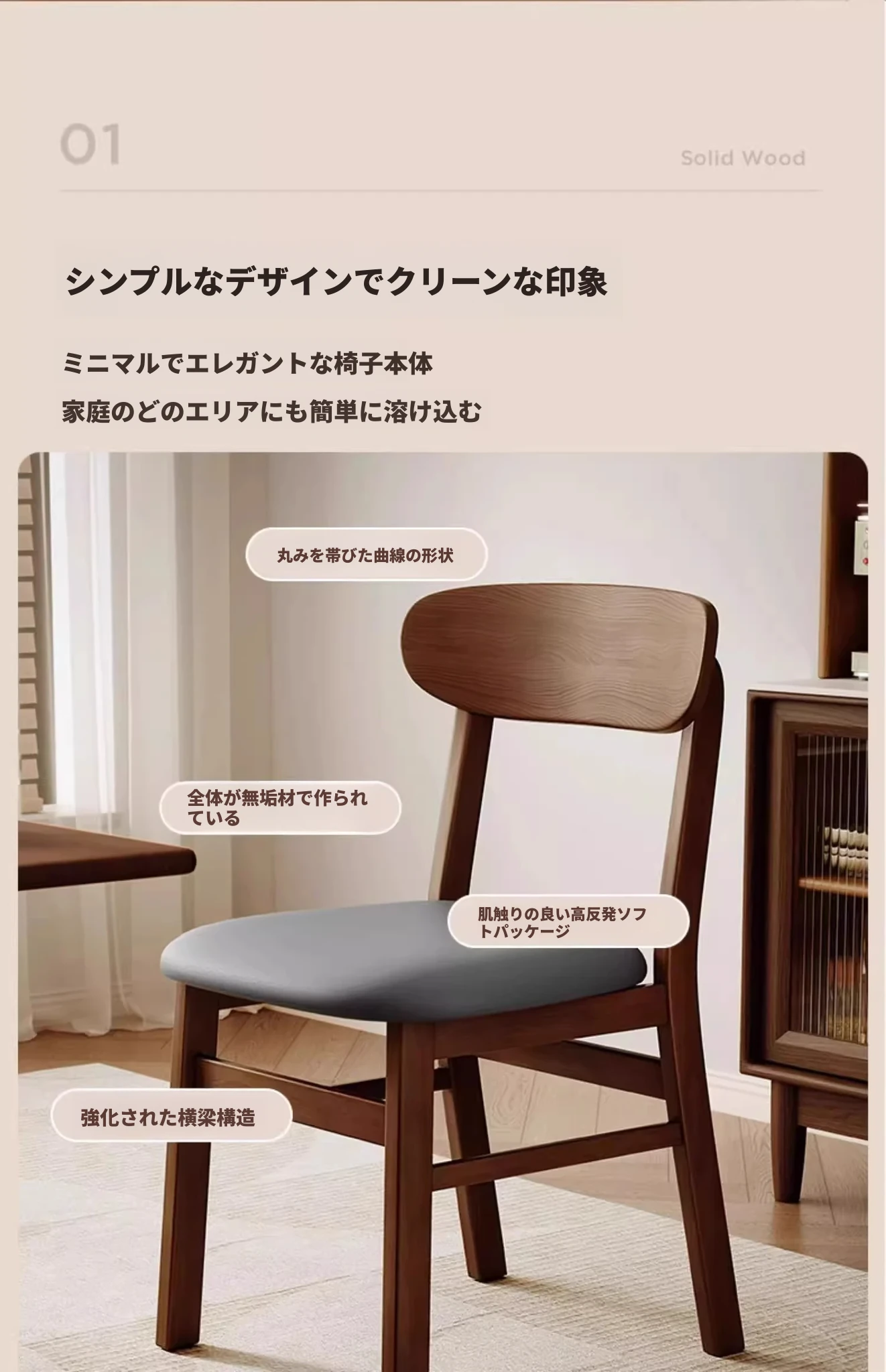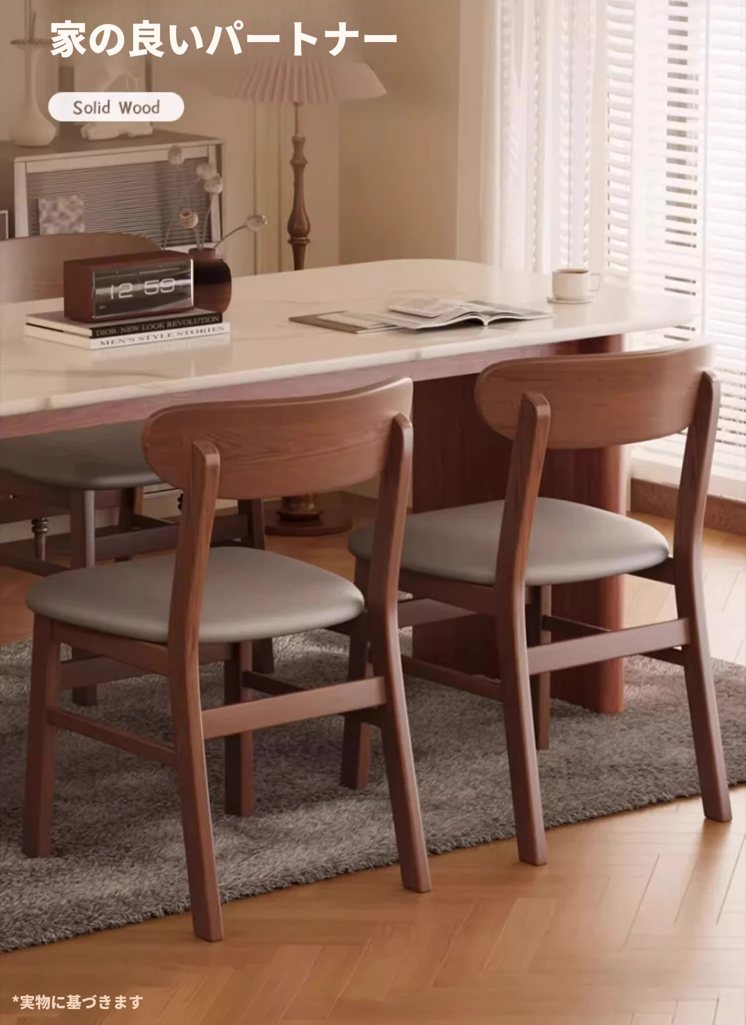 2025年新作!高級感あふれる無垢材レストランチェア。家庭用ダイニングテーブルにぴったりな柔らかい背もたれ付き。オフィスでの学習やリラックスタイムにも最適なデザイン!