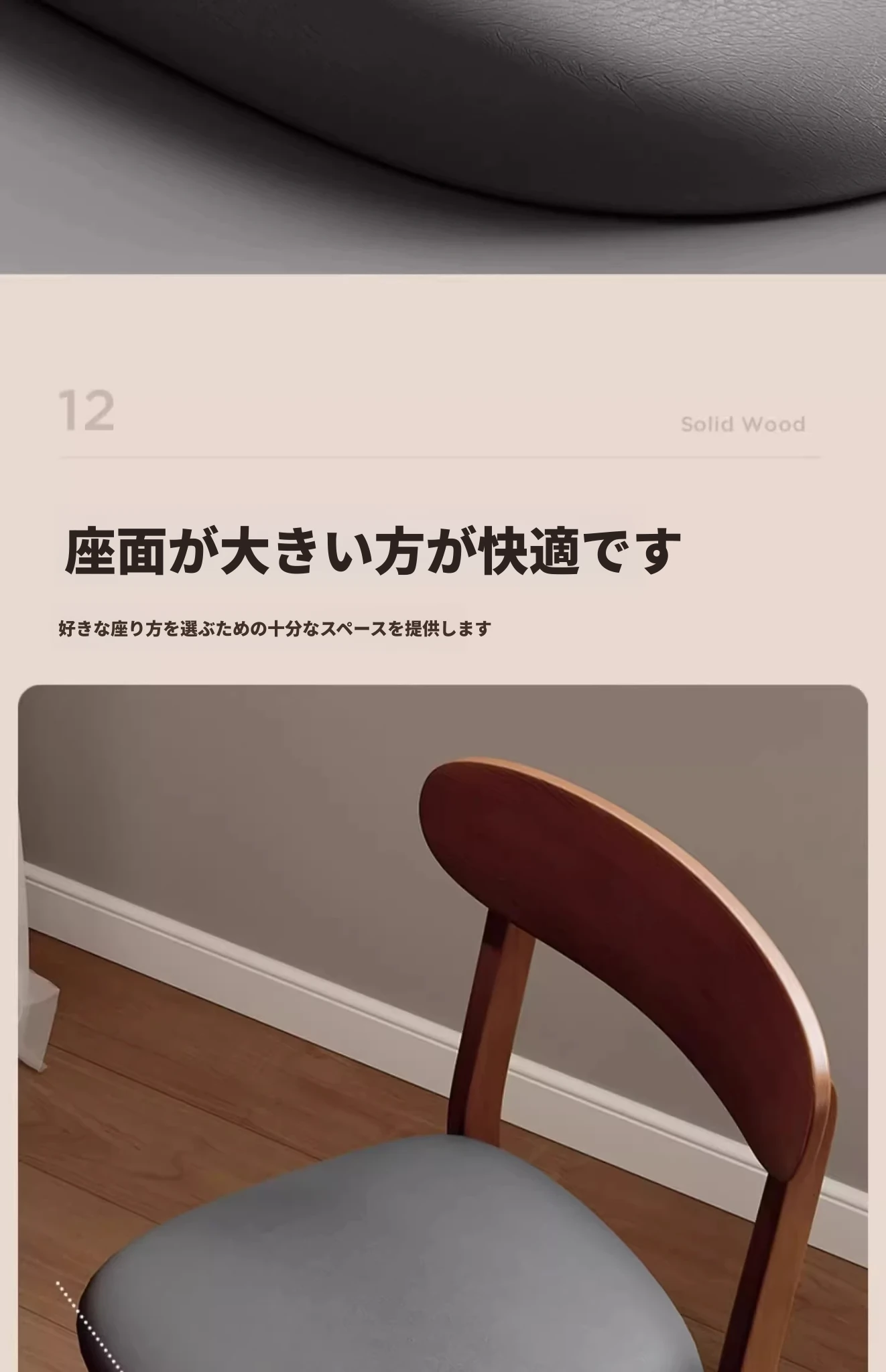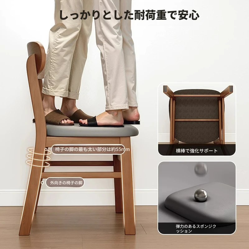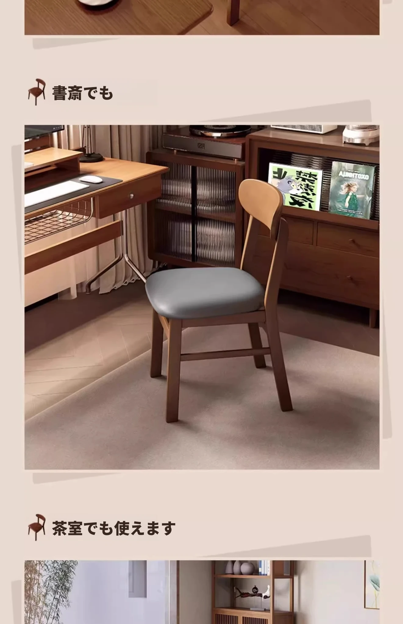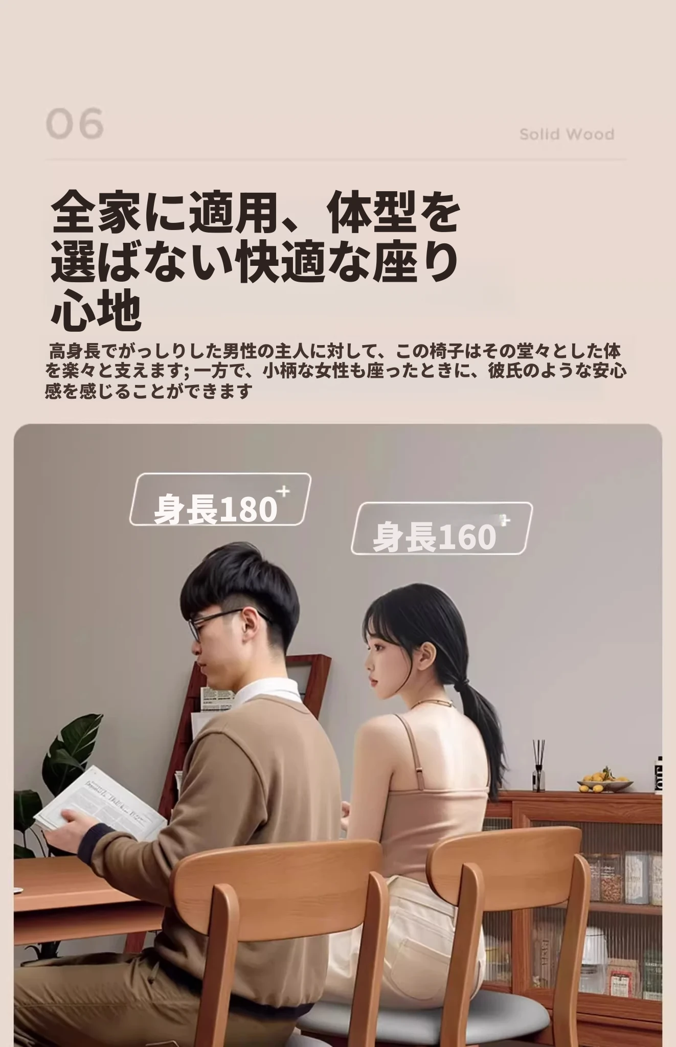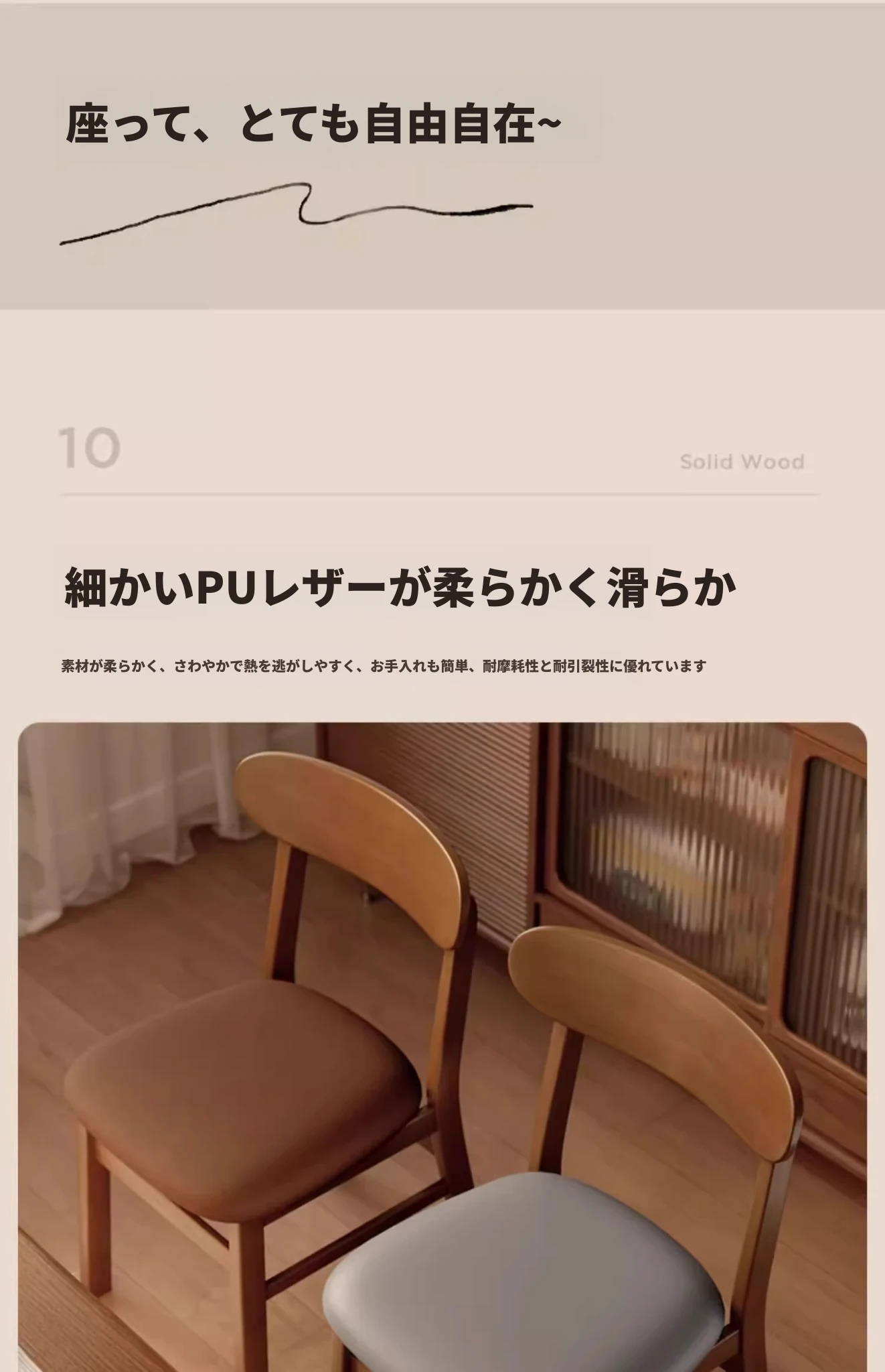 2025年新作!高級感あふれる無垢材レストランチェア。家庭用ダイニングテーブルにぴったりな柔らかい背もたれ付き。オフィスでの学習やリラックスタイムにも最適なデザイン!