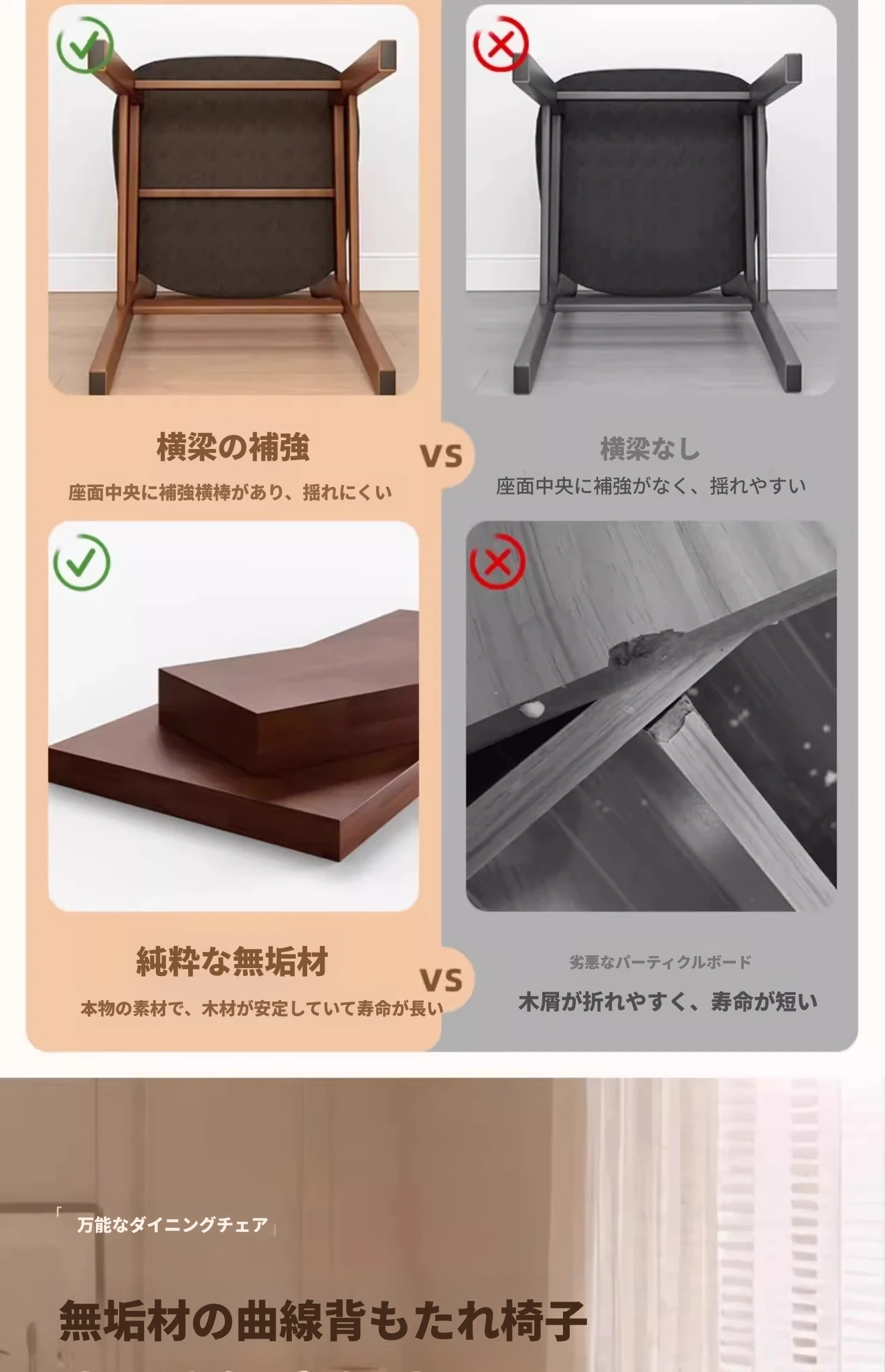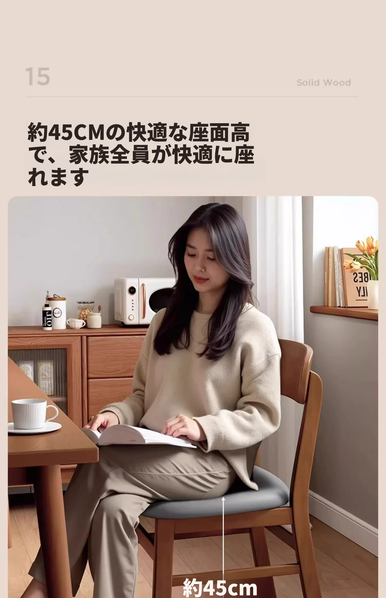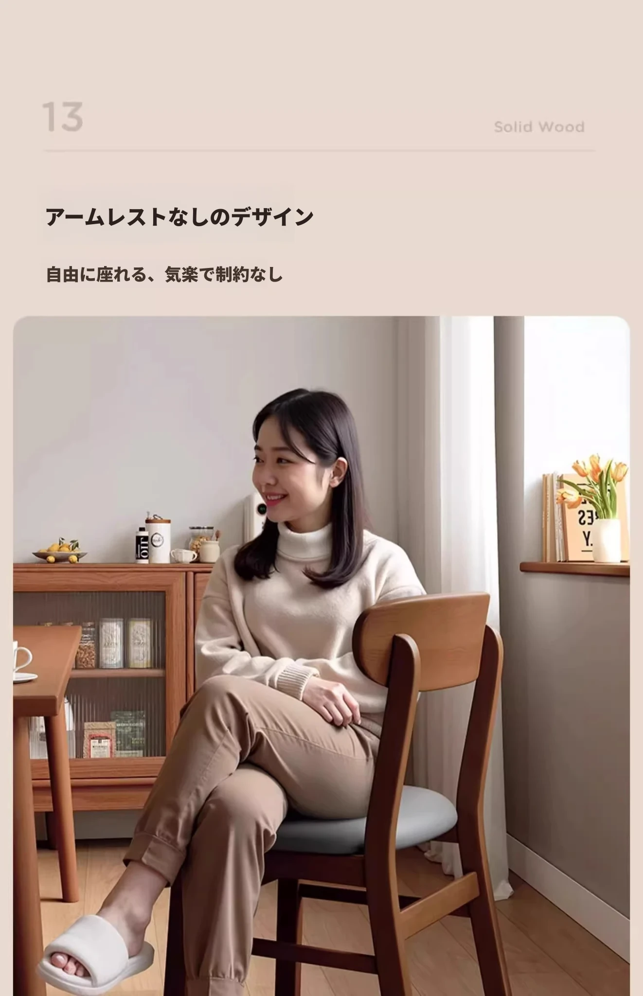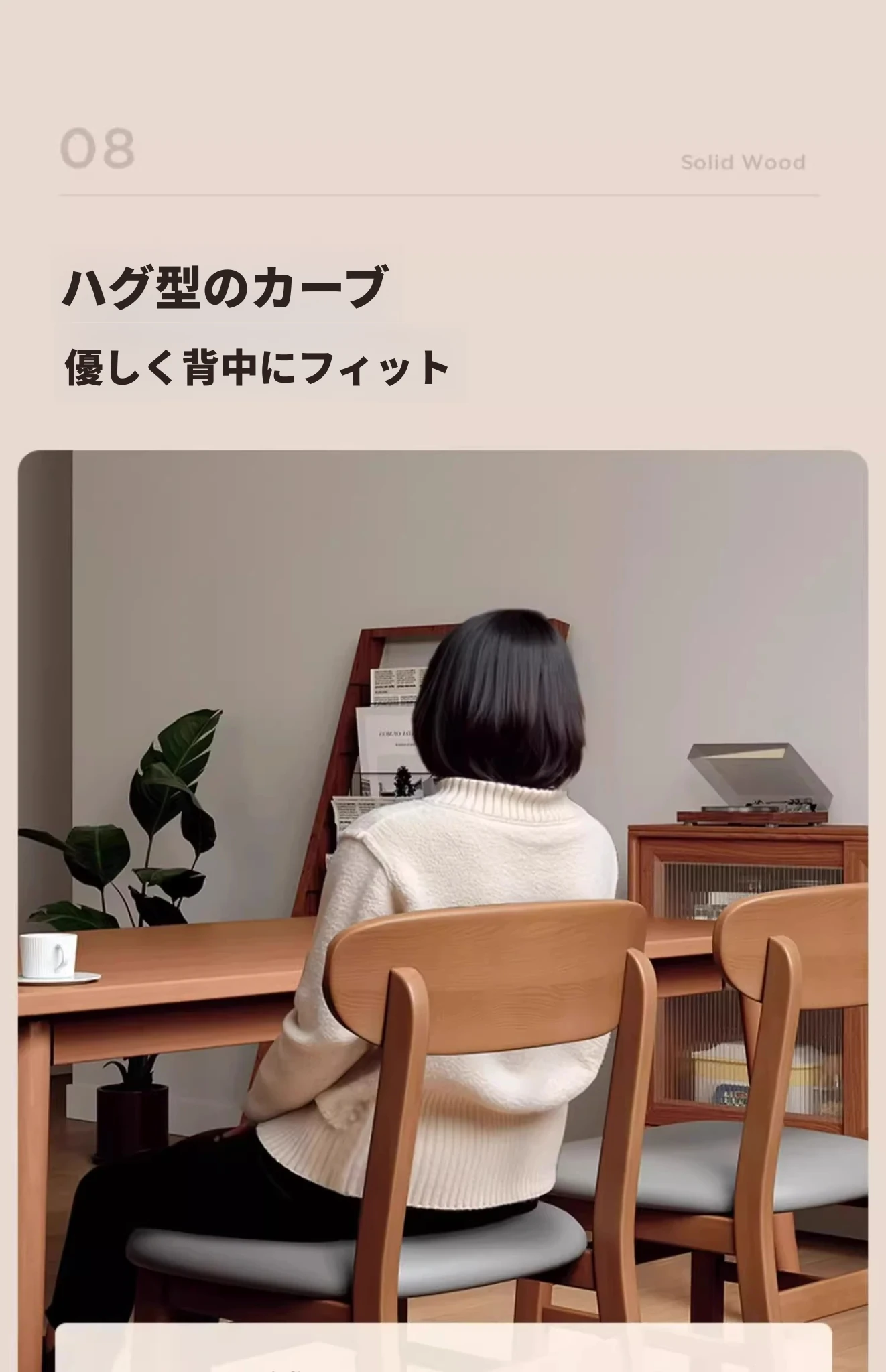 2025年新作!高級感あふれる無垢材レストランチェア。家庭用ダイニングテーブルにぴったりな柔らかい背もたれ付き。オフィスでの学習やリラックスタイムにも最適なデザイン!