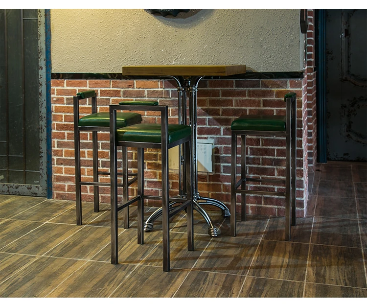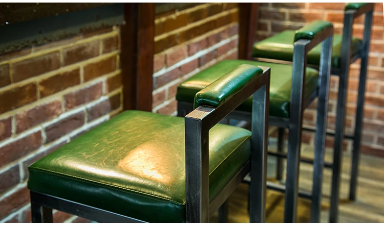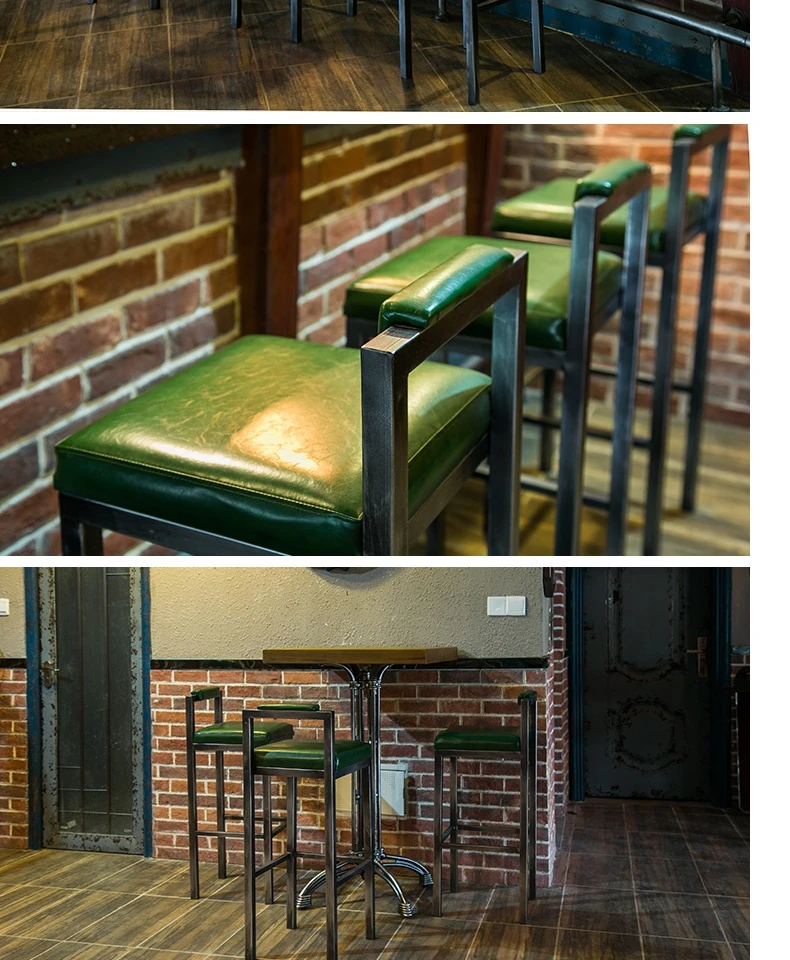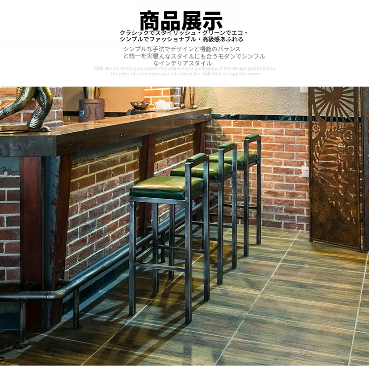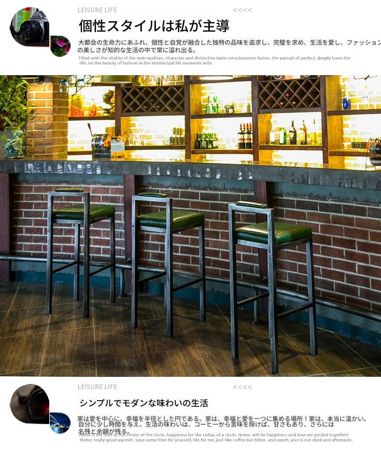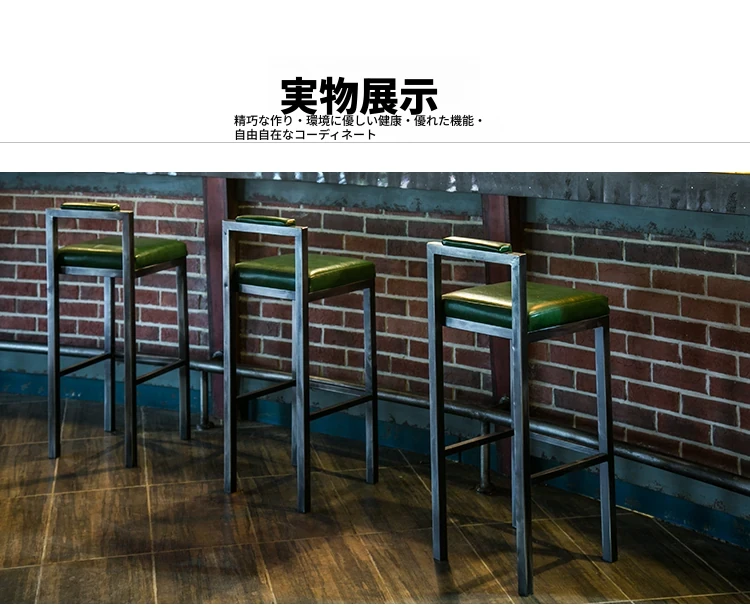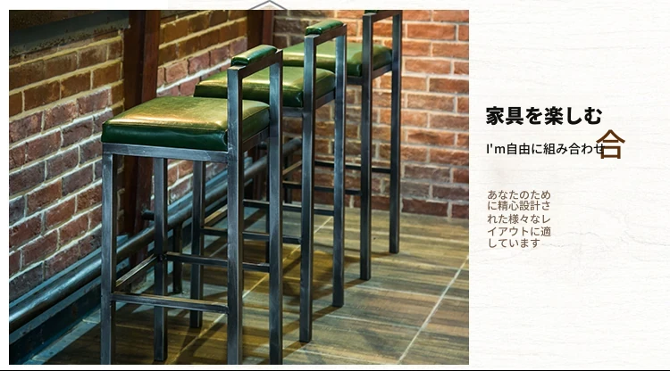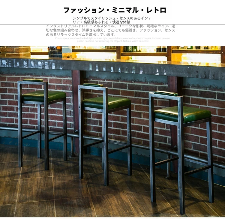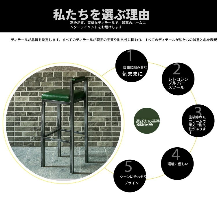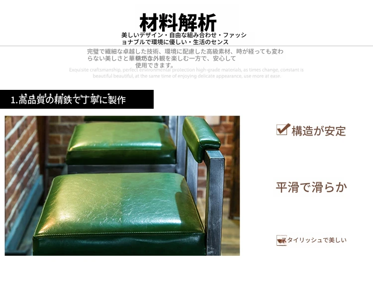 アメリカンスタイルのアイアンバースツール - シンプルなレザー製クッション付き背もたれ、高さ調整可能なカフェ&バー用スツール。インダストリアルデザインで、どんな空間にもマッチ!おしゃれで快適なひとときをお楽しみください。