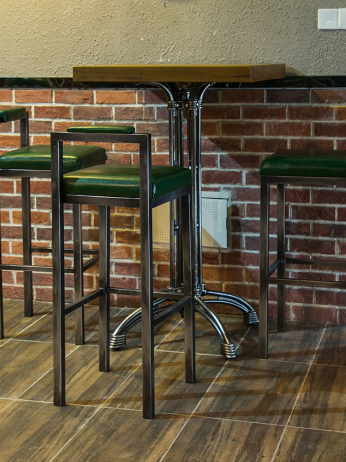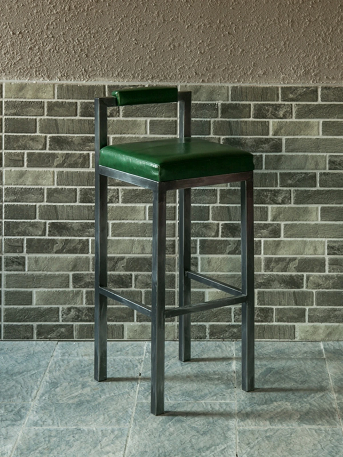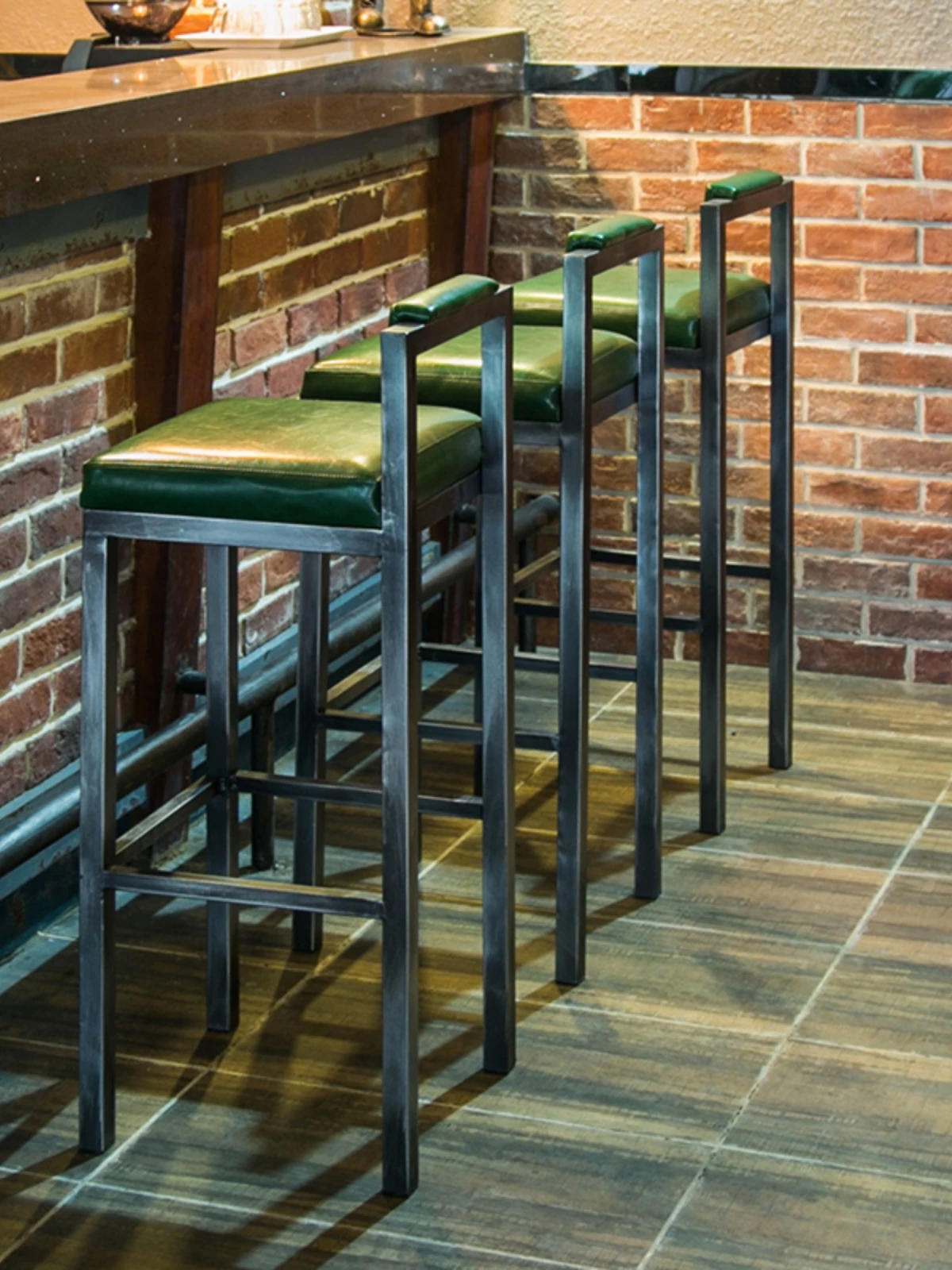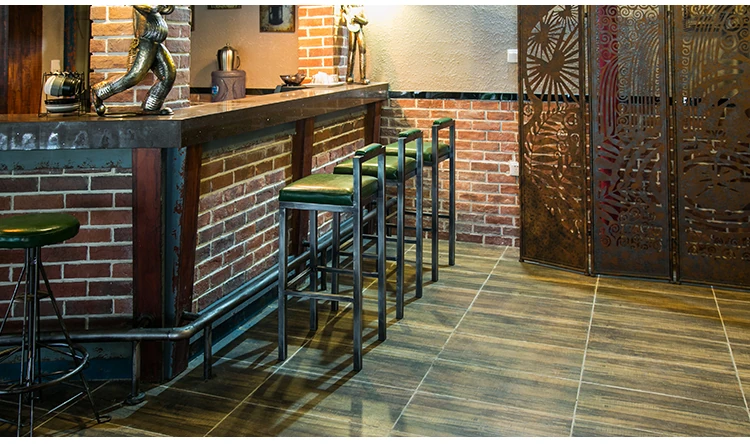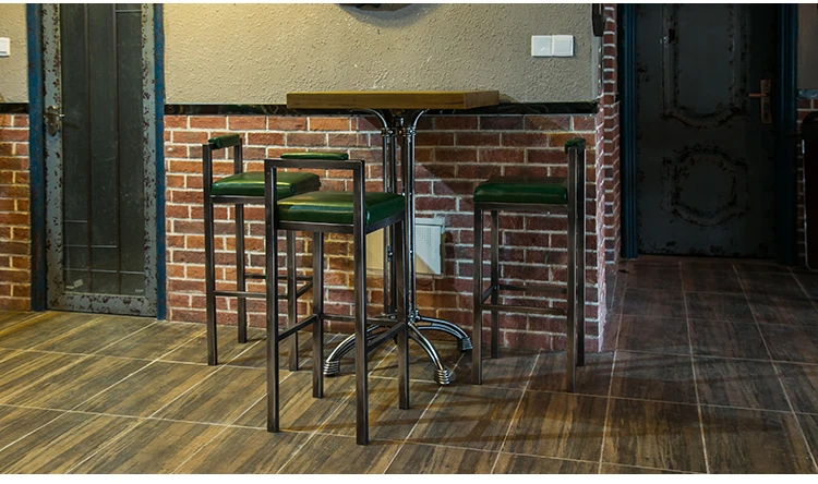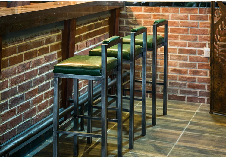 アメリカンスタイルのアイアンバースツール - シンプルなレザー製クッション付き背もたれ、高さ調整可能なカフェ&バー用スツール。インダストリアルデザインで、どんな空間にもマッチ!おしゃれで快適なひとときをお楽しみください。