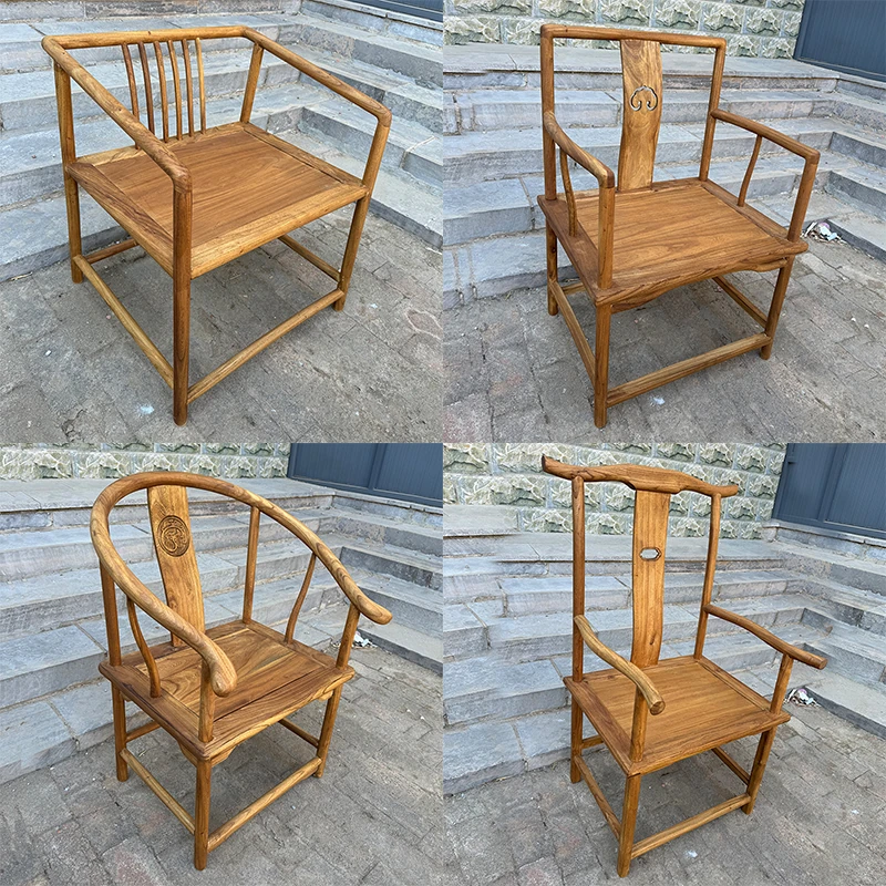 高級感あふれる老榆木製の中式茶椅子と茶卓セット - 本物の無垢材で作られた太師椅子、交椅、レトロなスタイルで、贅沢なひとときを演出します。