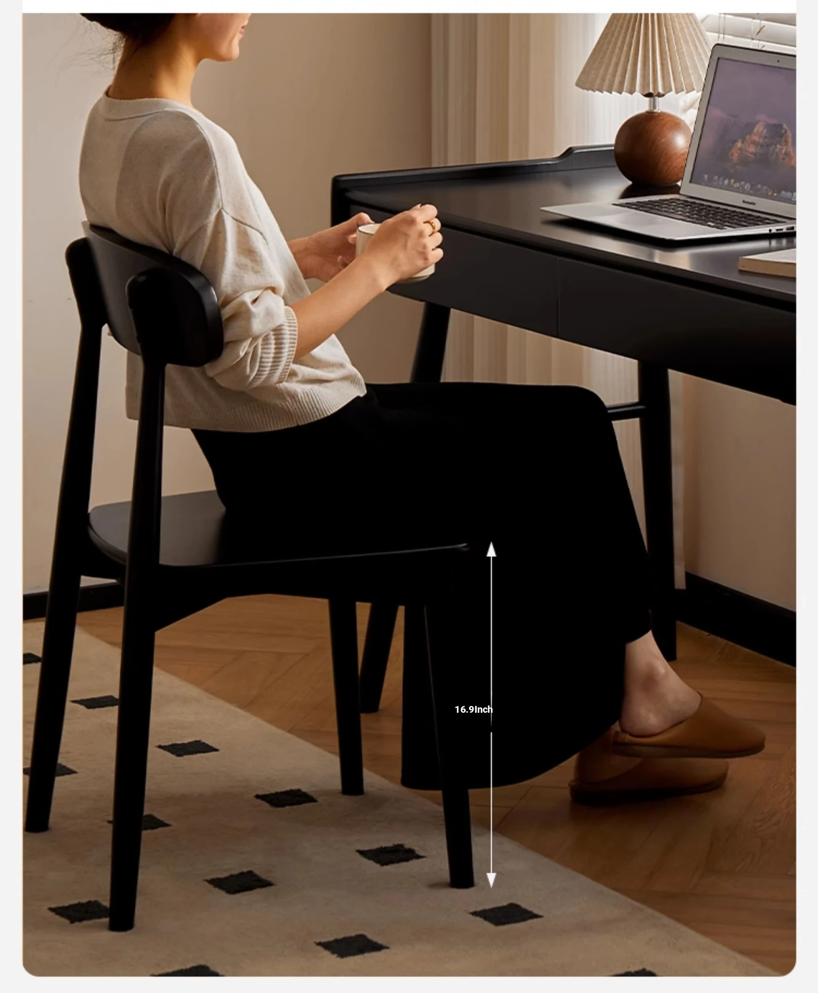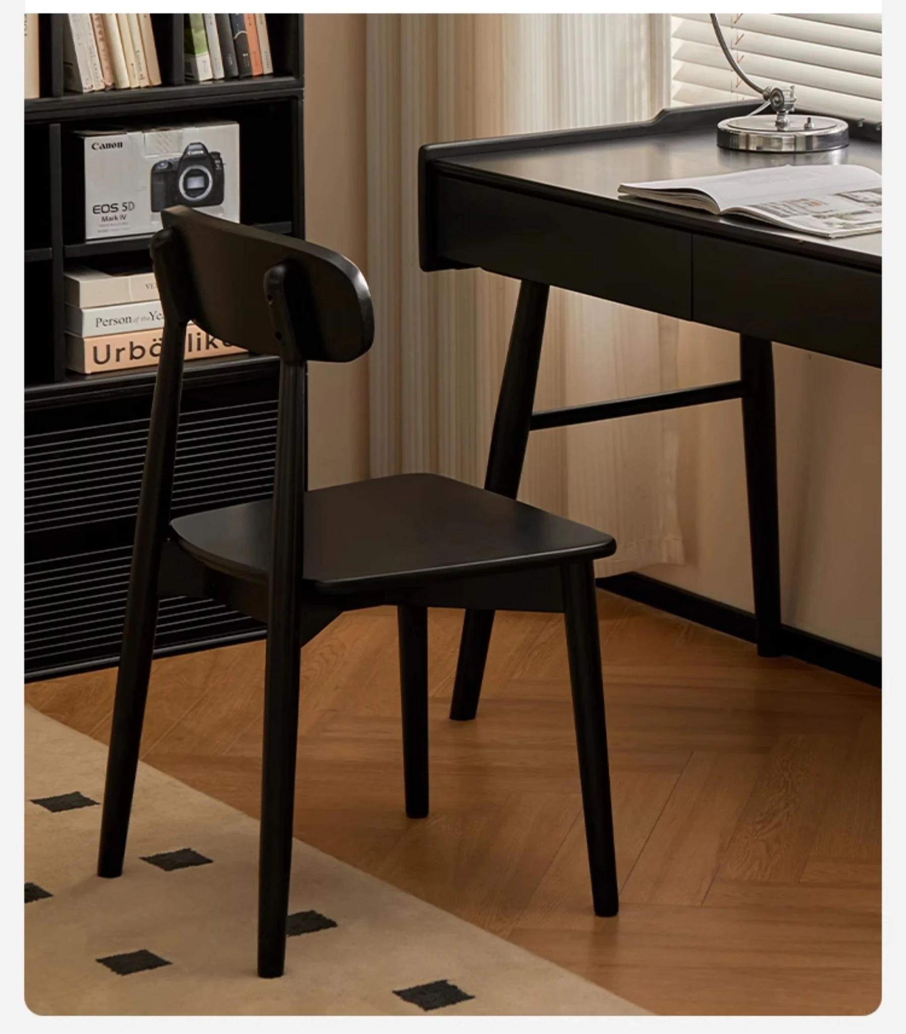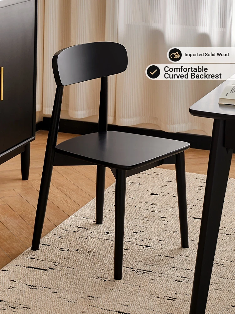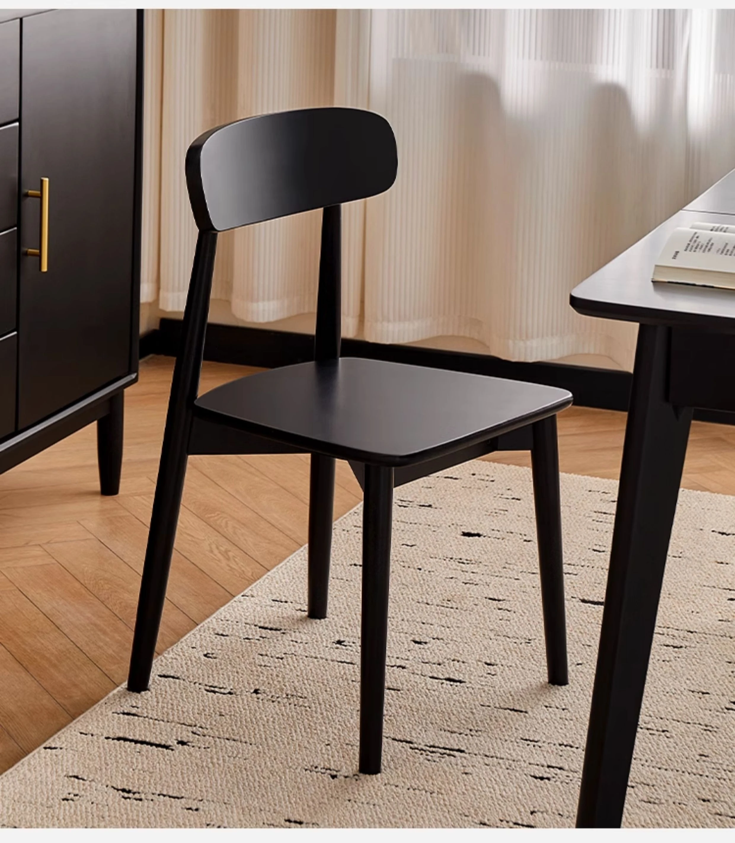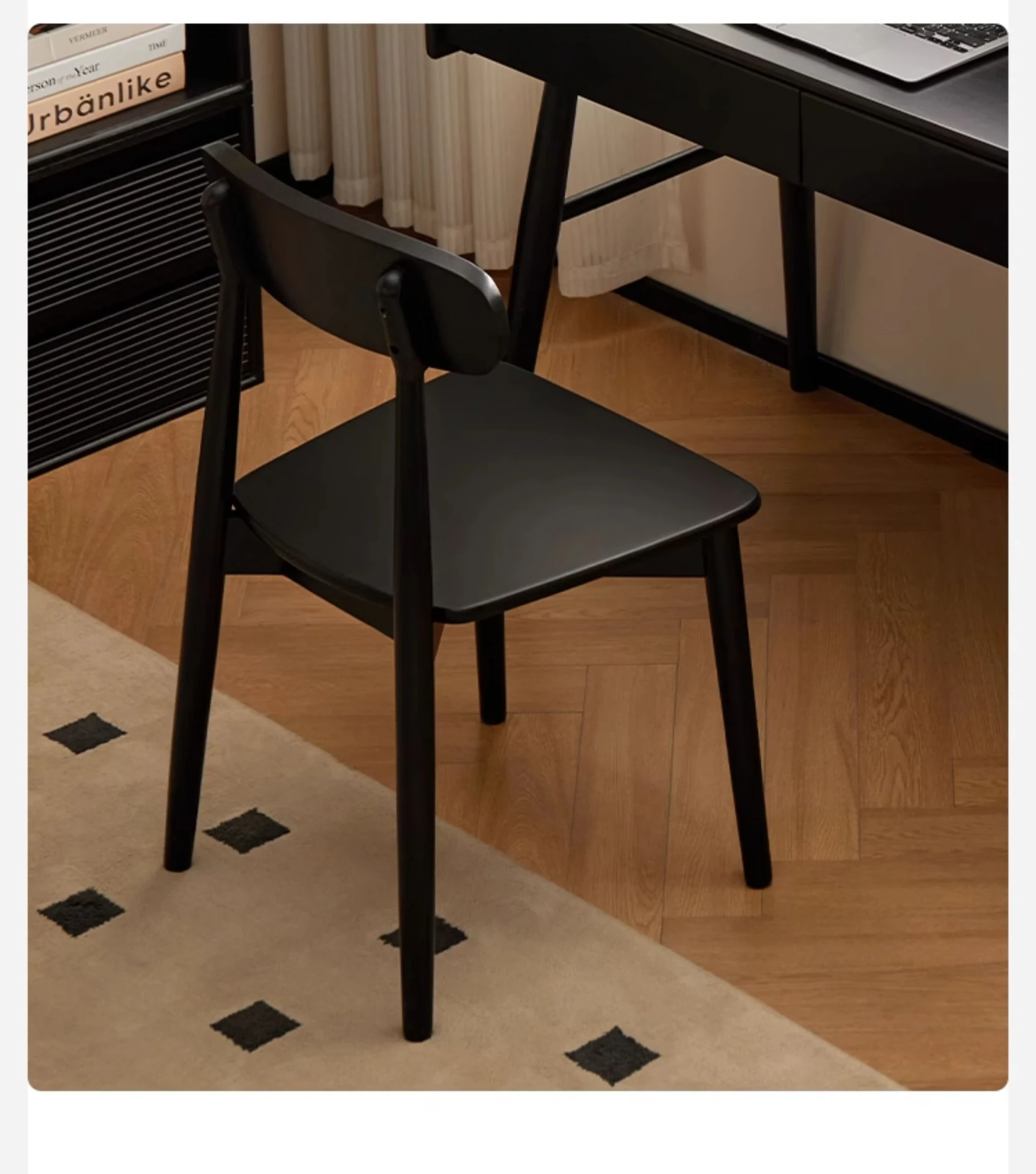 Black Solid Wood Dining Chair - Stylish High Back Design for Home Use, Perfect for Dining Rooms, Living Rooms, Vintage Desks, Makeup Areas, and Casual Seating.