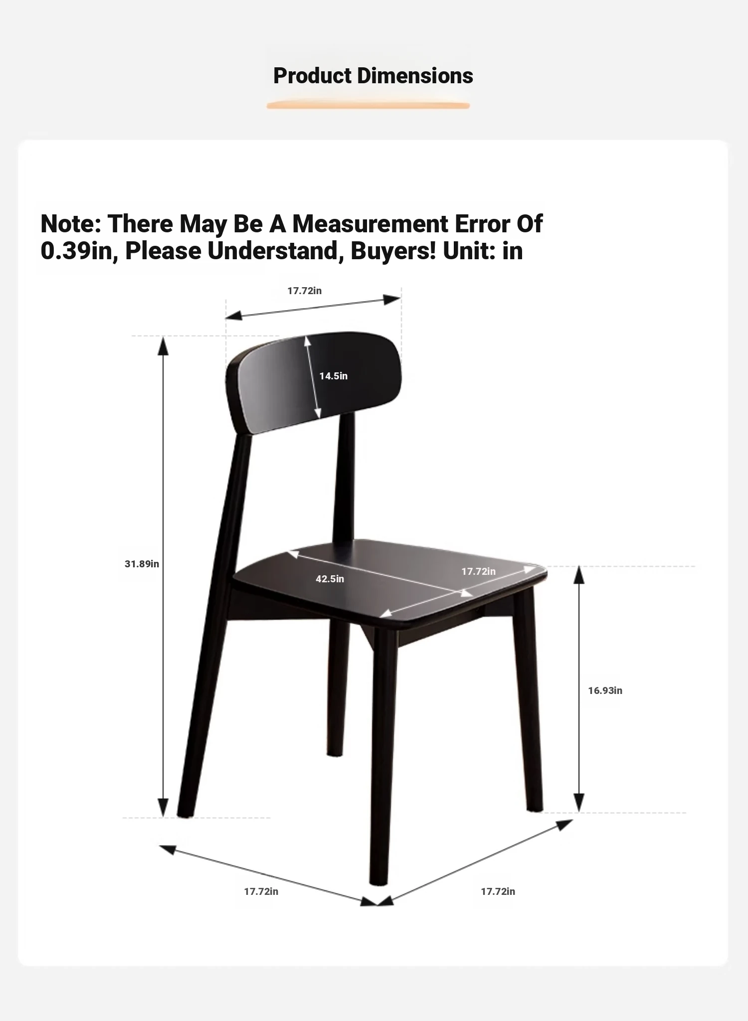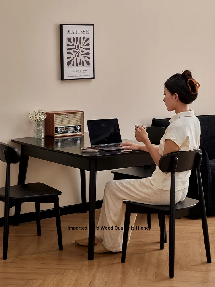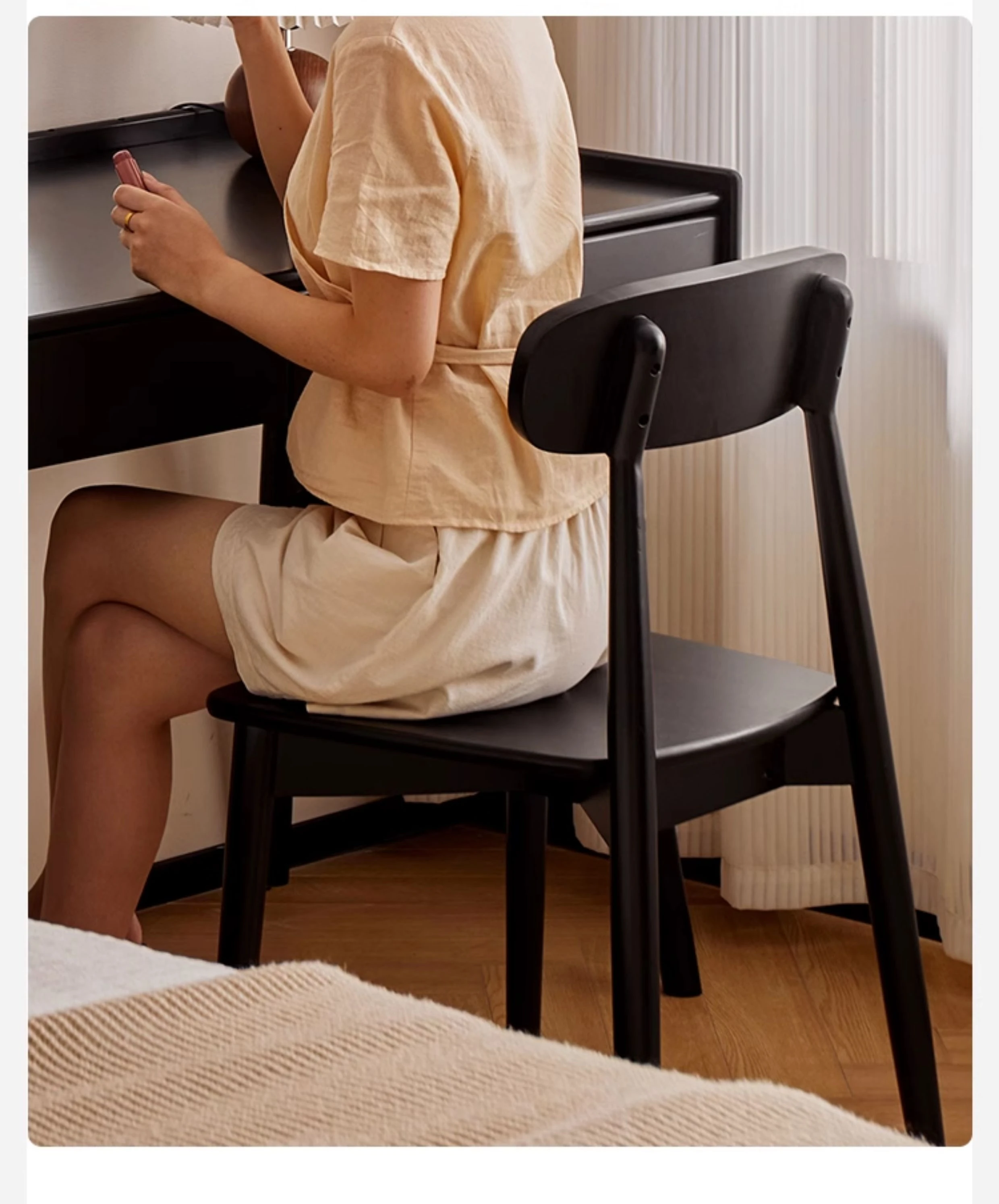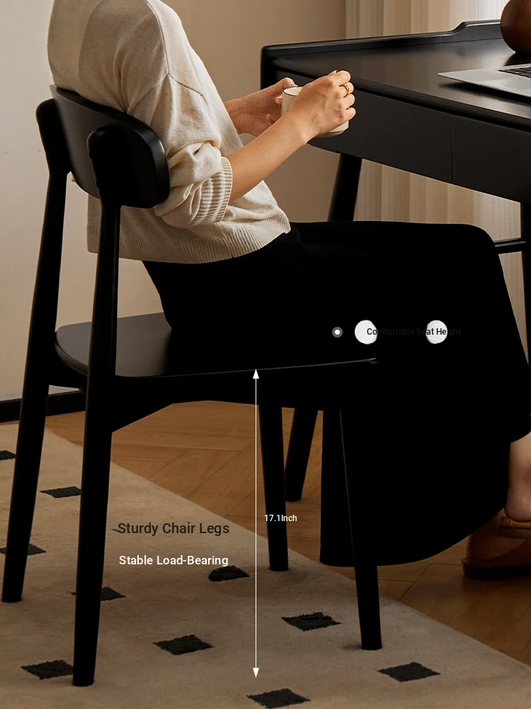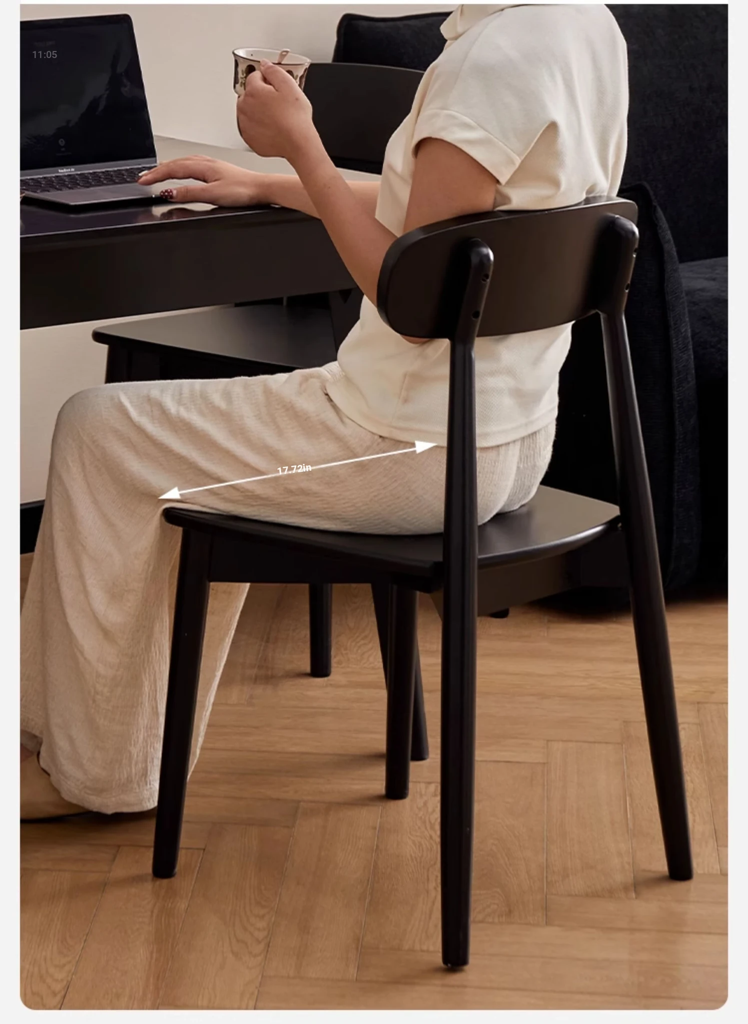 Black Solid Wood Dining Chair - Stylish High Back Design for Home Use, Perfect for Dining Rooms, Living Rooms, Vintage Desks, Makeup Areas, and Casual Seating.