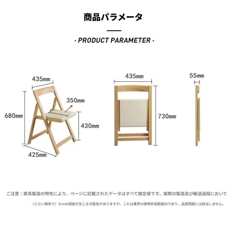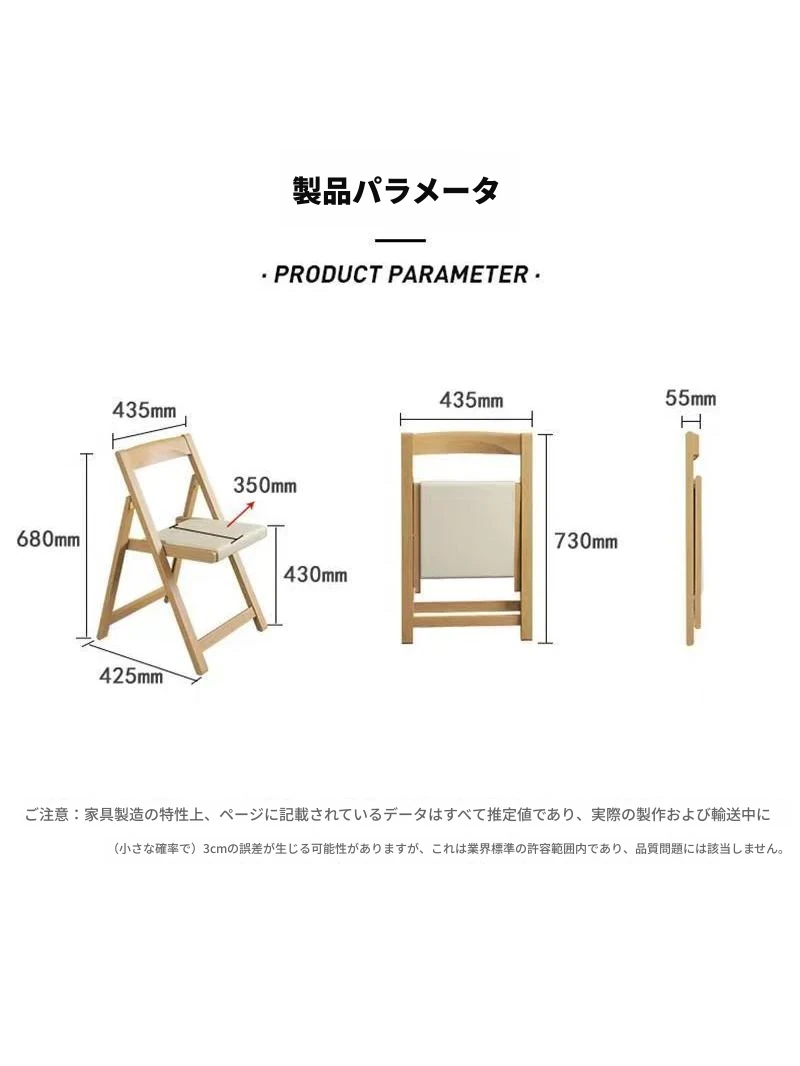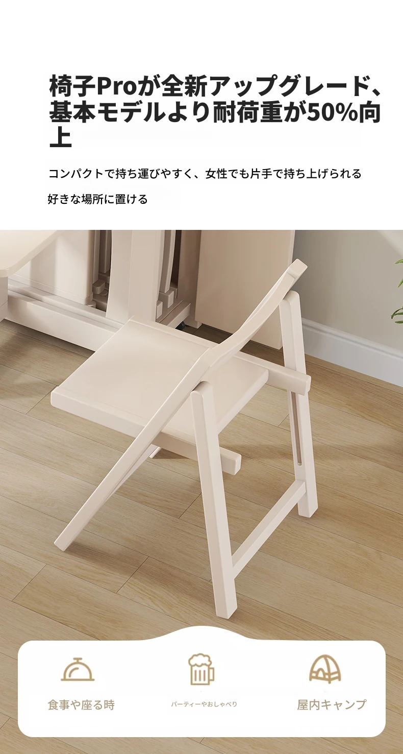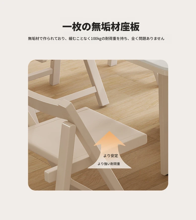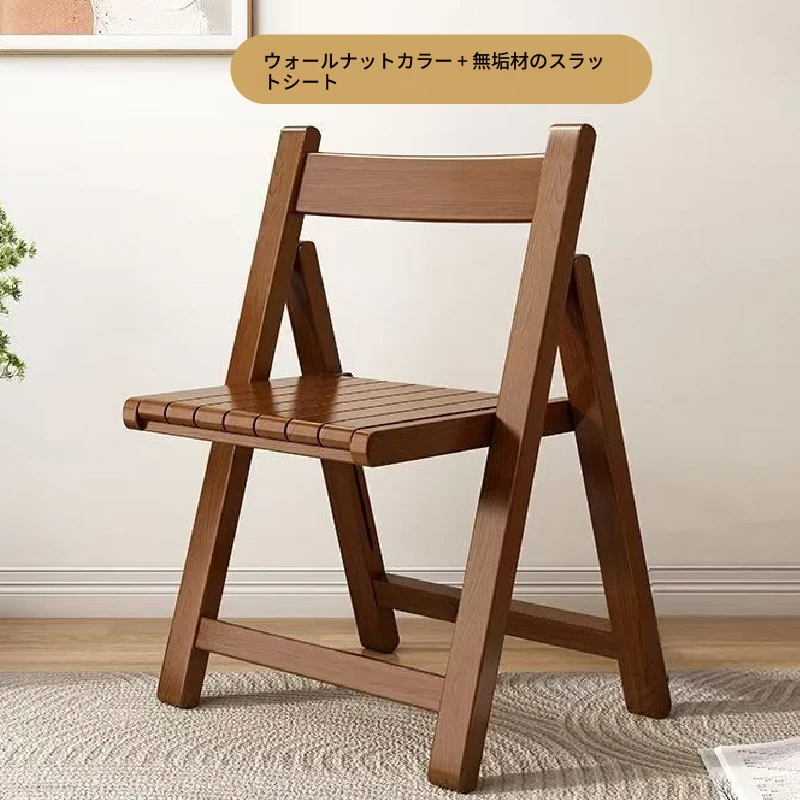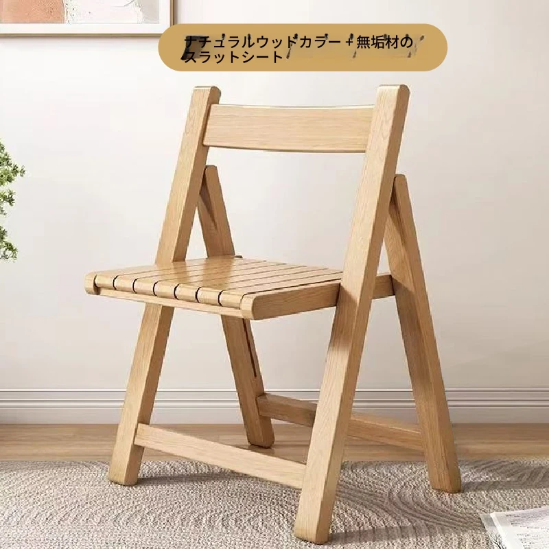 実木製折りたたみ式ダイニングチェア - 小スペースに最適なポータブルデザイン!快適な背もたれ付き、パソコン作業や勉強にもぴったり。アウトドアにも使える北欧スタイルのスタイリッシュな椅子。