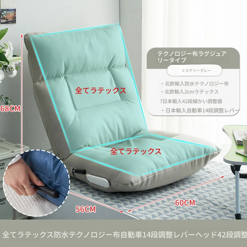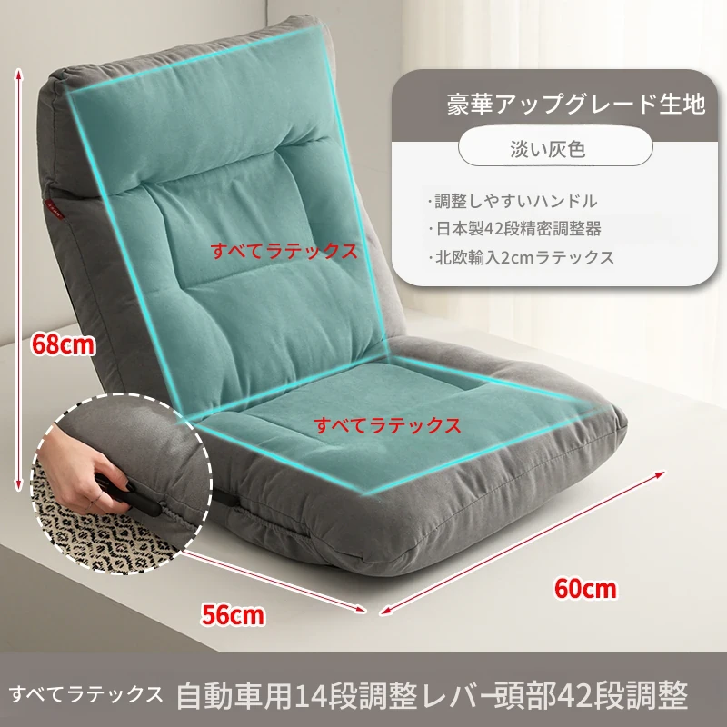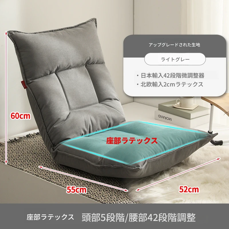 【アームレスト付き-ラグジュアリー】洗濯不要テクノロジー布 薄グレー ヘッド&ウエスト調整可能(全身ラテックス)