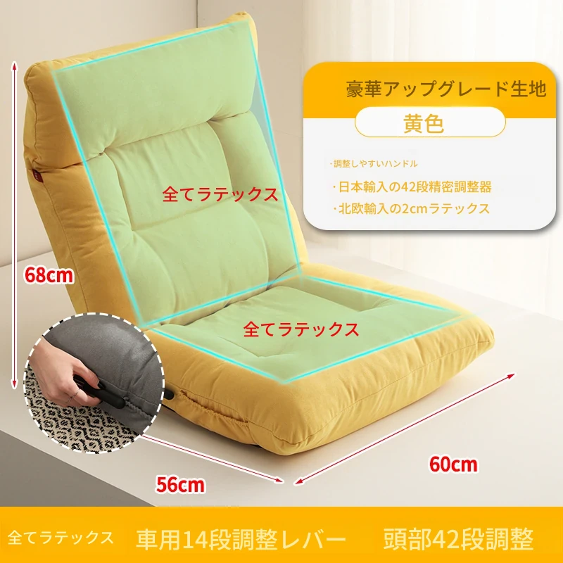 【アームレスト付き-ラグジュアリー】洗濯不要テクノロジー布 花蕊黄 ヘッド&ウエスト調整可能(全身ラテックス)