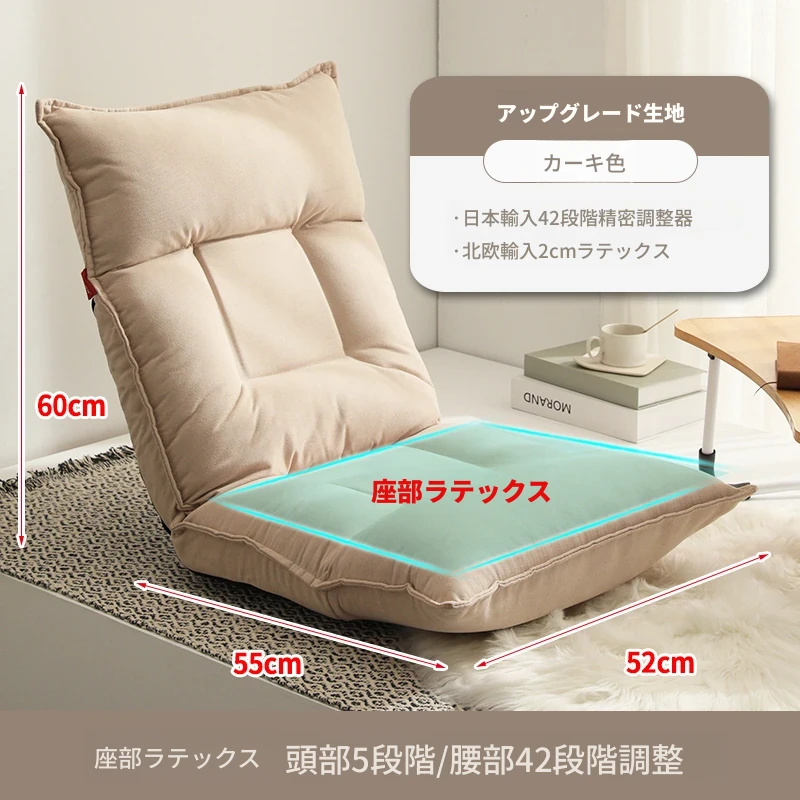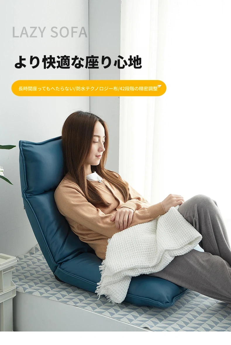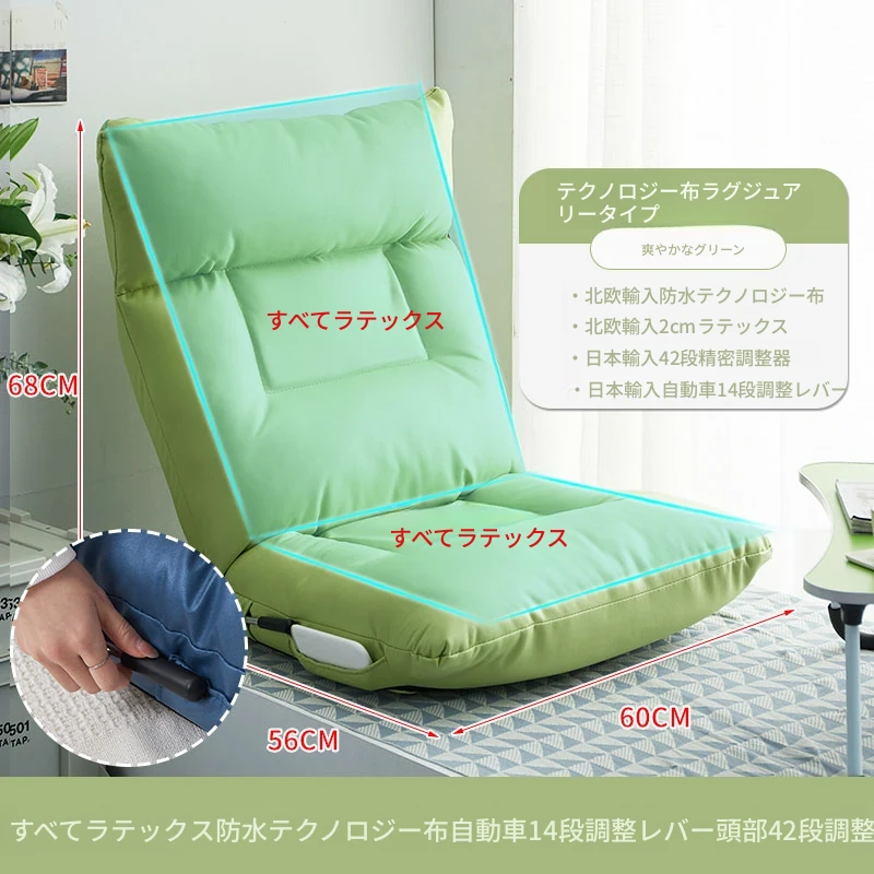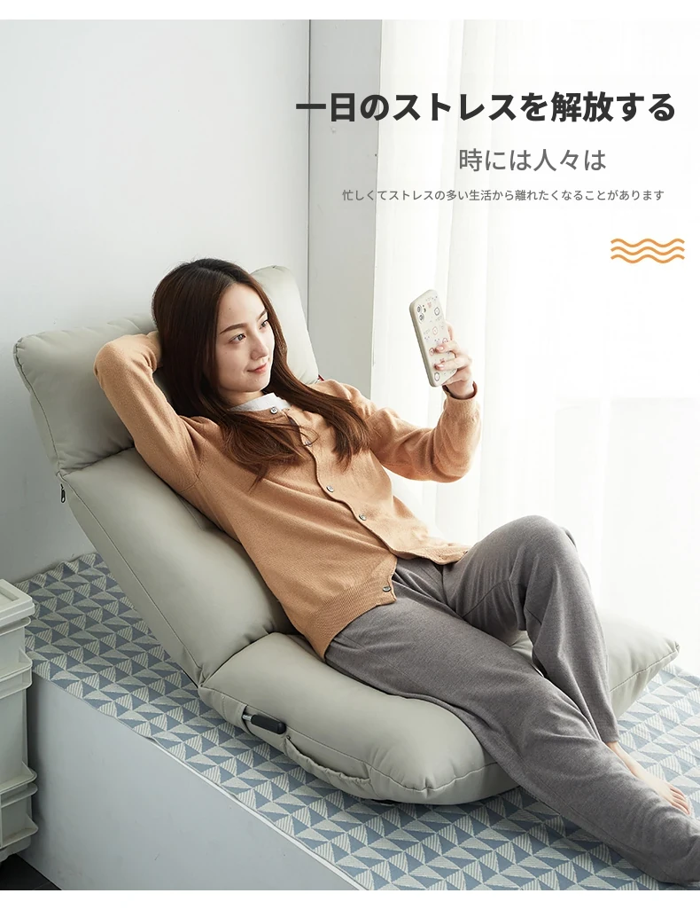リラックスできる一人用ソファ、タタミスタイルのベッドルームにぴったり!女性に最適な折りたたみ式クッション付きバックレストチェア。可愛らしい窓際の座席で、快適なひとときを楽しんで!