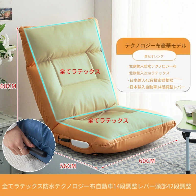 【アームレスト付き-ラグジュアリー】洗濯不要テクノロジー布 貴妃オレンジ ヘッド&ウエスト調整可能(全身ラテックス)