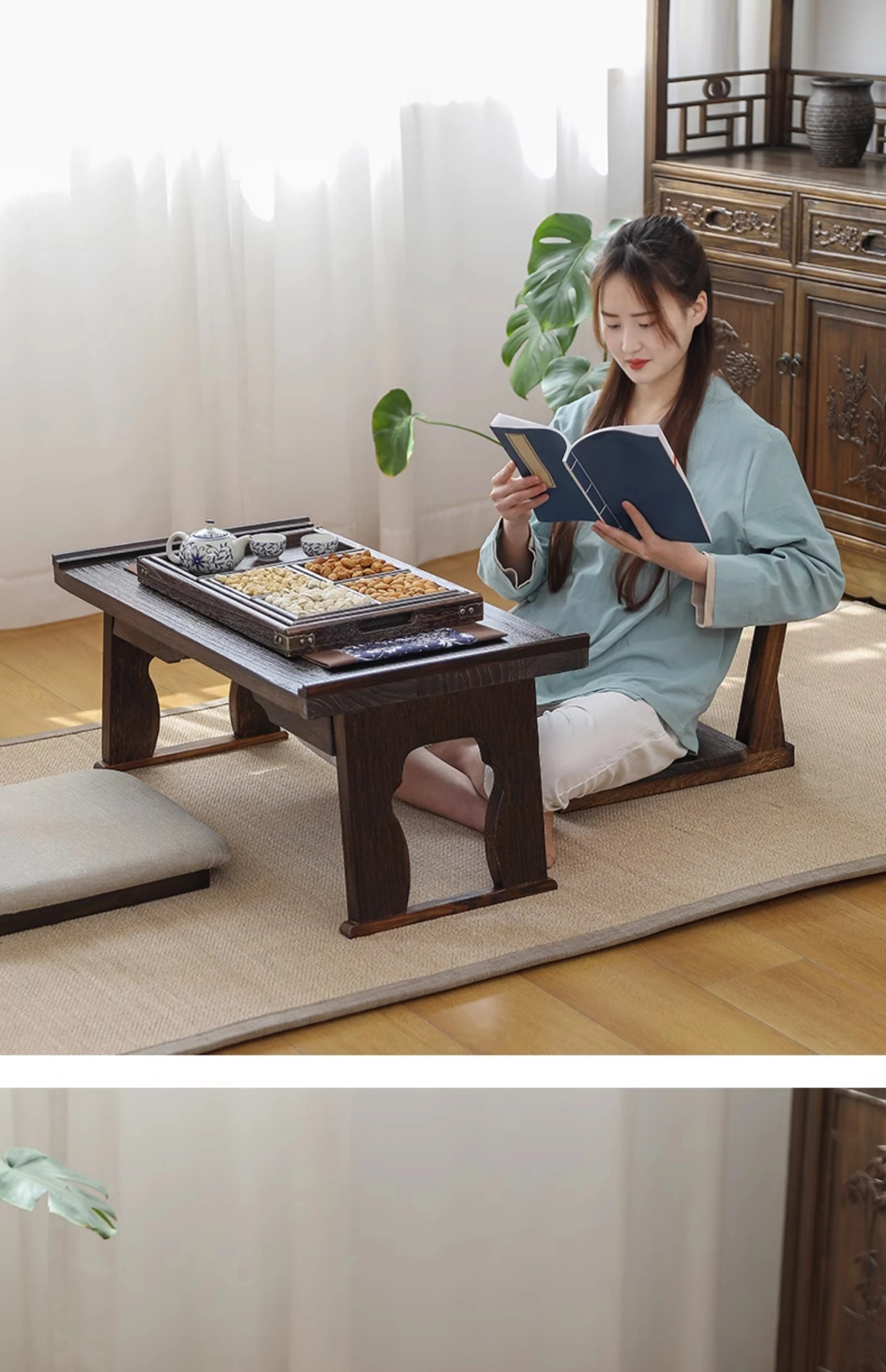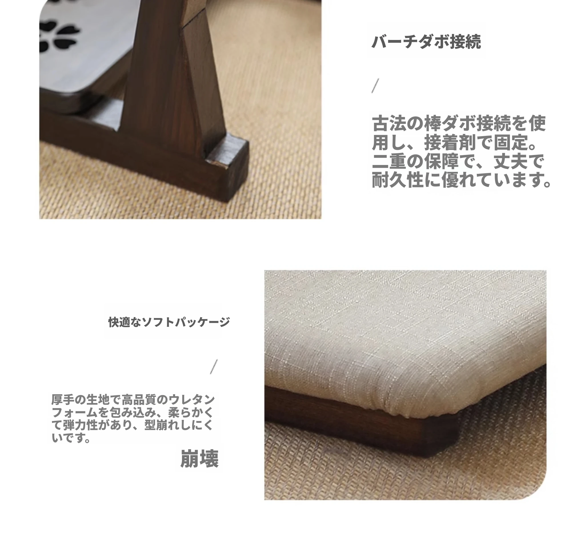 無垢材布面ローテーブル 長さ50x幅40x7cm