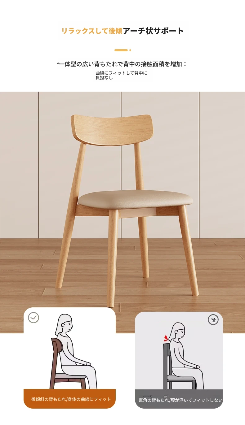 天然木材使用!クリーム風味の柔らかい背もたれ付き高椅子 - ブナ材の実木ダイニングチェア。家庭用、ドレッサーや会議にも最適。ホテルやレストランにもぴったりな魅力的なデザイン!