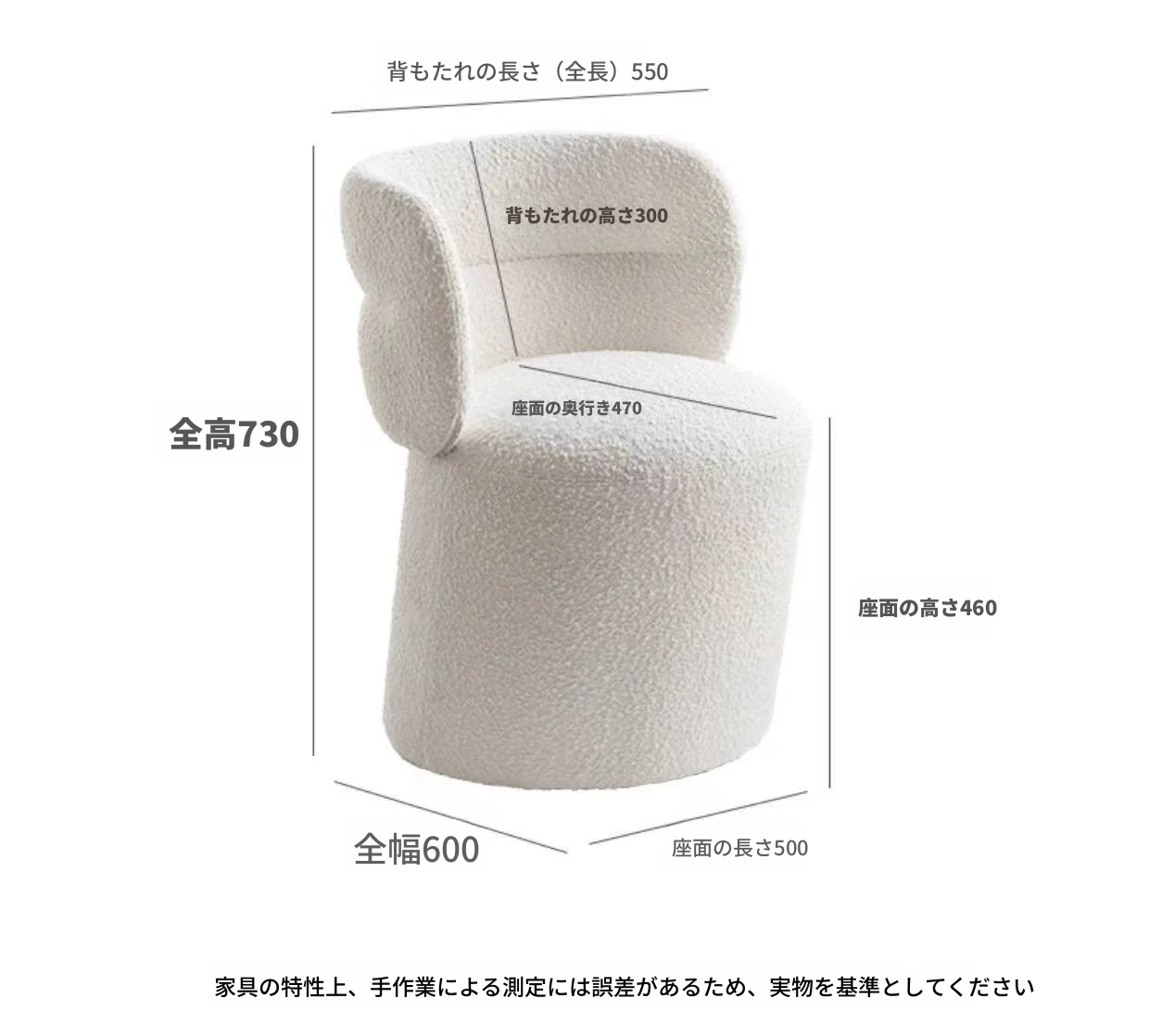 ラムフリースのミルクホワイト(高さ約45cm)